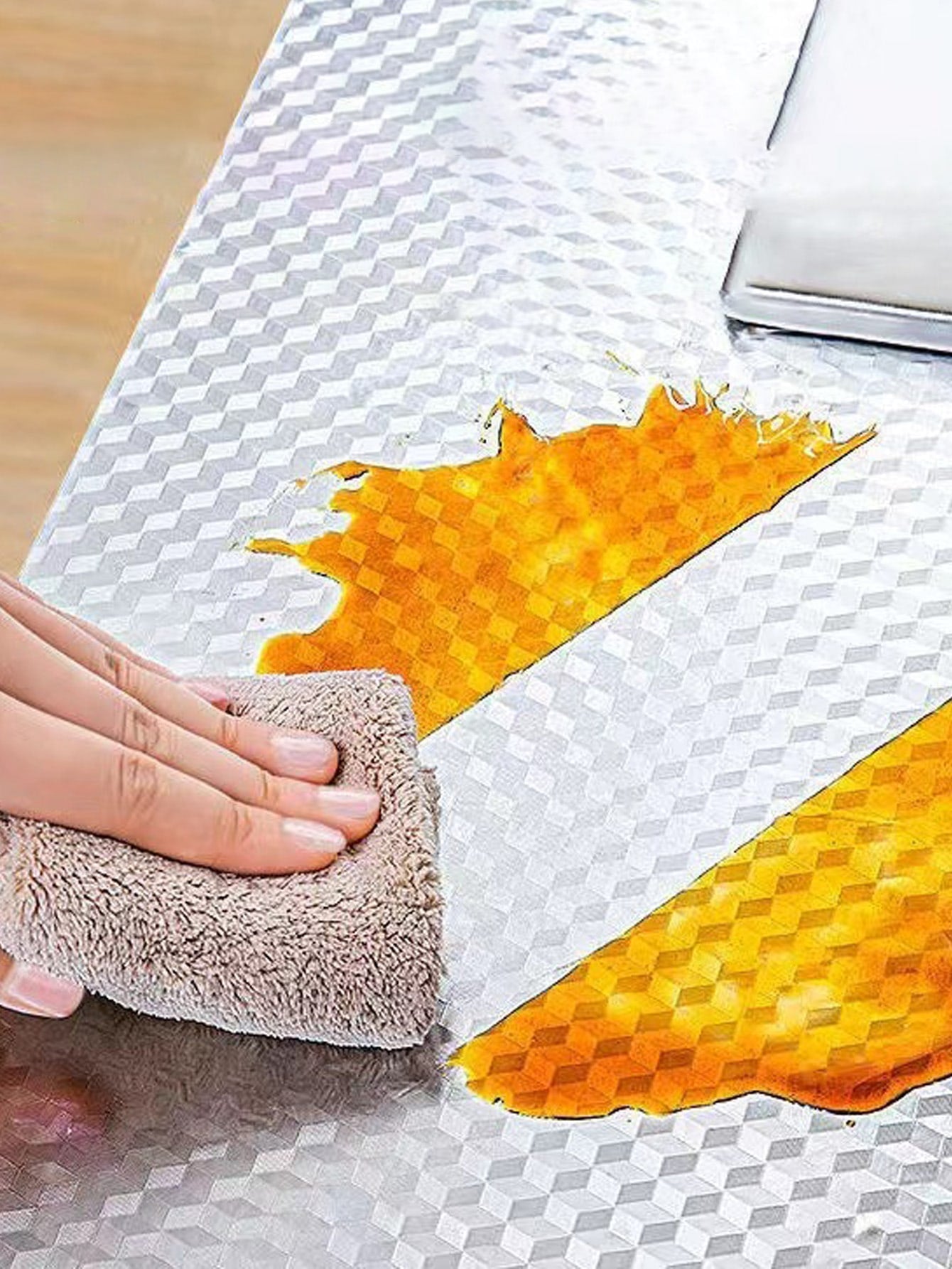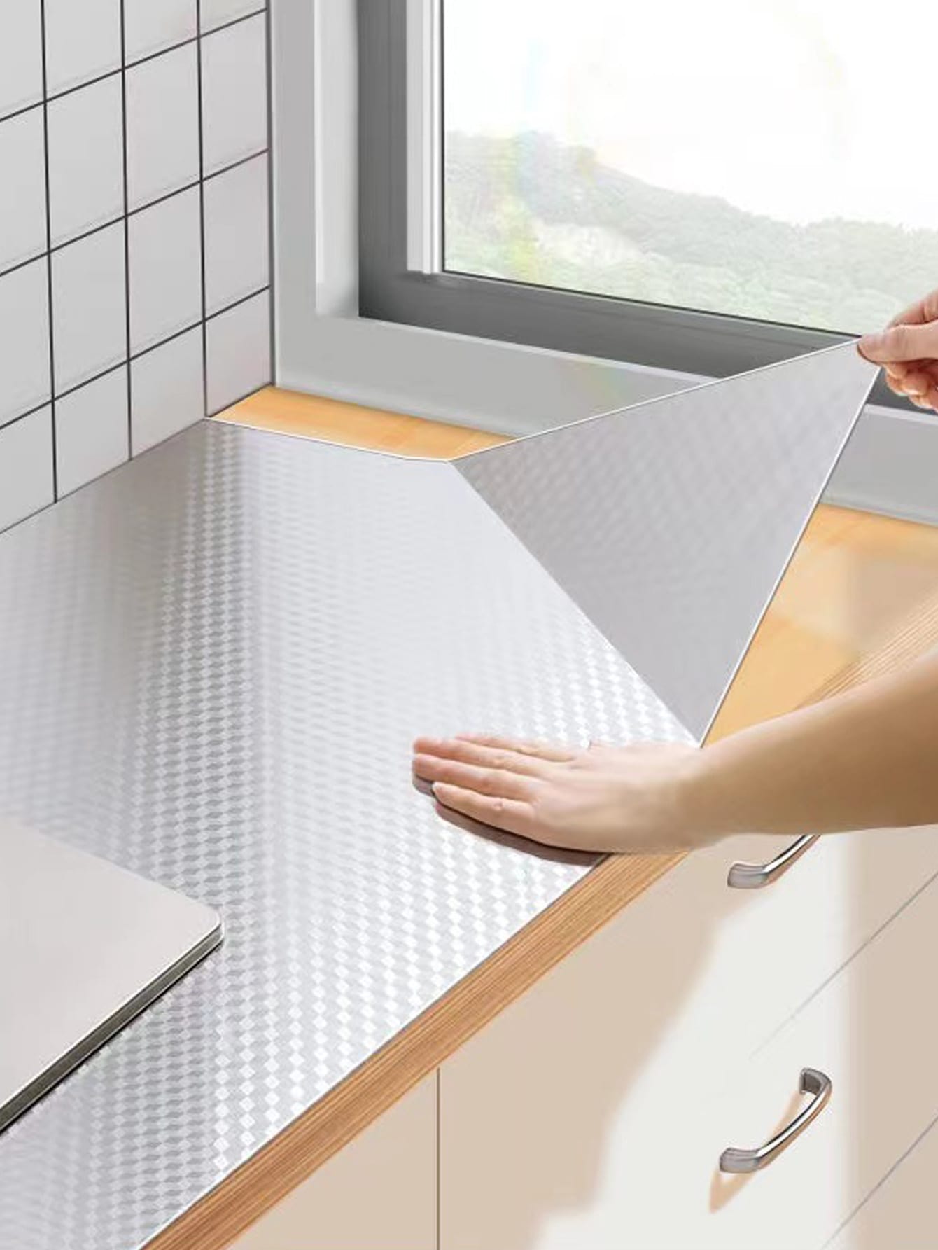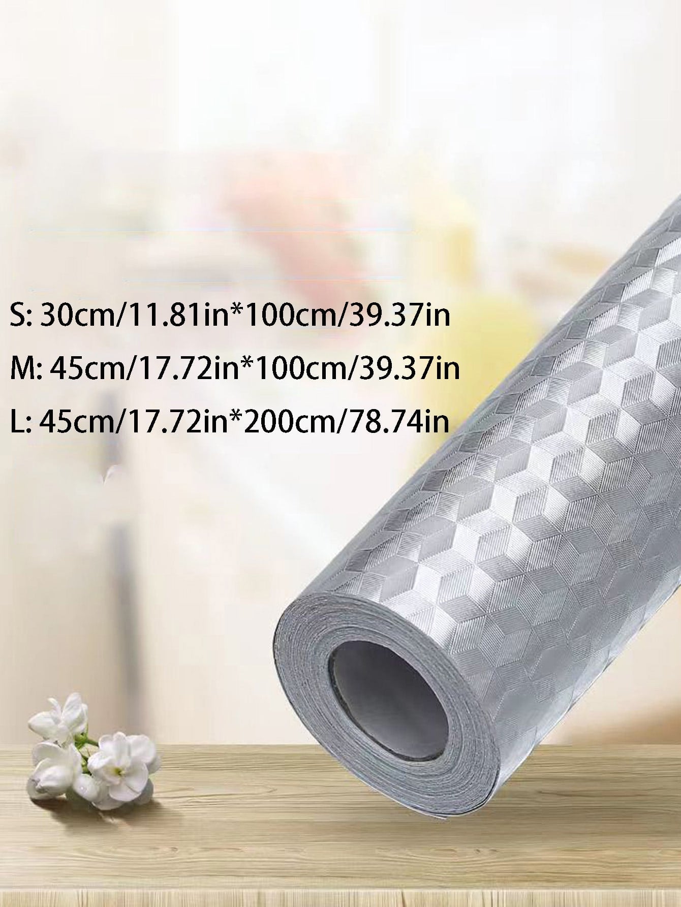 Colore: Argento Vantaggi del prodotto: Prova anti olio, Resistente all'acqua, rimovibile Tessuto: PVC Misure del prodotto in cm : Misure Larghezza Lunghezza Tagli Unica 30 100 100*45 45 100 200*45 45 200