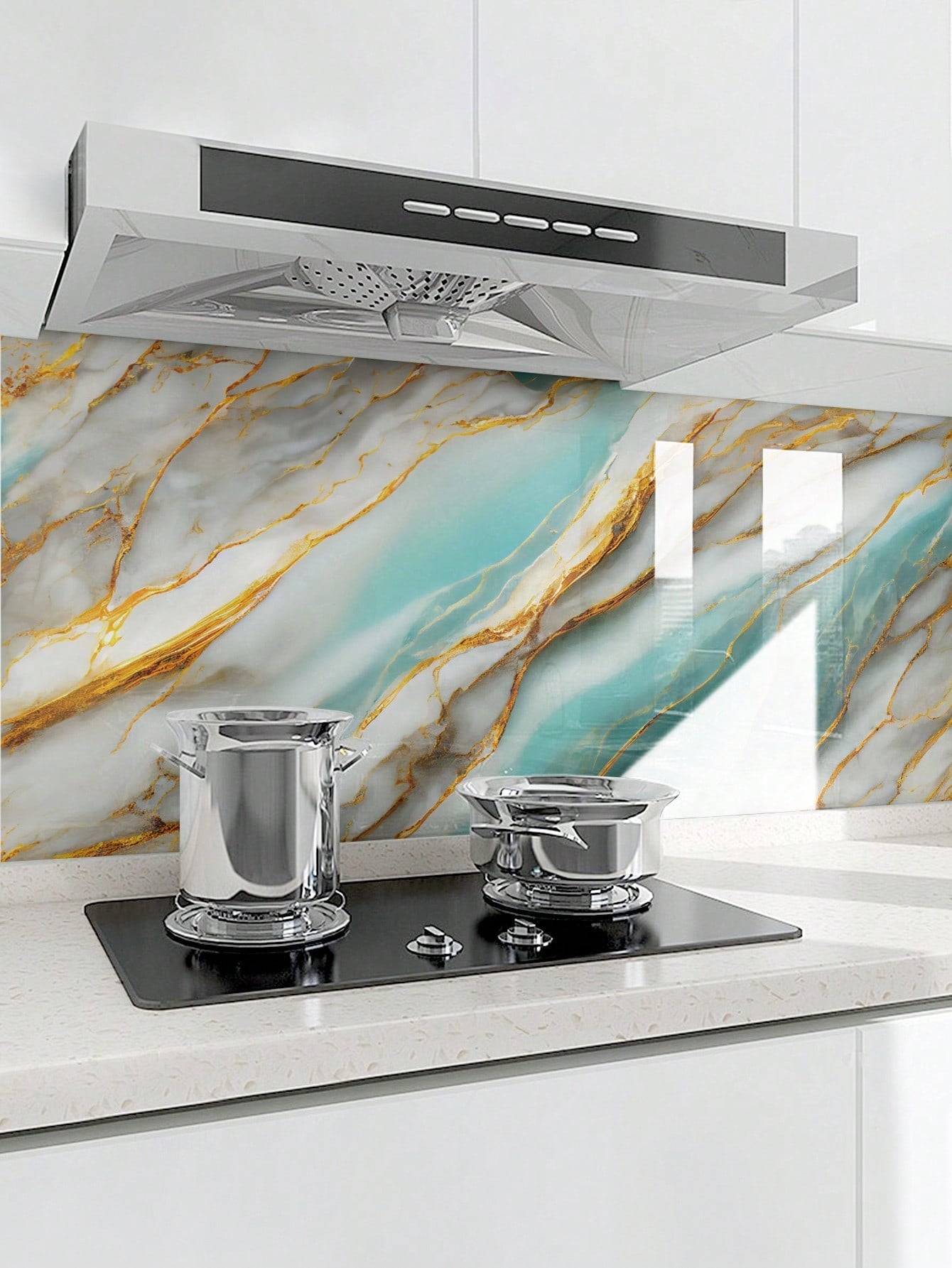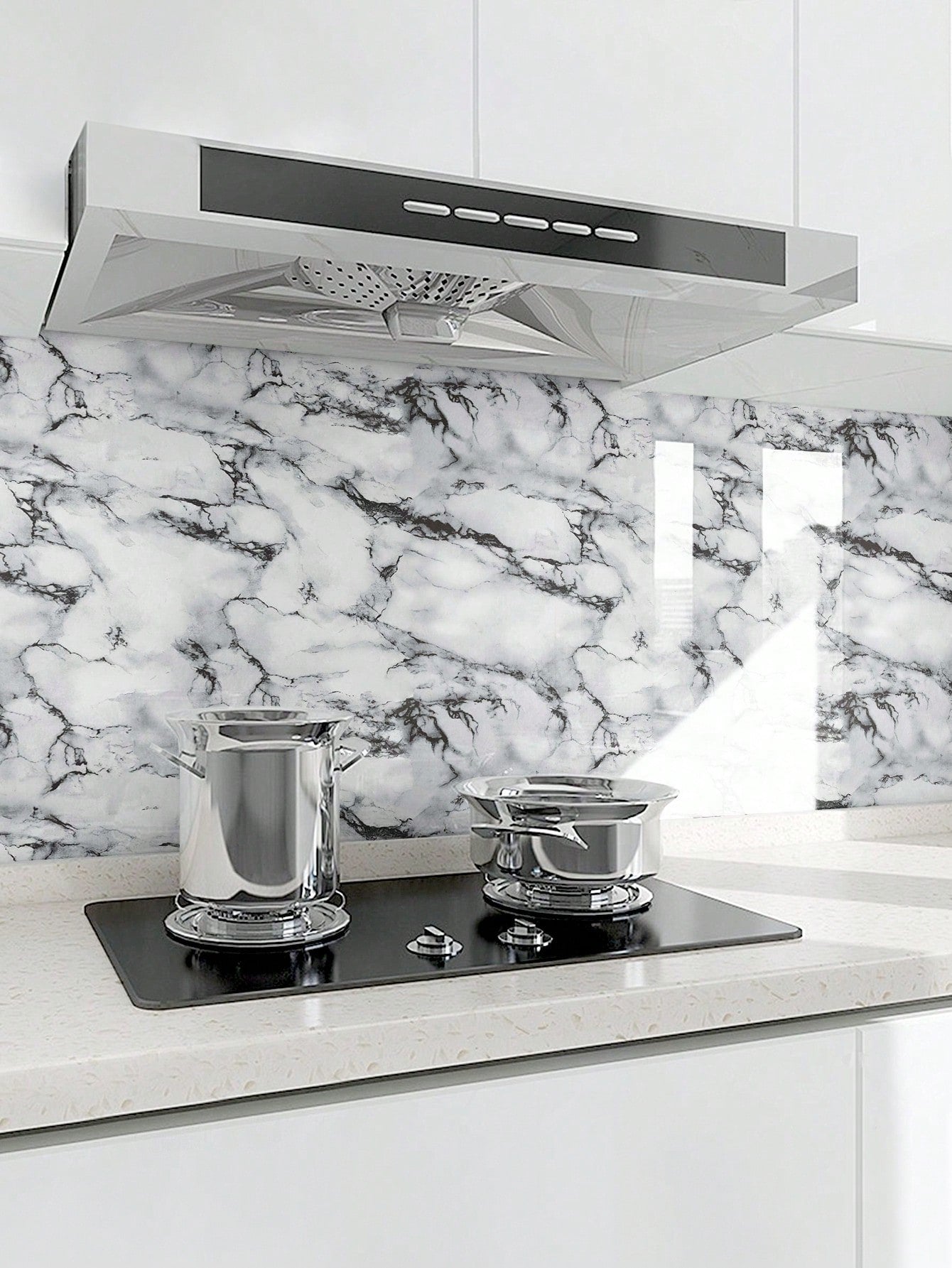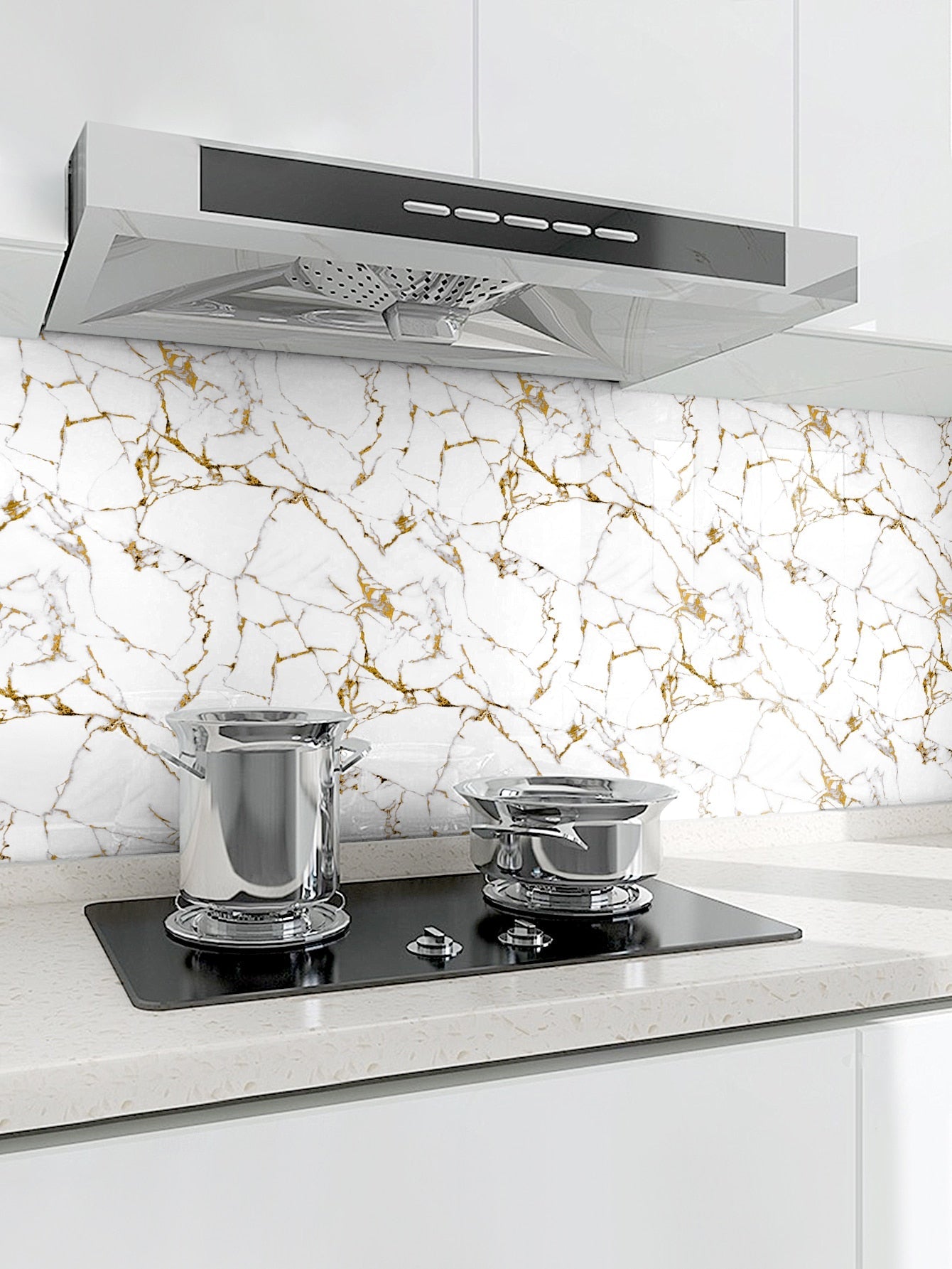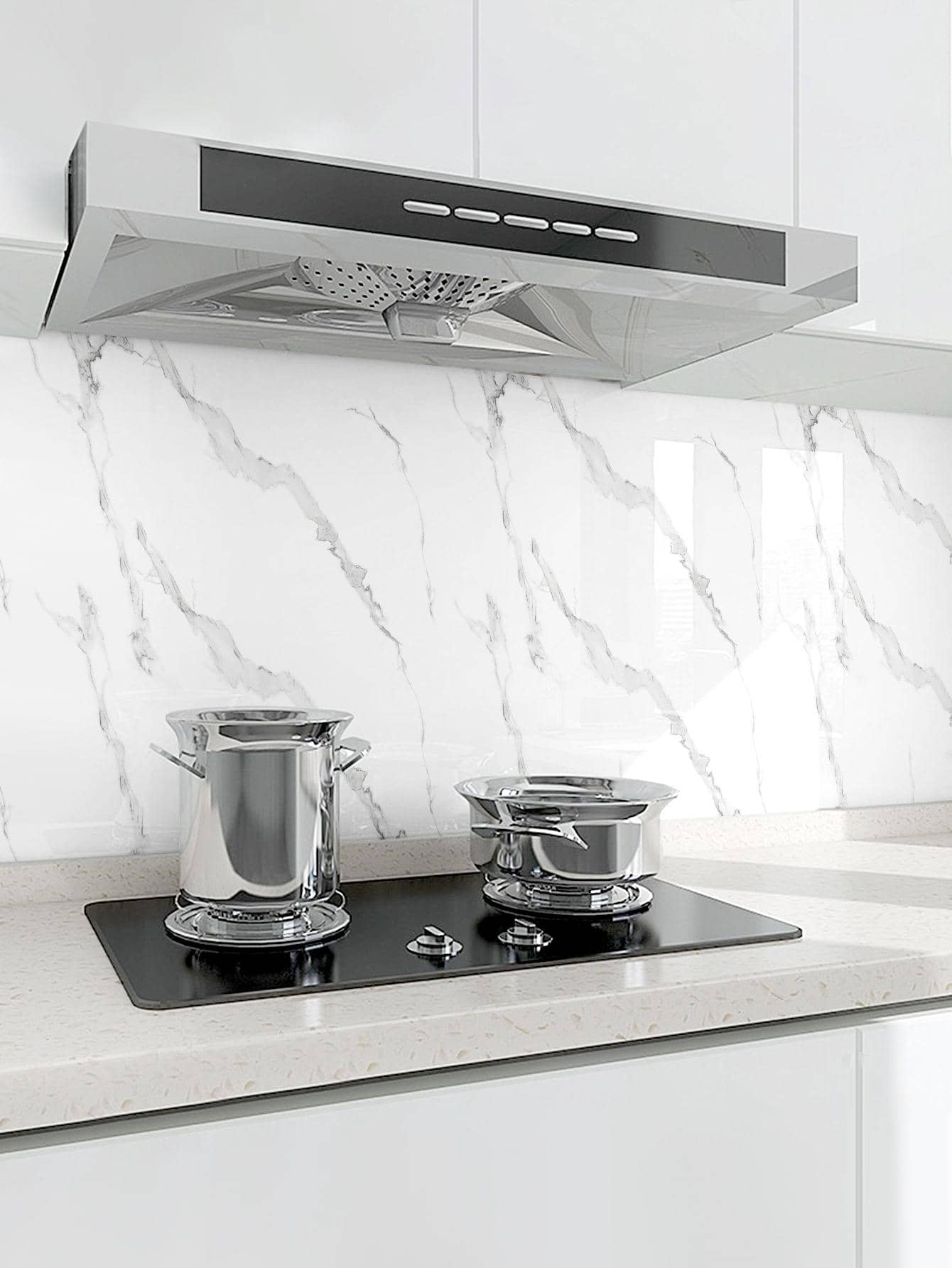 Trasforma la tua cucina con questi adesivi da muro autoadesivi dal design marmoreo elegante.