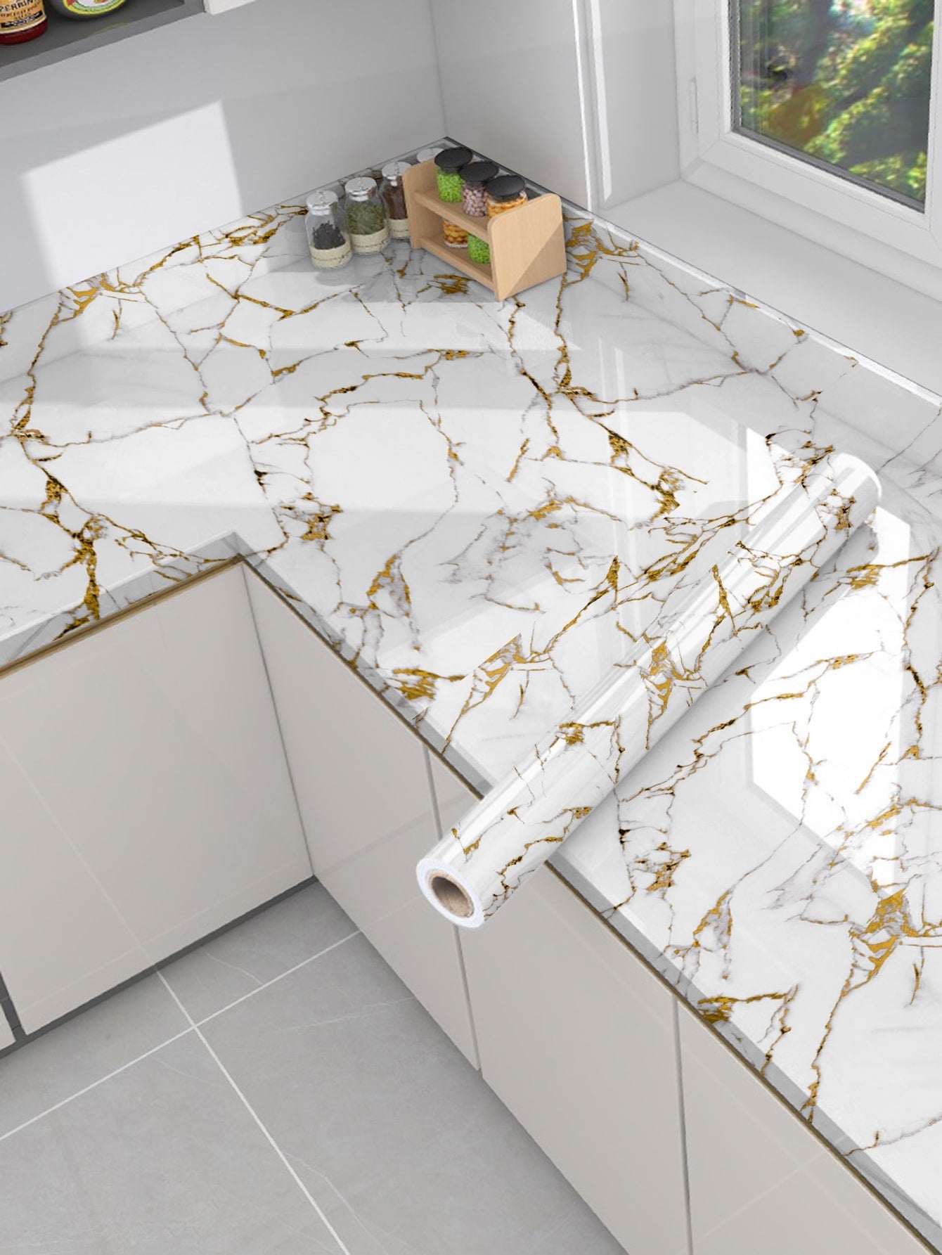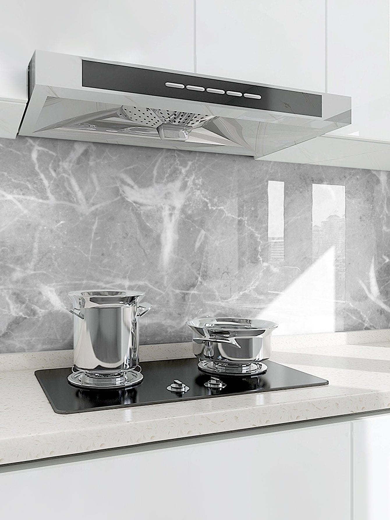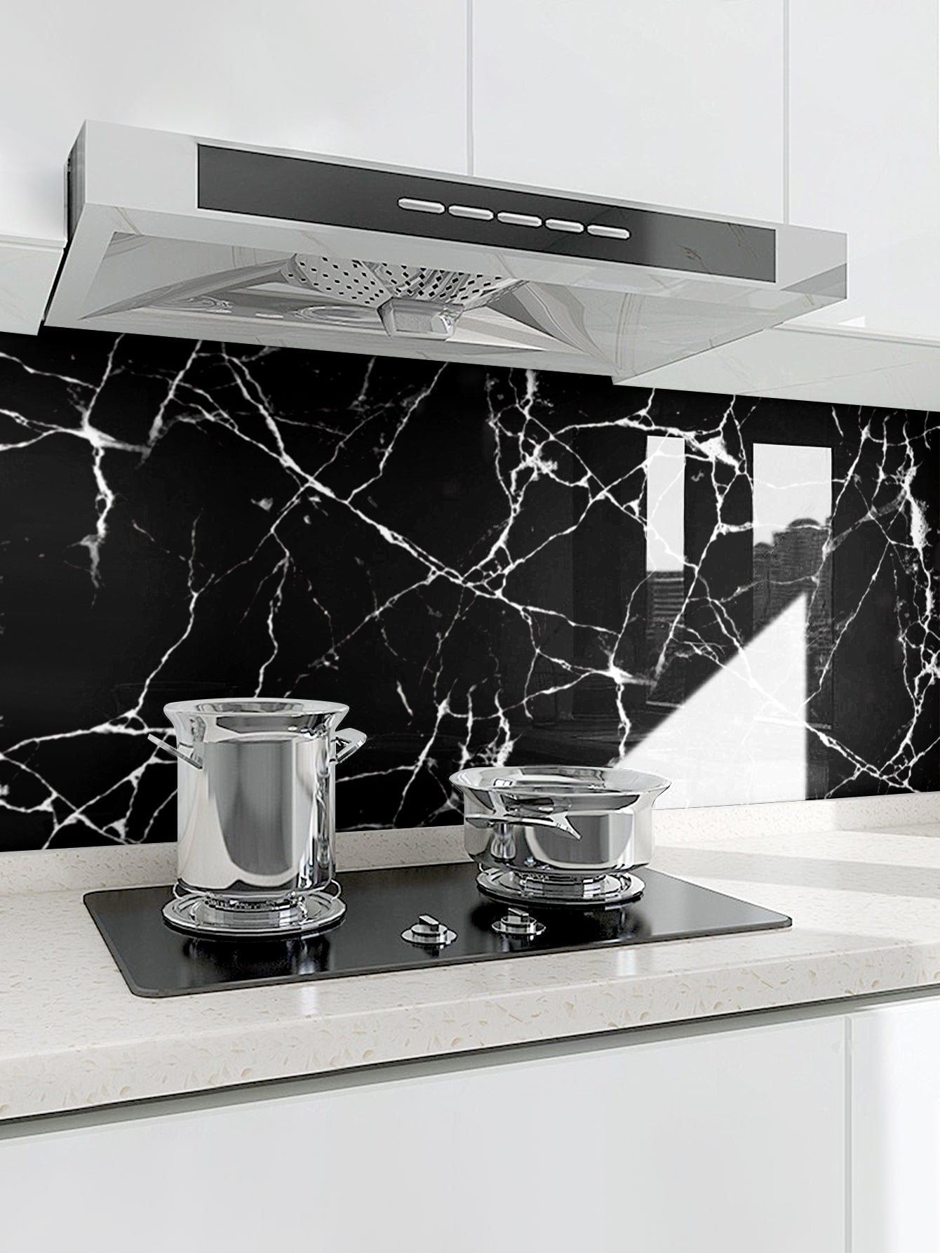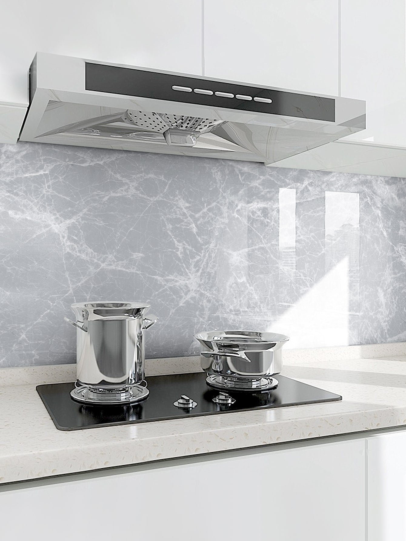 Trasforma la tua cucina con questi adesivi da muro autoadesivi dal design marmoreo elegante.