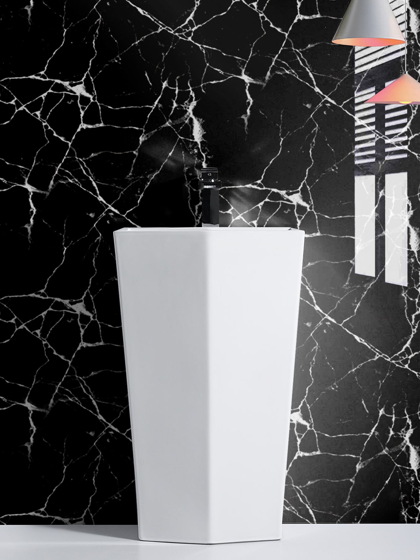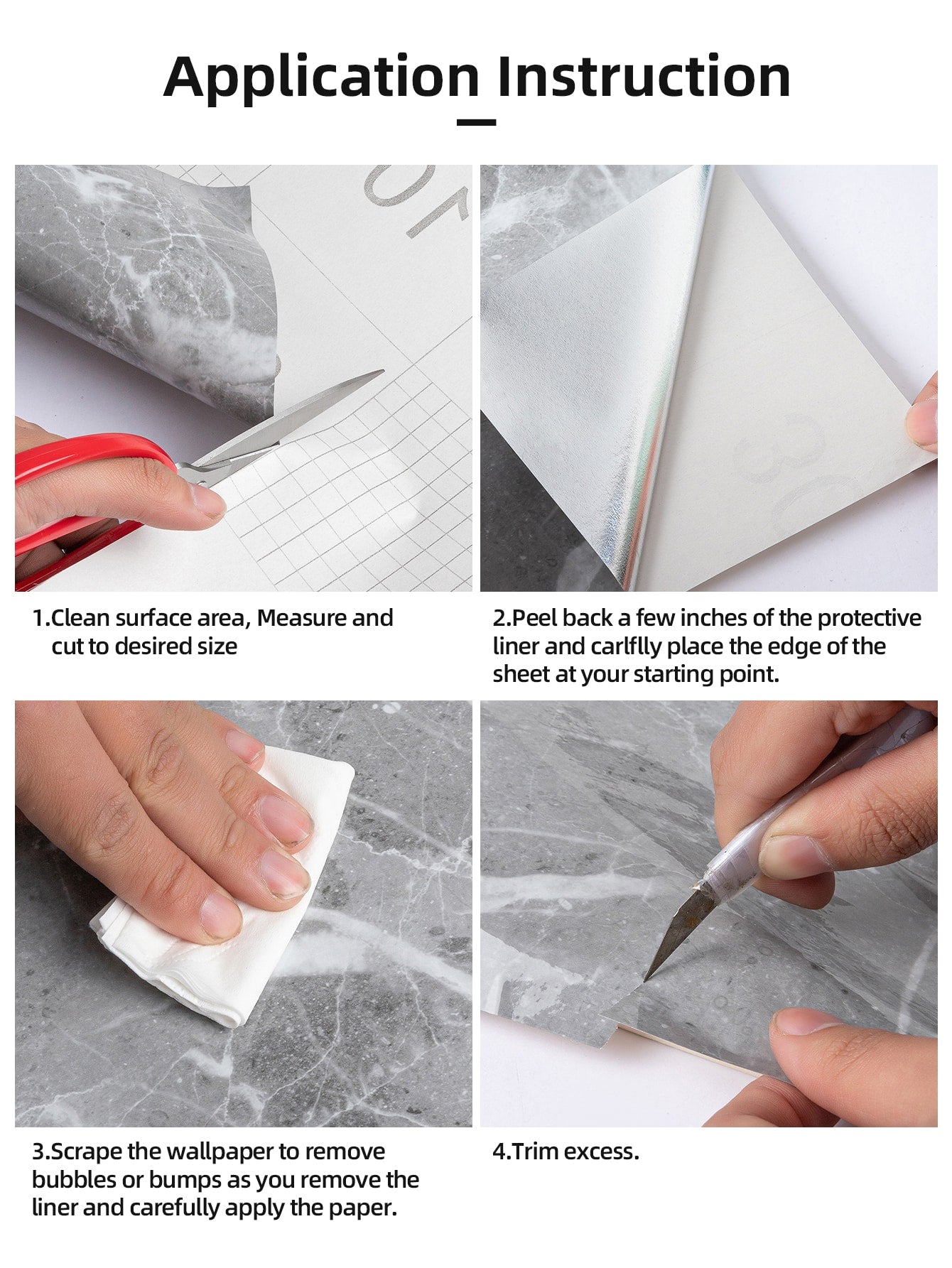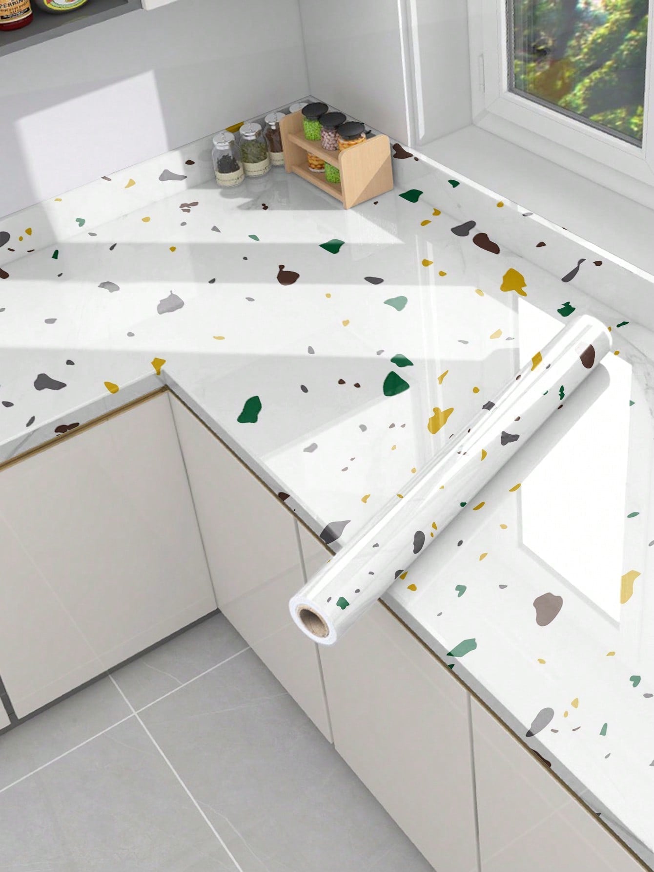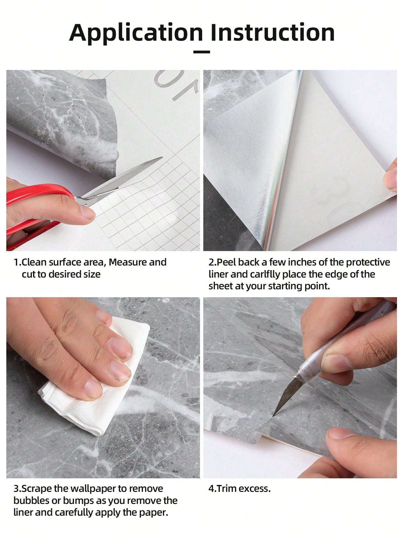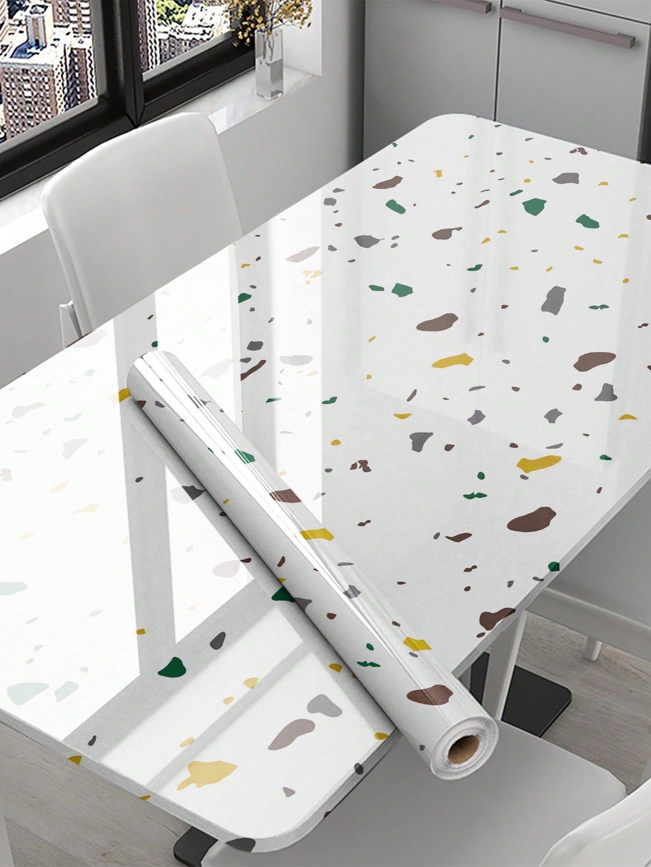 La superficie autoadesiva garantisce un'applicazione rapida e senza residui, mentre il motivo marmo aggiunge profondità e carattere allo spazio.