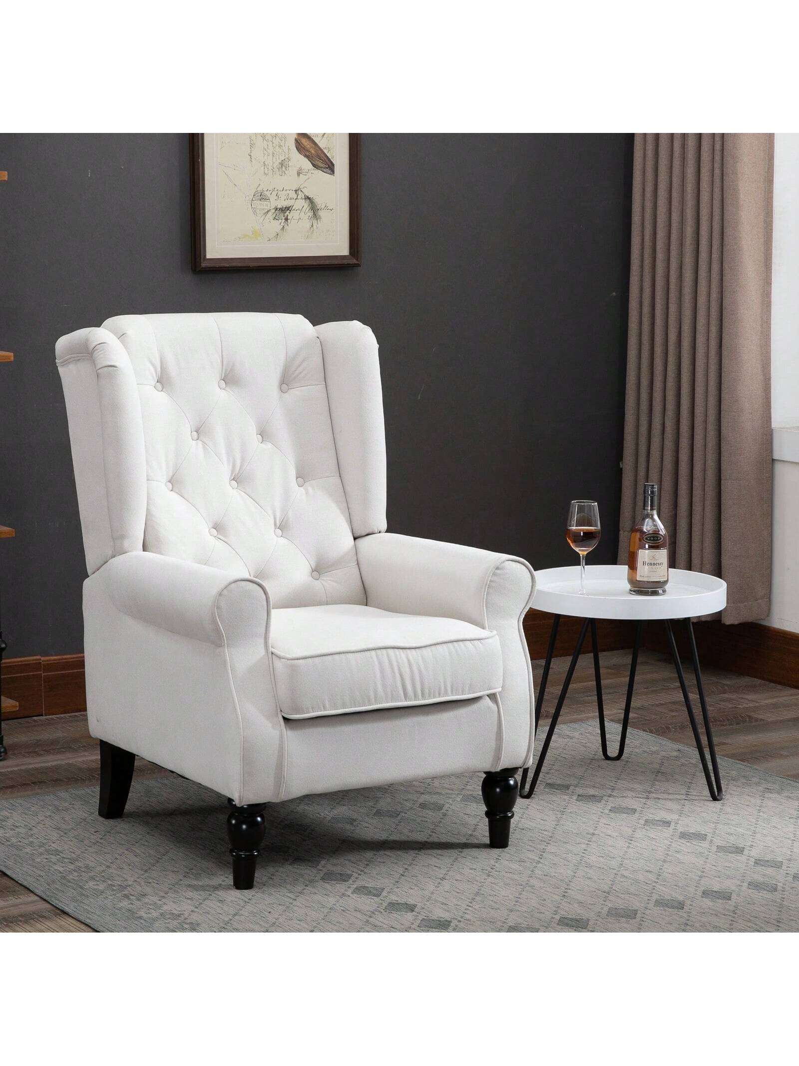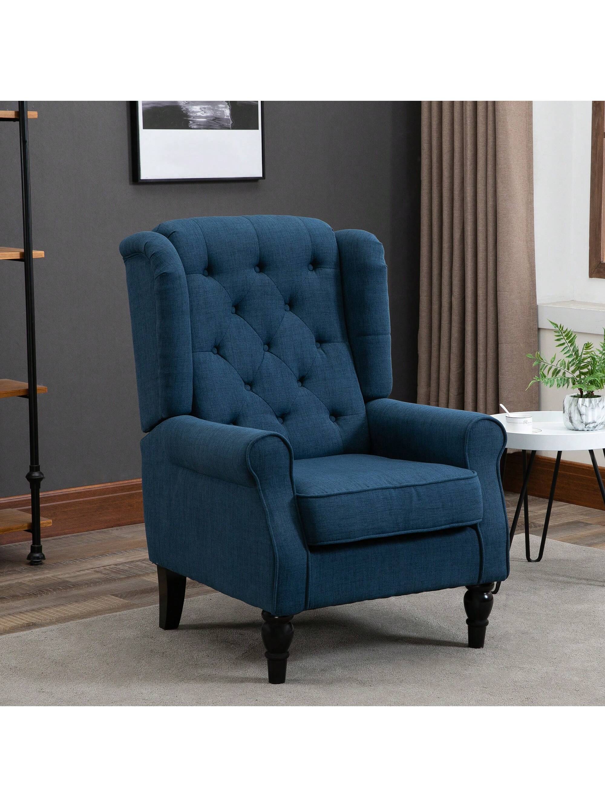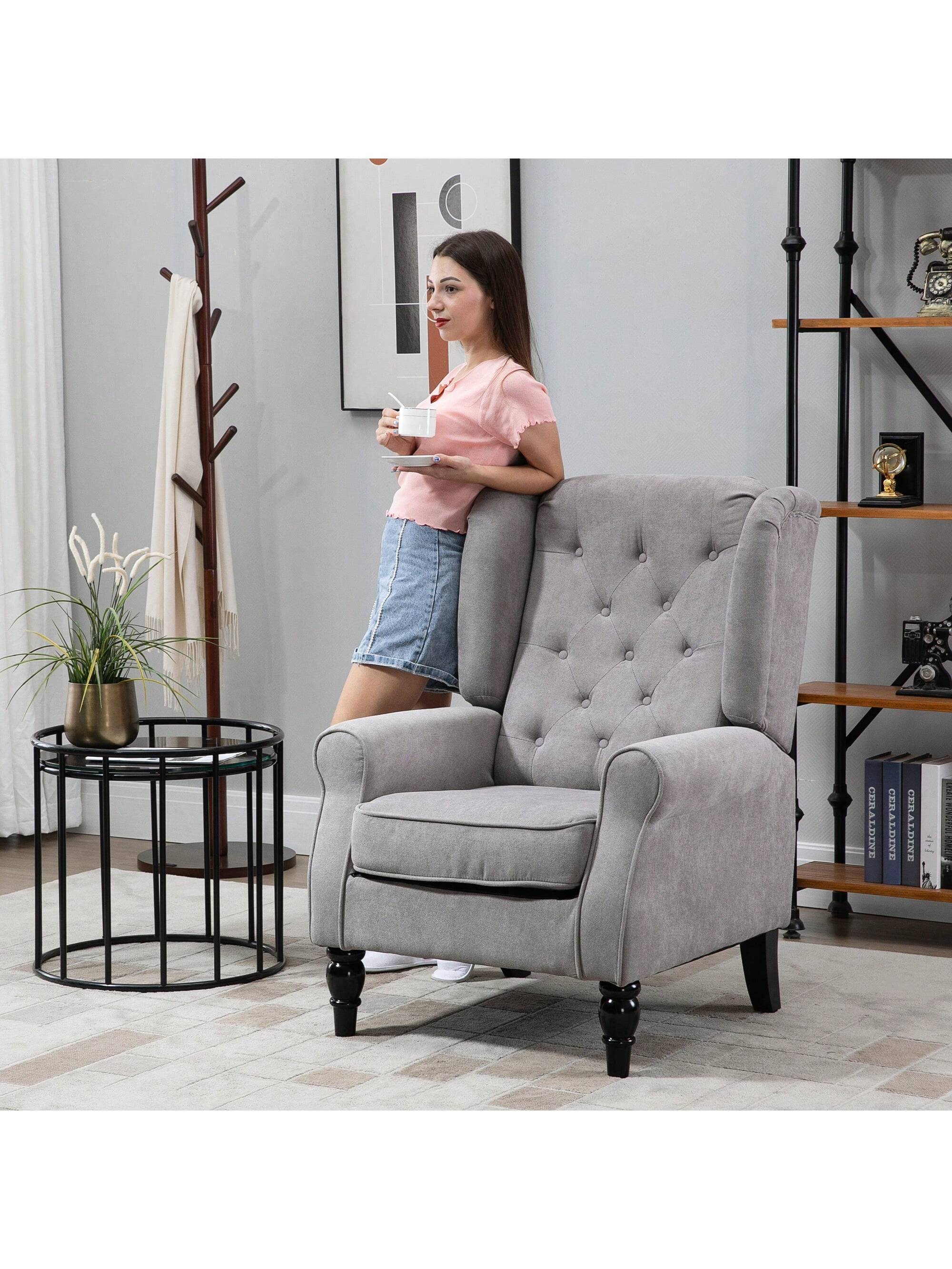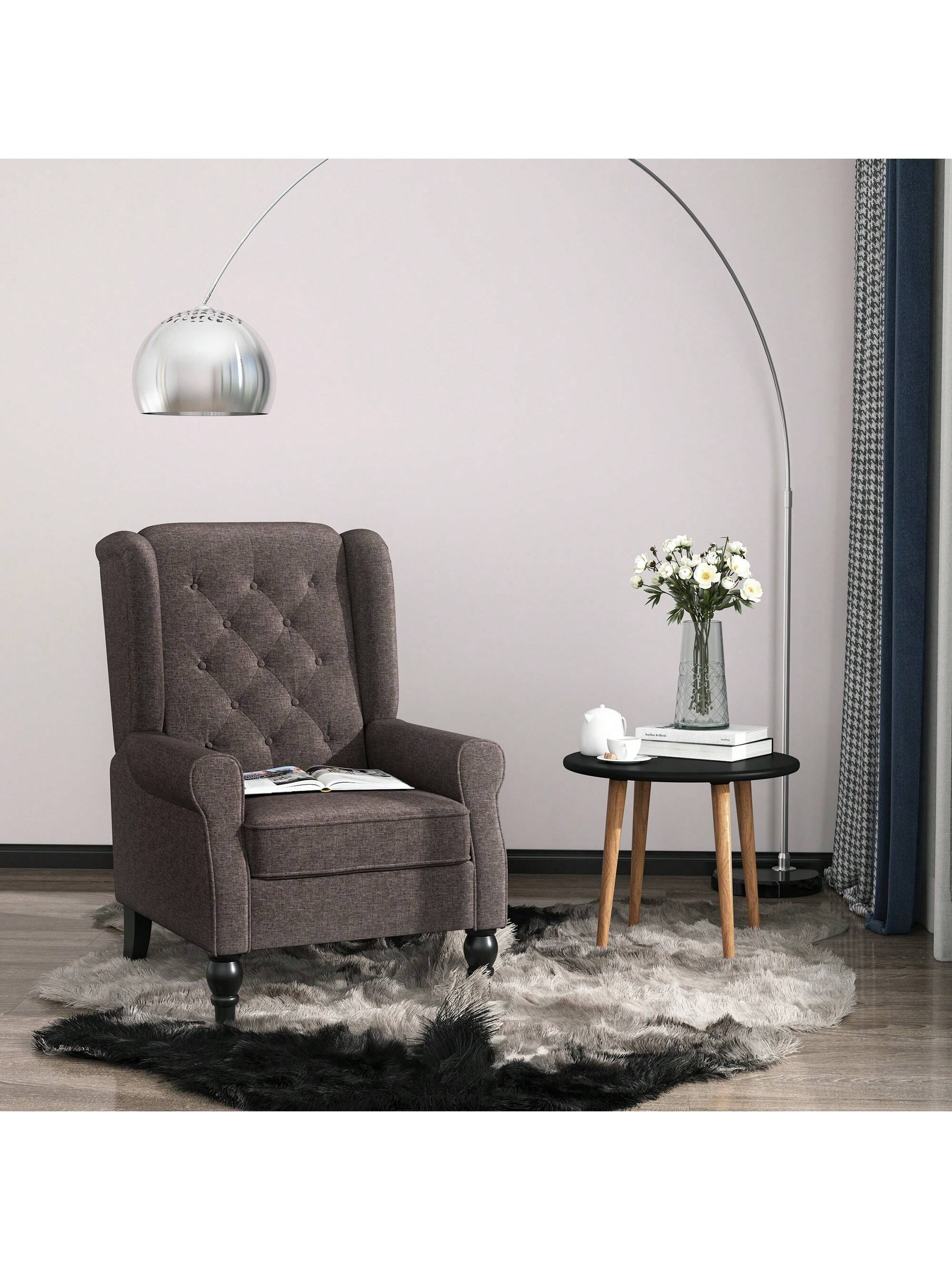 Poltrona da Salotto Trapuntata a Bottoni Poltrona Relax in Tessuto e Imbottita con Braccioli e Schienale Alto