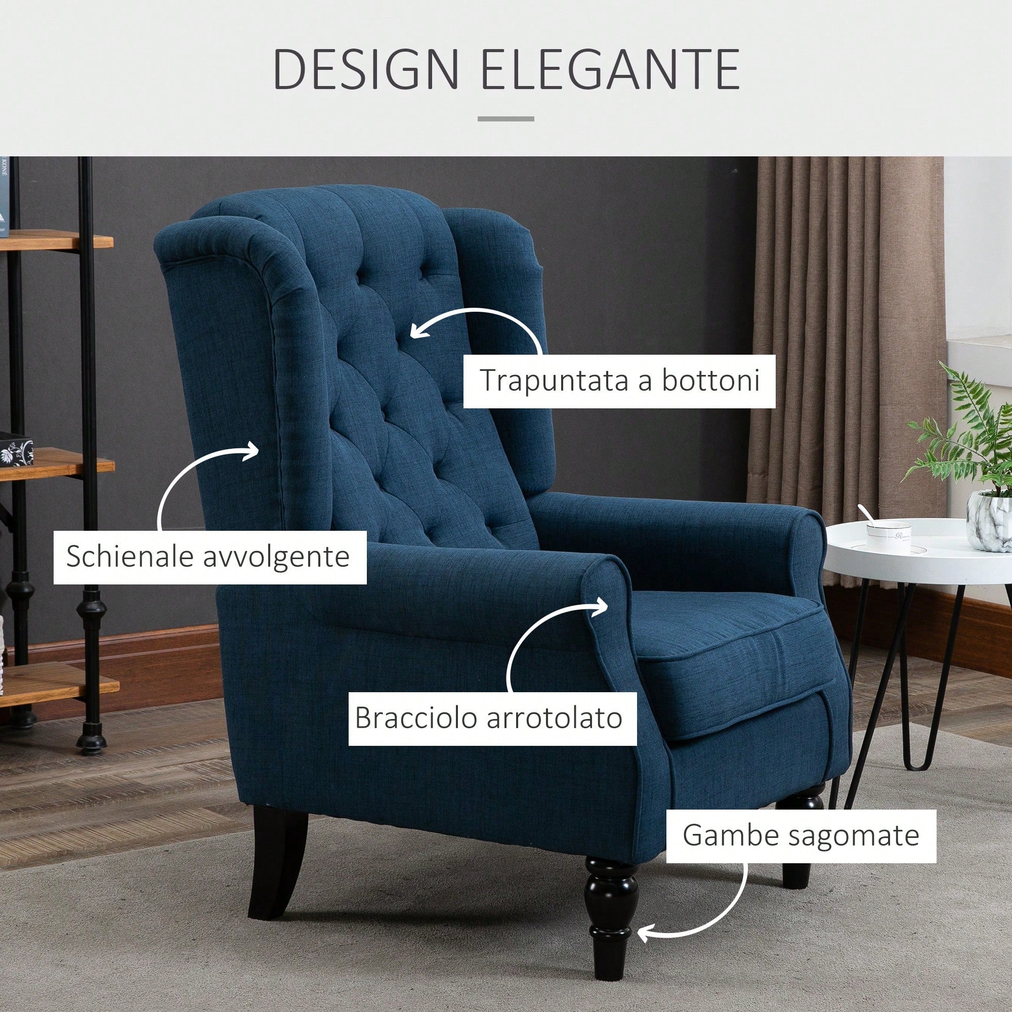 Poltrona relax dal design elegante e sofisticato, caratterizzata da una trapuntatura a bottoni che conferisce un tocco di classe al vostro salotto.