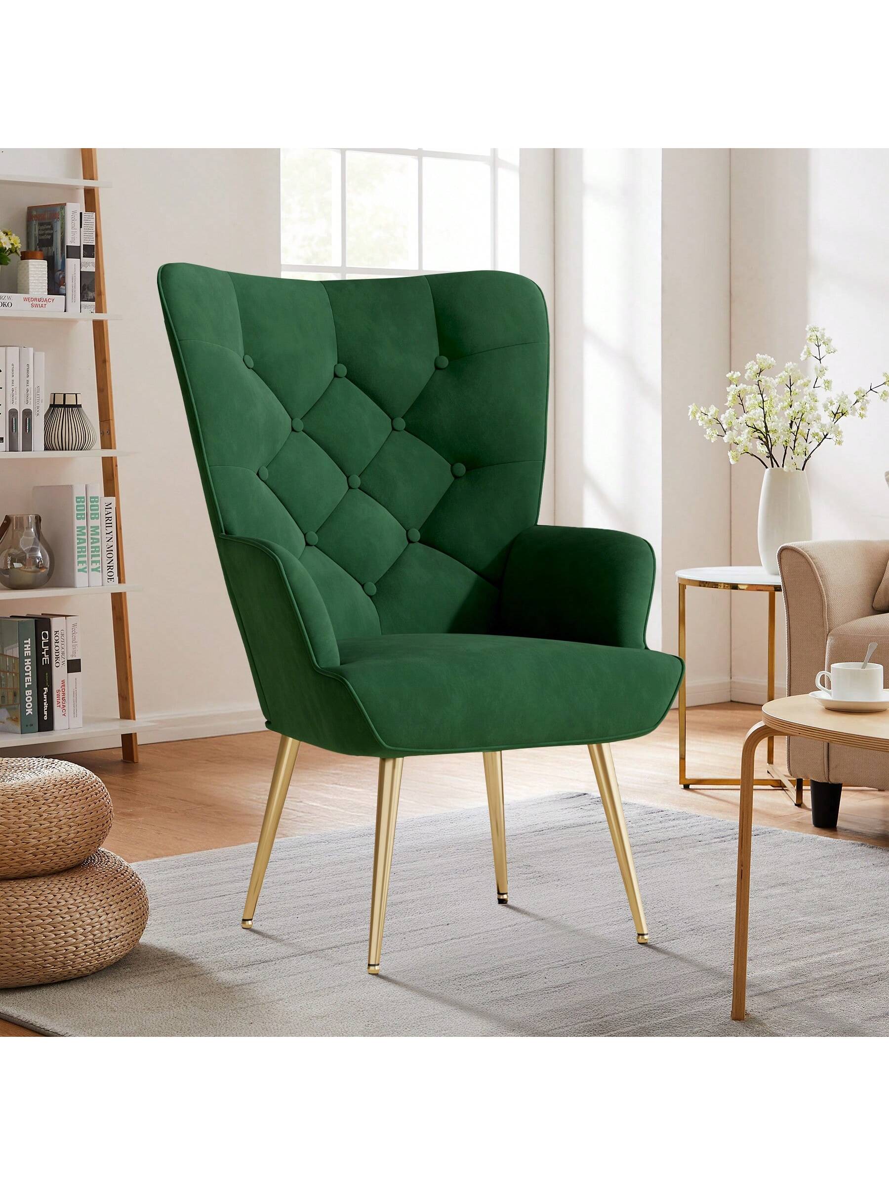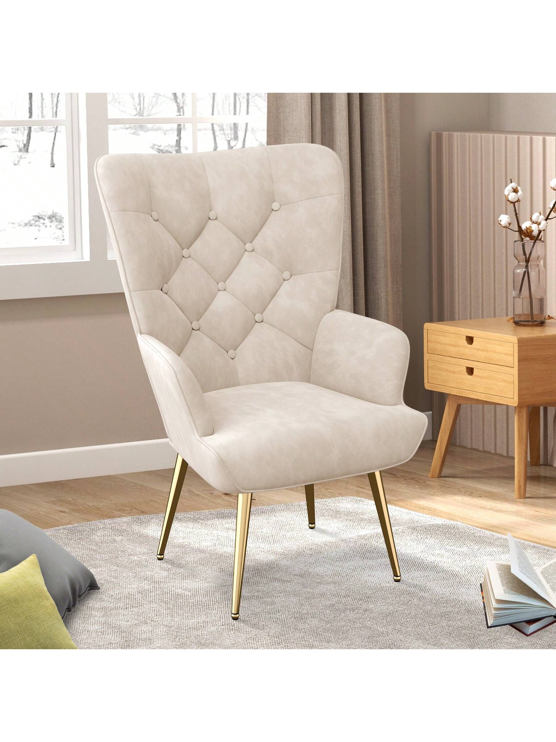 Poltrona elegante, sedia imbottita, poltrona da salotto, poltrona da toeletta con gambe in metallo, poltrona da soggiorno/camera da letto.
