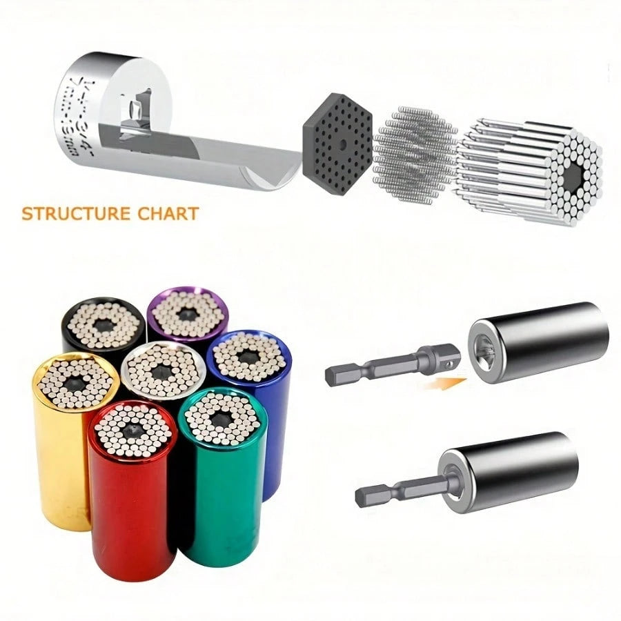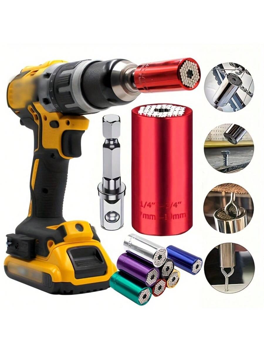 Set di chiavi a bussola universale 7-19mm, set di strumenti portatili professionali con adattatore per trapano elettrico e chiave a cricchetto