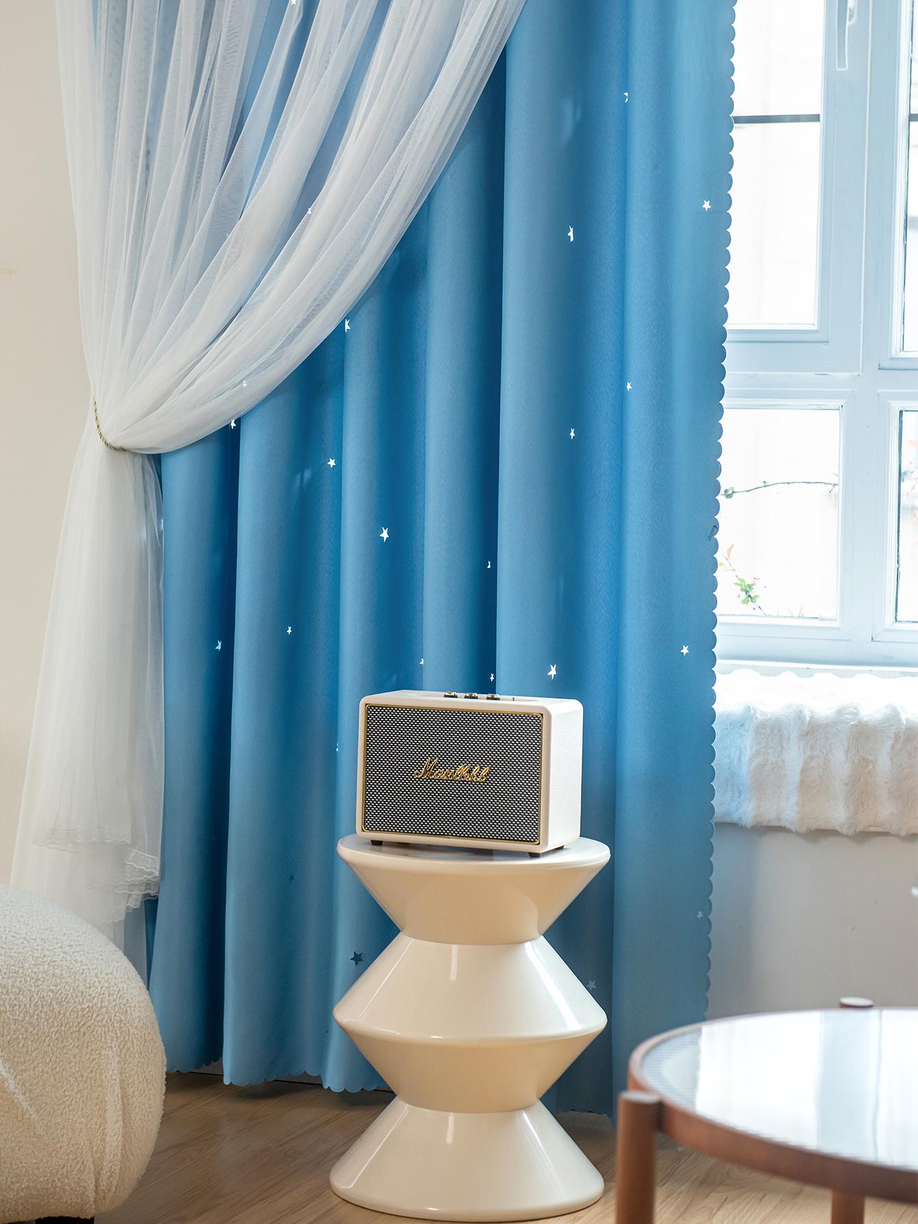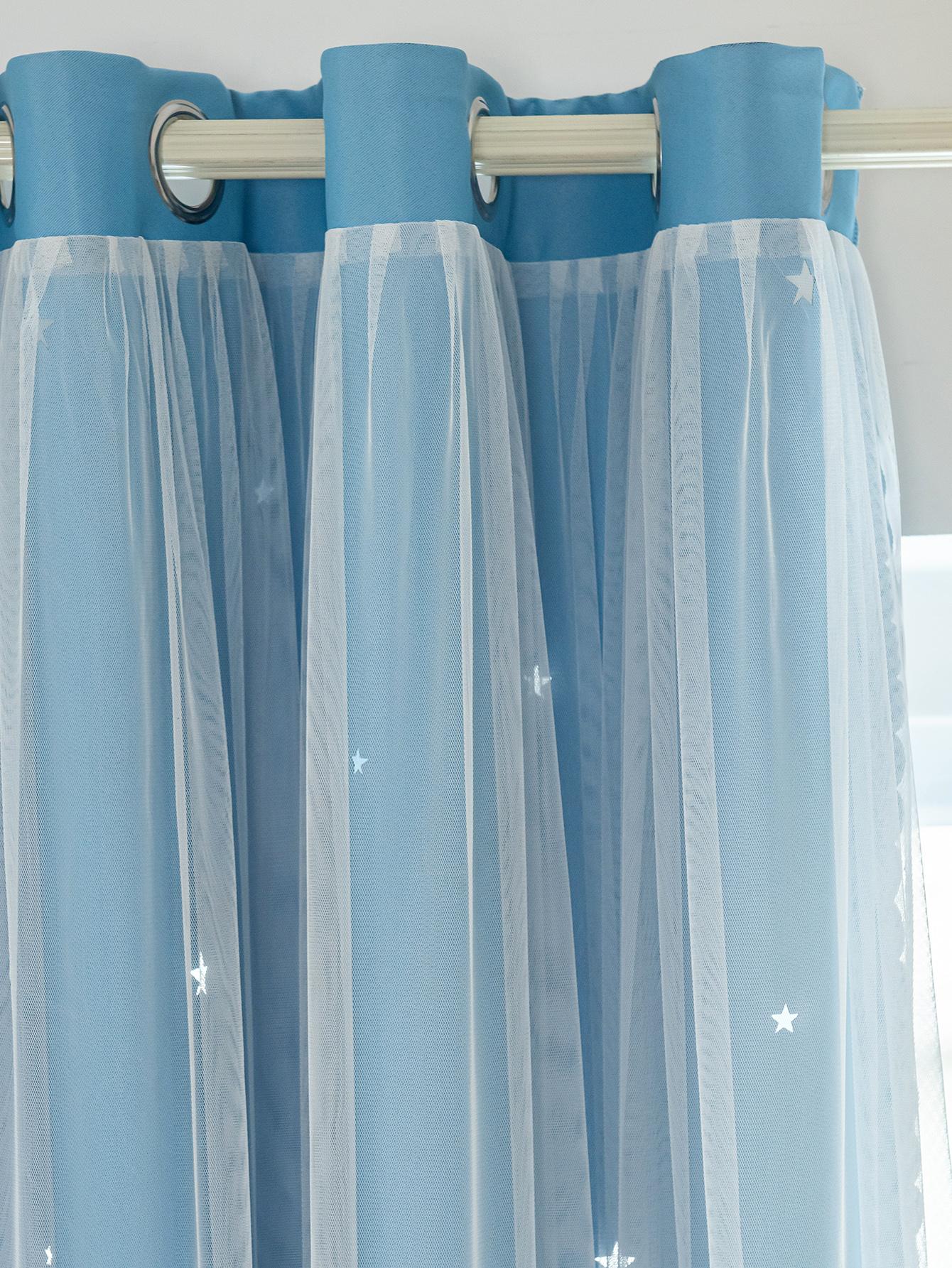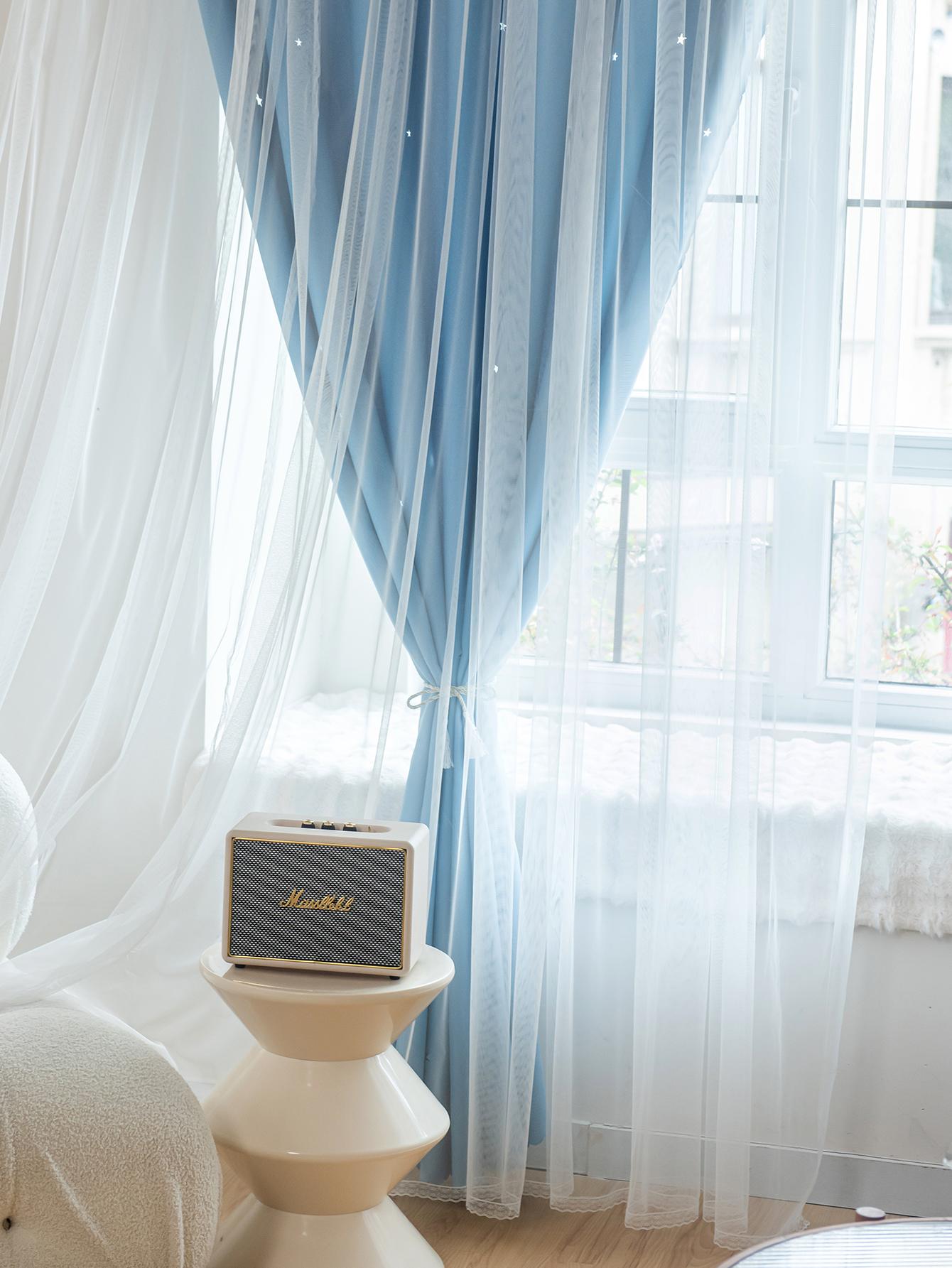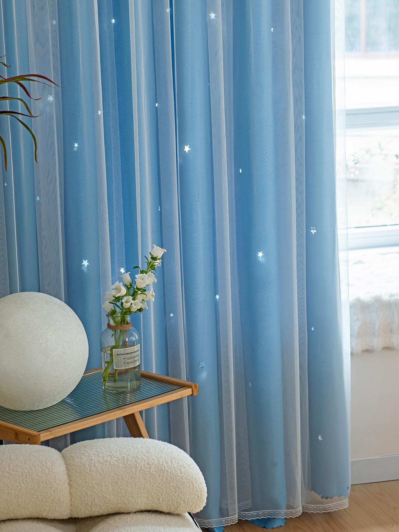 Tenda A Doppio Strato Con Design A Stella Vuota E Pizzo, Funzione Oscurante E Anti Luce