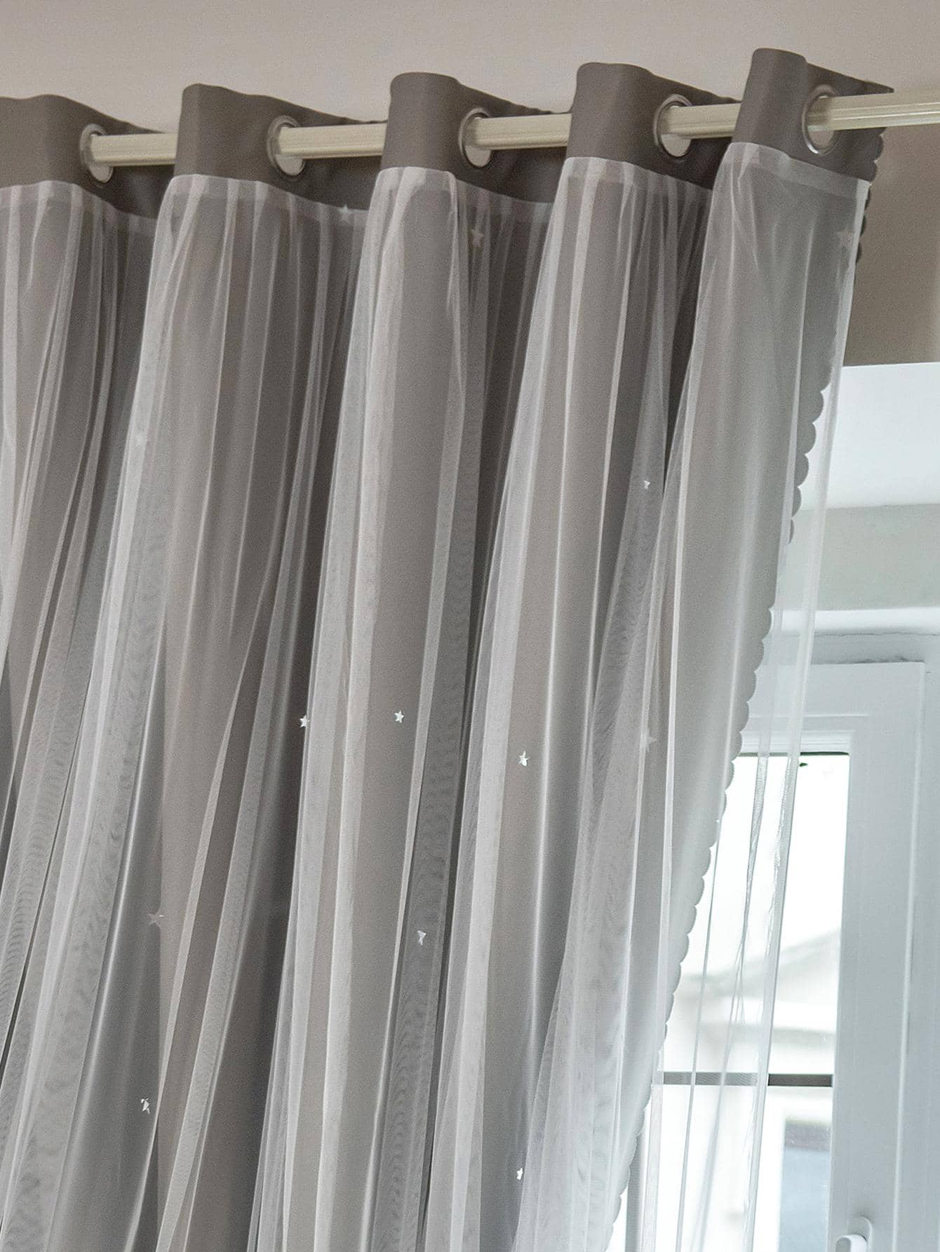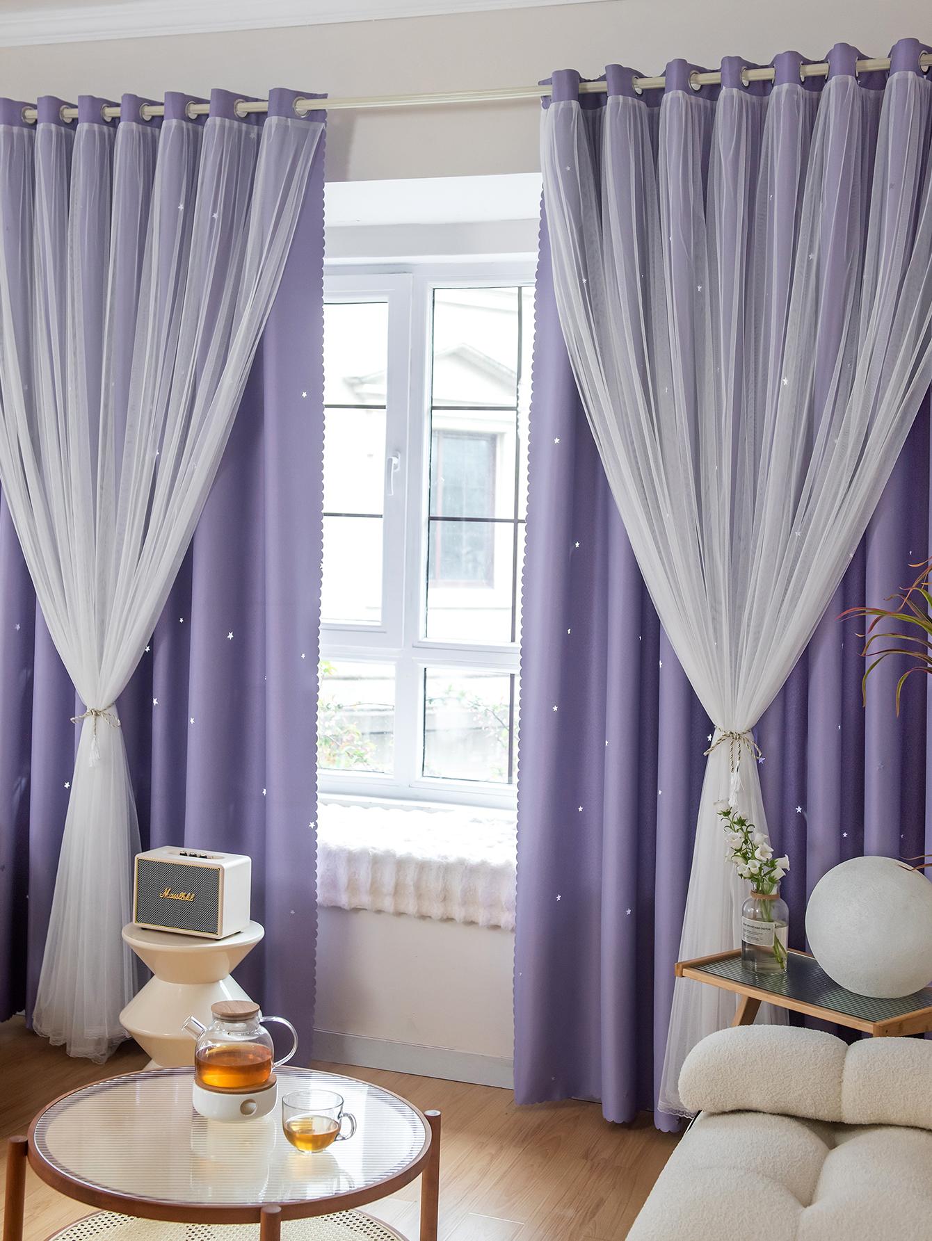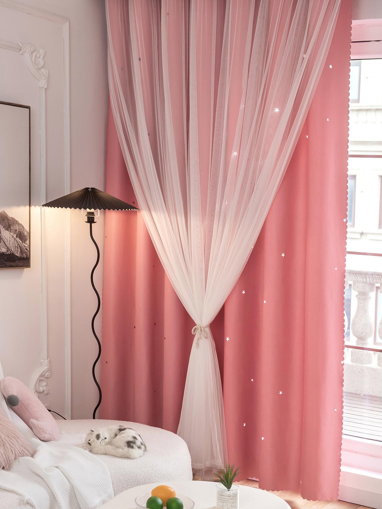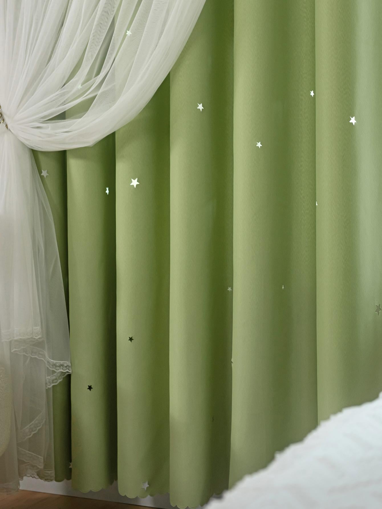 Tenda A Doppio Strato Con Design A Stella Vuota E Pizzo, Funzione Oscurante E Anti Luce