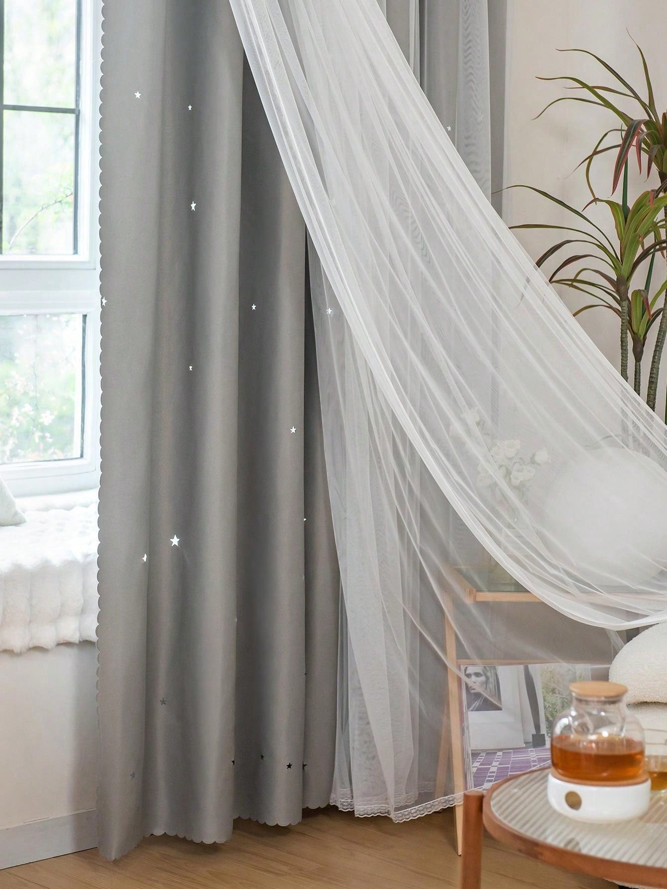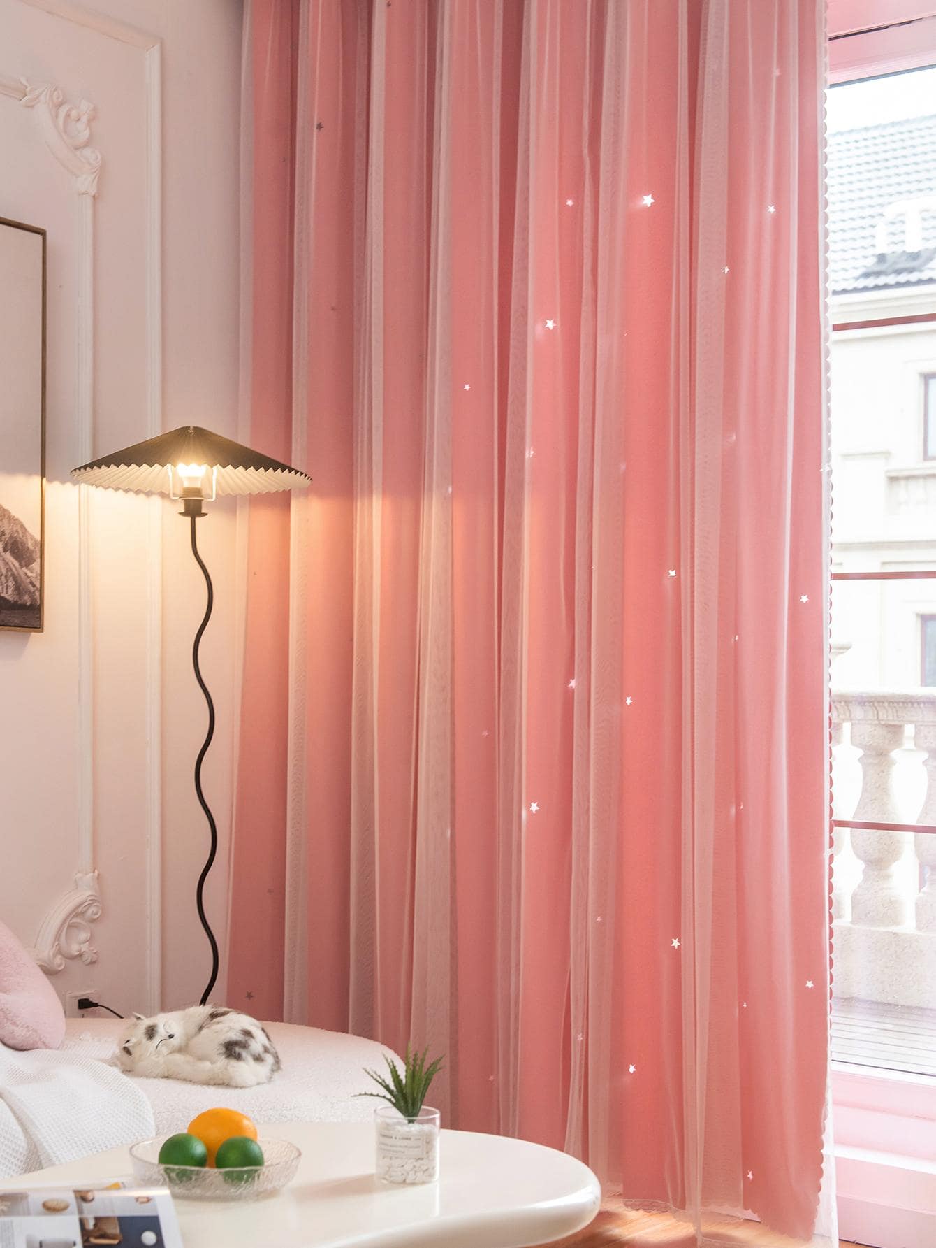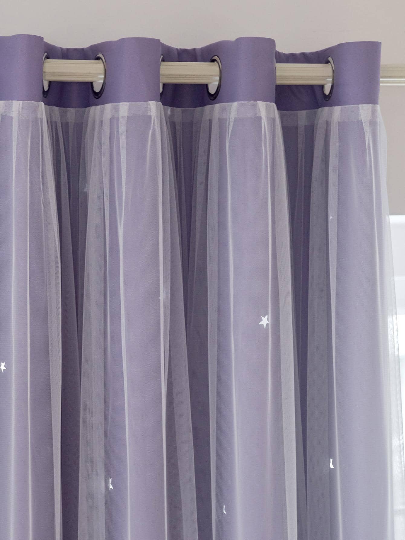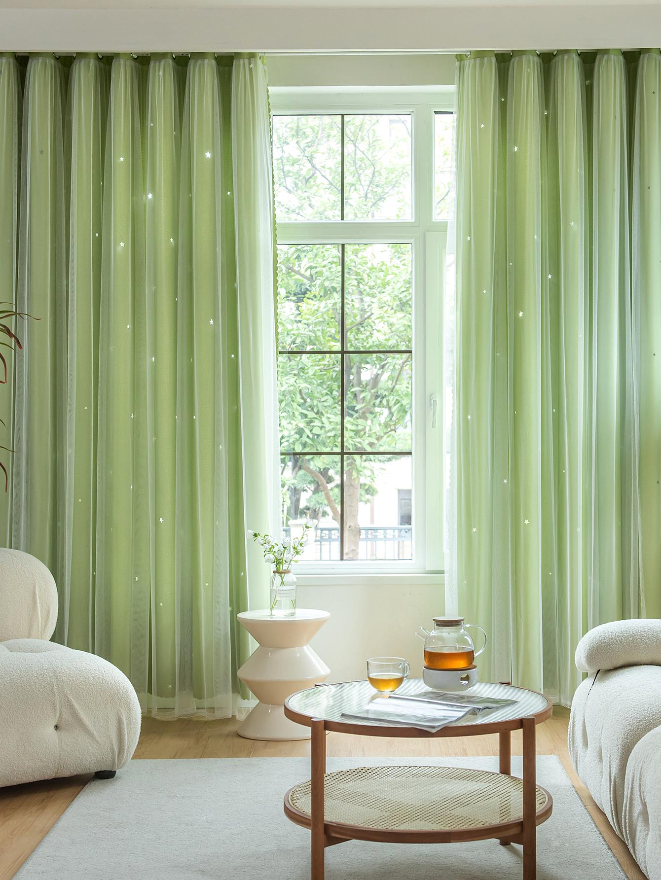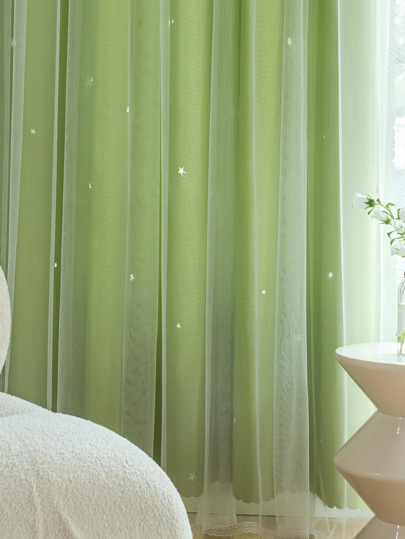 Tenda A Doppio Strato Con Design A Stella Vuota E Pizzo, Funzione Oscurante E Anti Luce