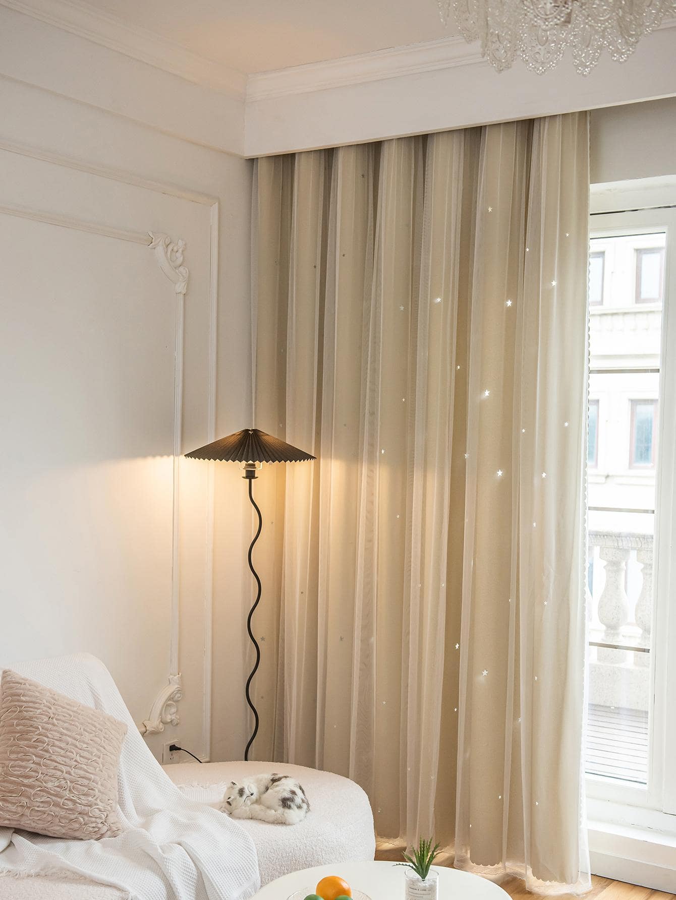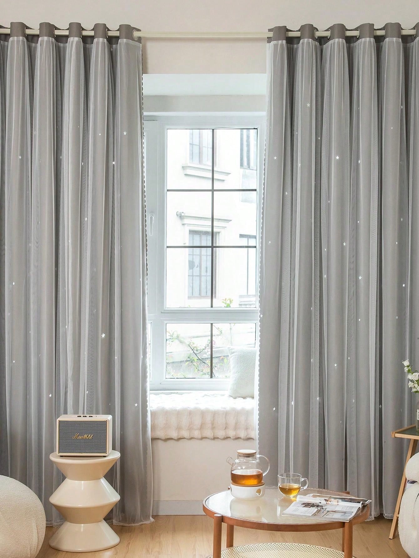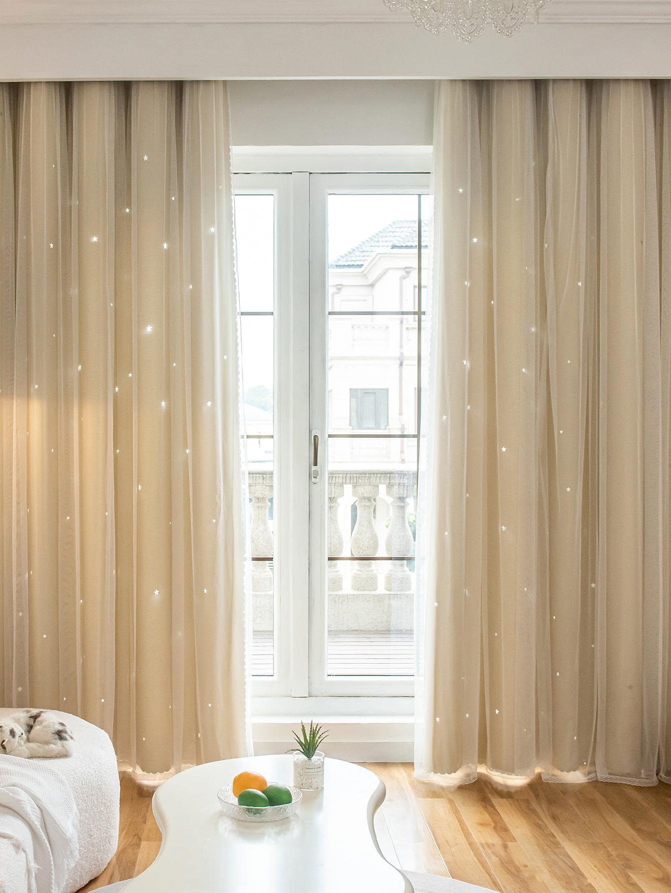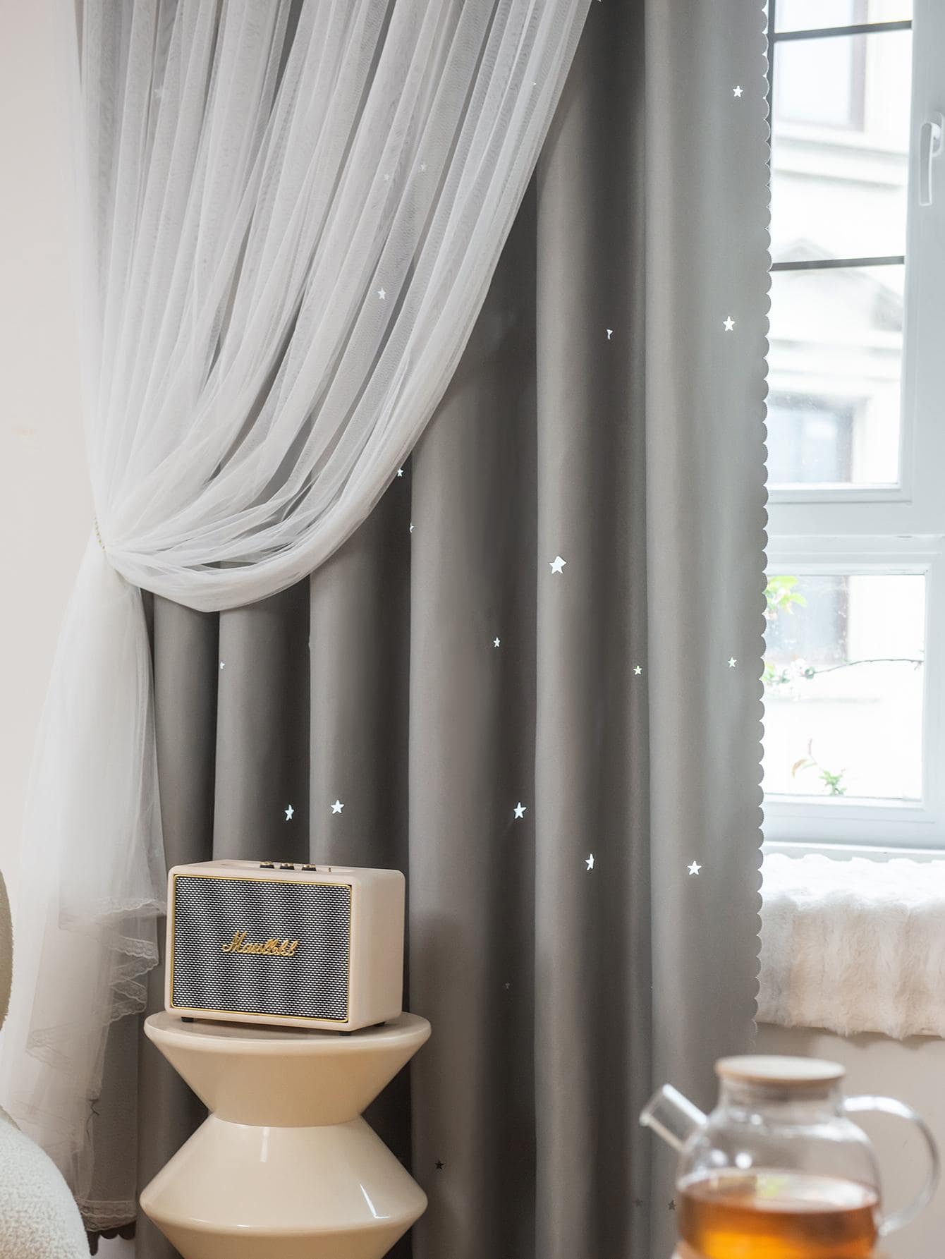 Tenda A Doppio Strato Con Design A Stella Vuota E Pizzo, Funzione Oscurante E Anti Luce