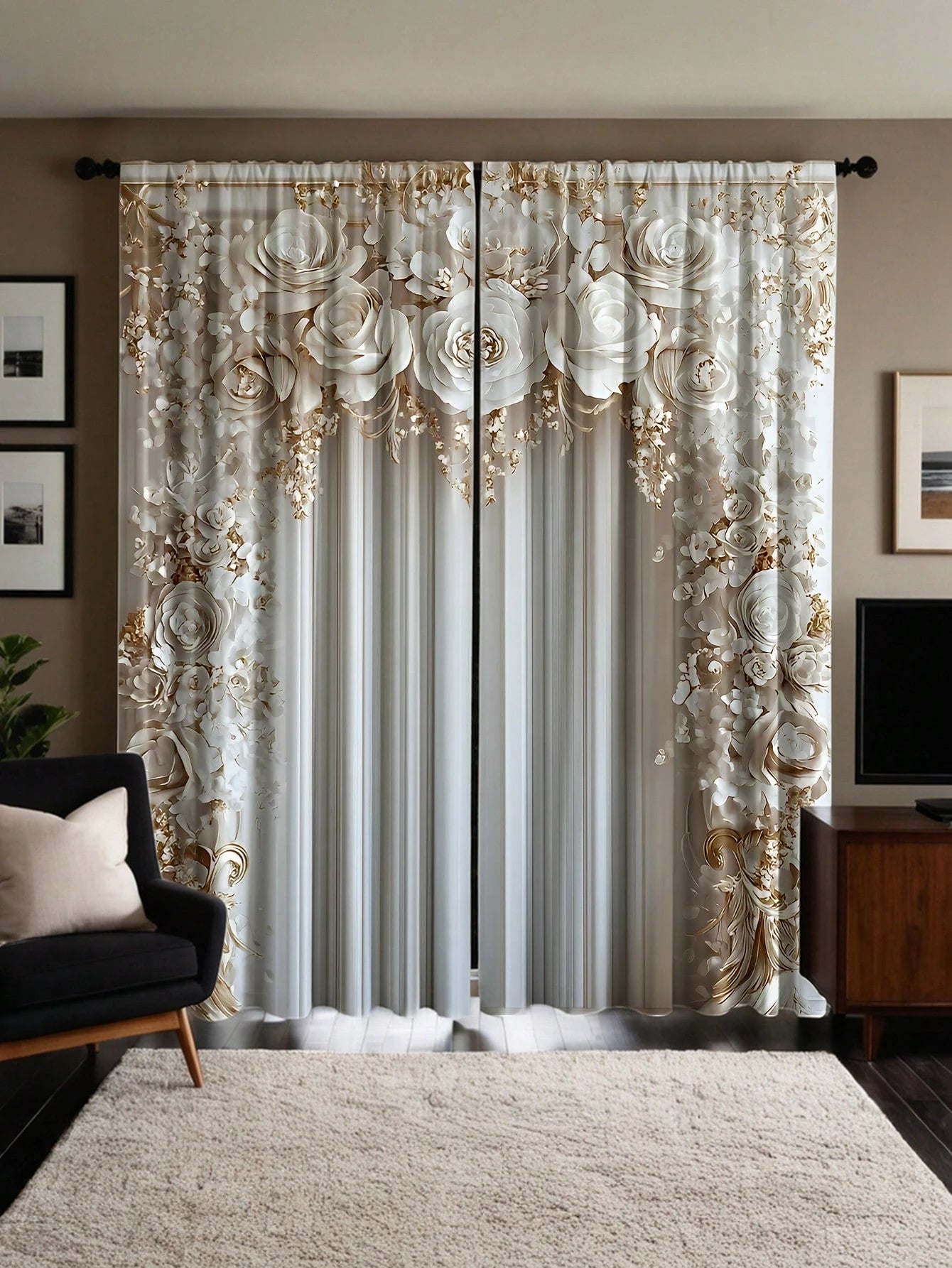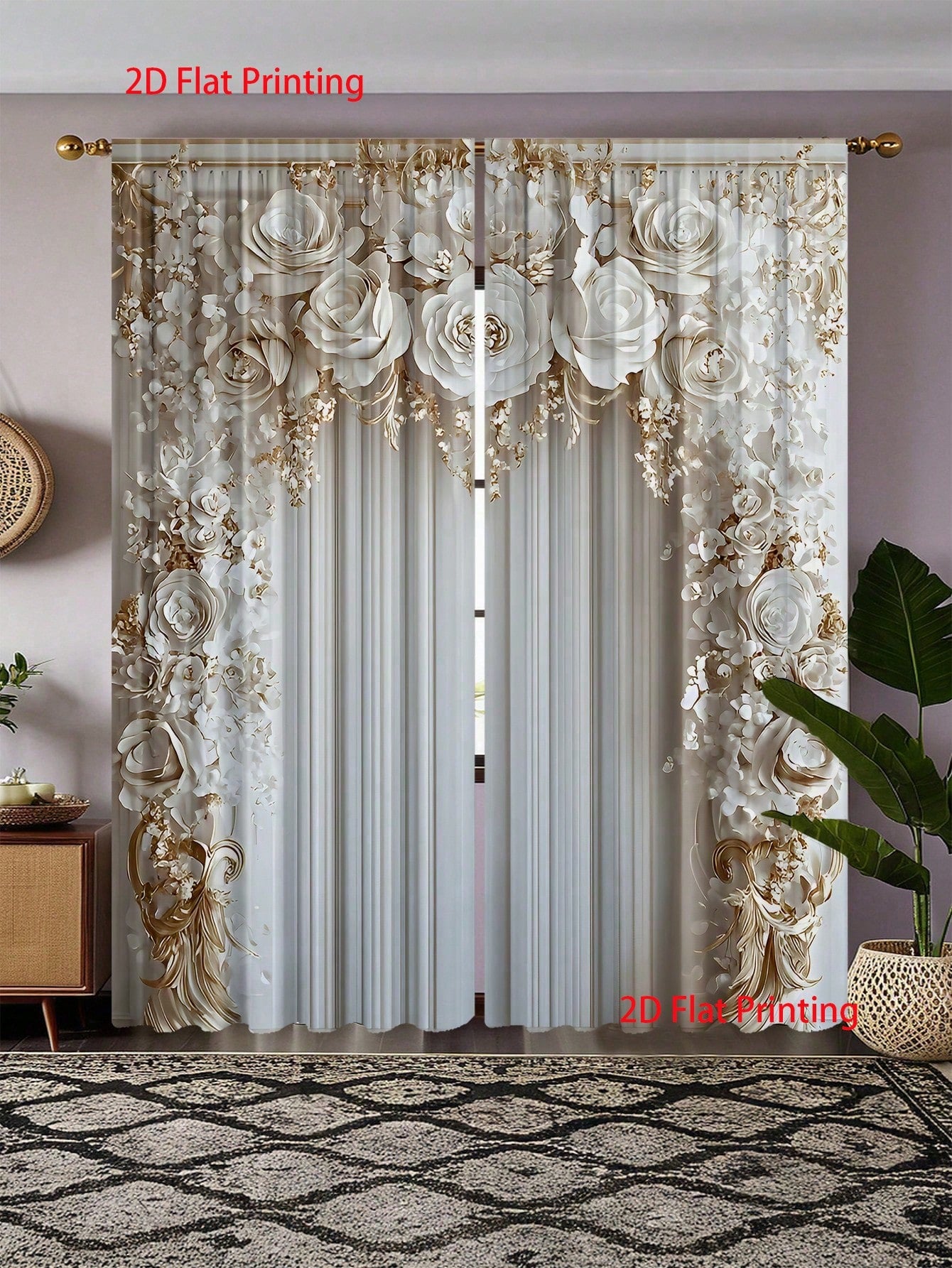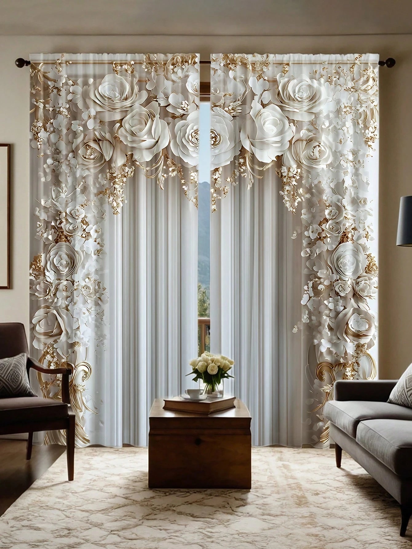 Tende di stile europeo di lusso, 100% poliestere, decorative per esterni 2 pezzi