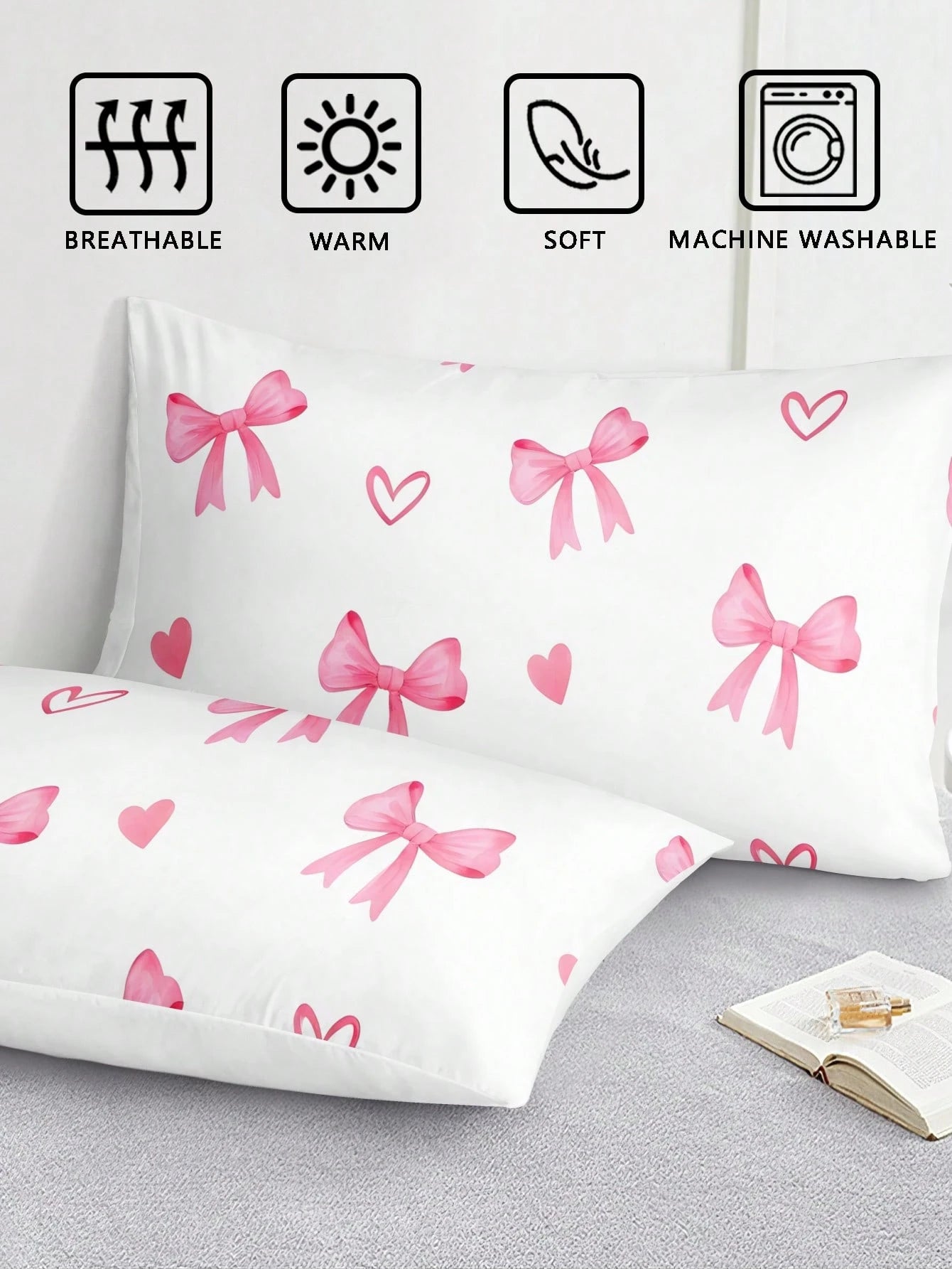 Realizzato in poliestere morbidissimo e delicato sulla pelle, presenta una stampa digitale esclusiva con fiocchi rosa acquerellati e cuori disegnati a mano.