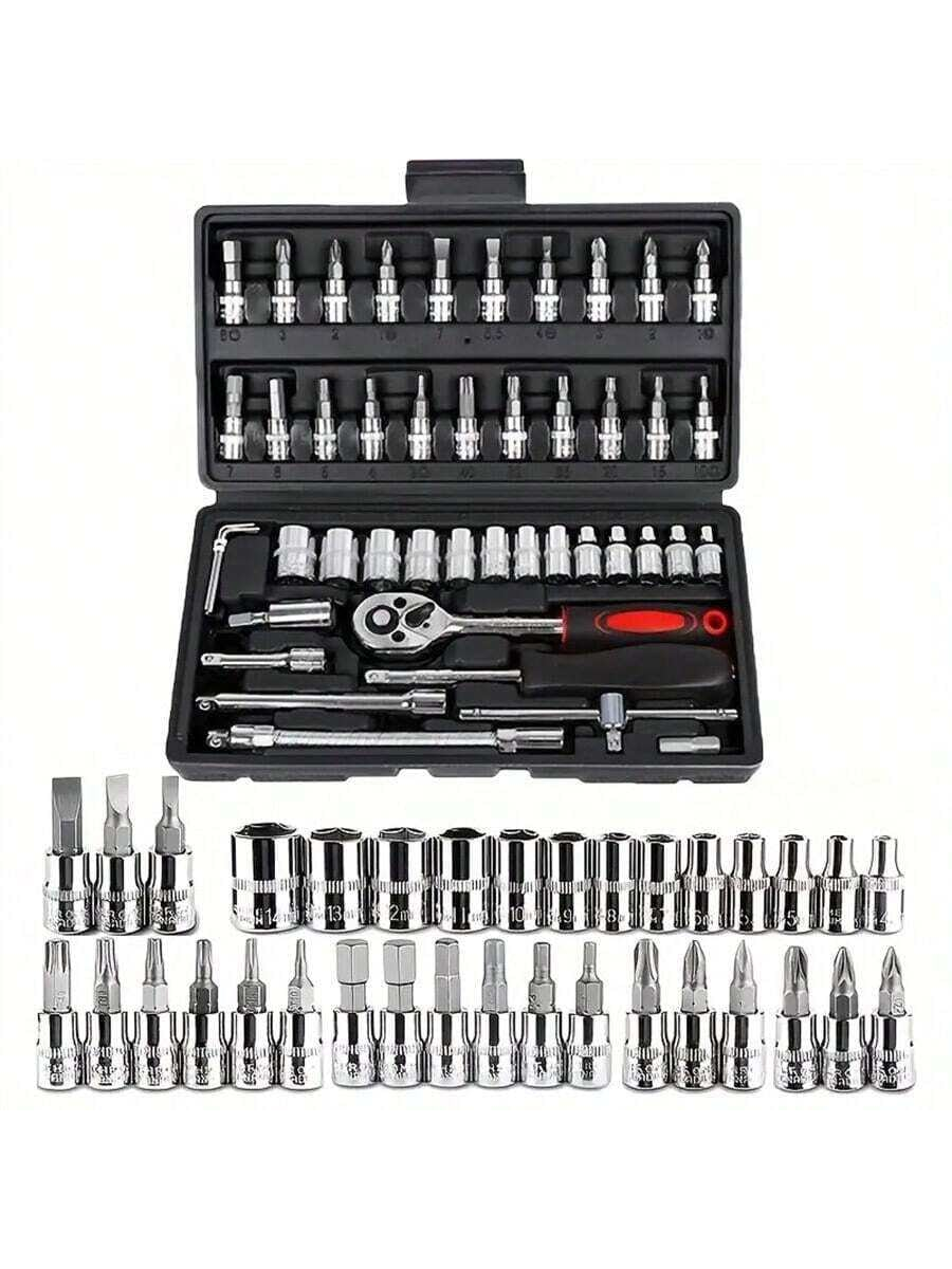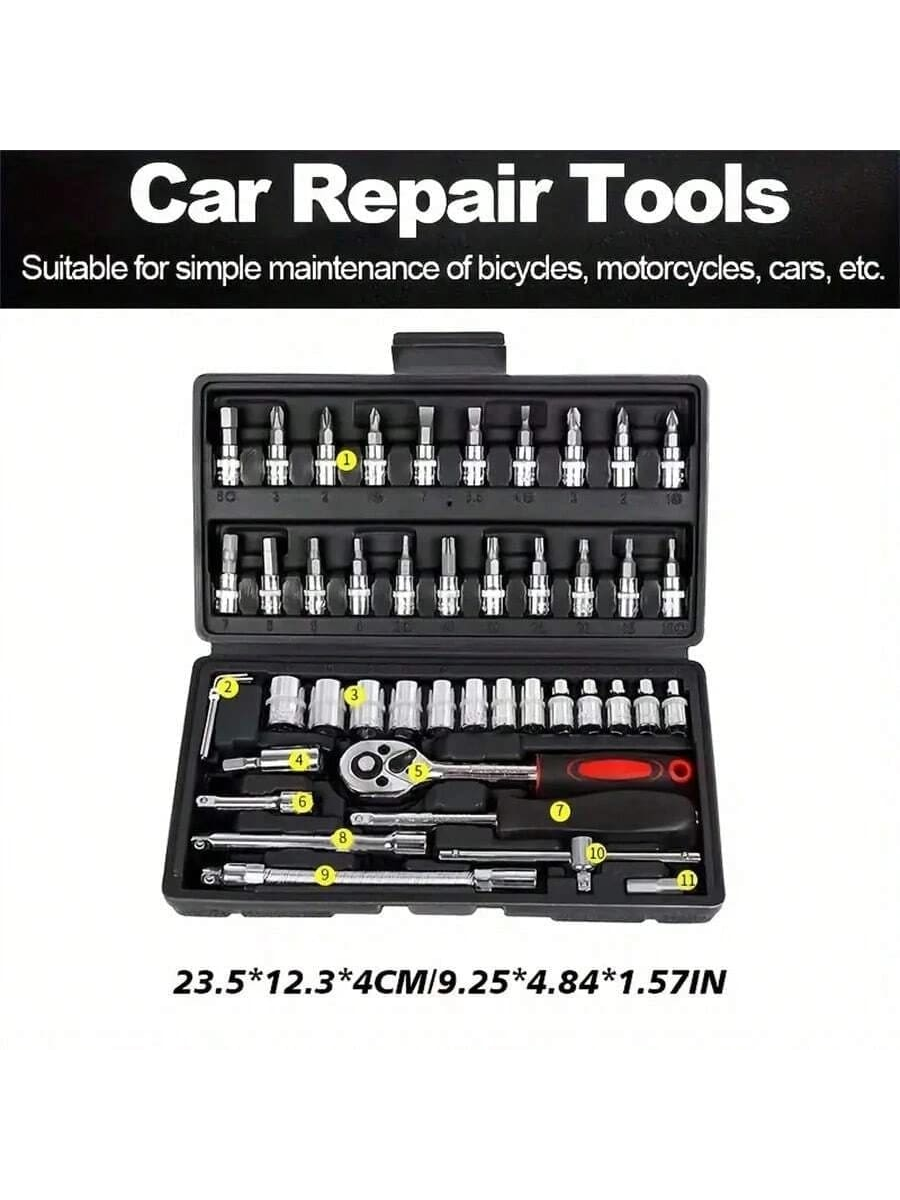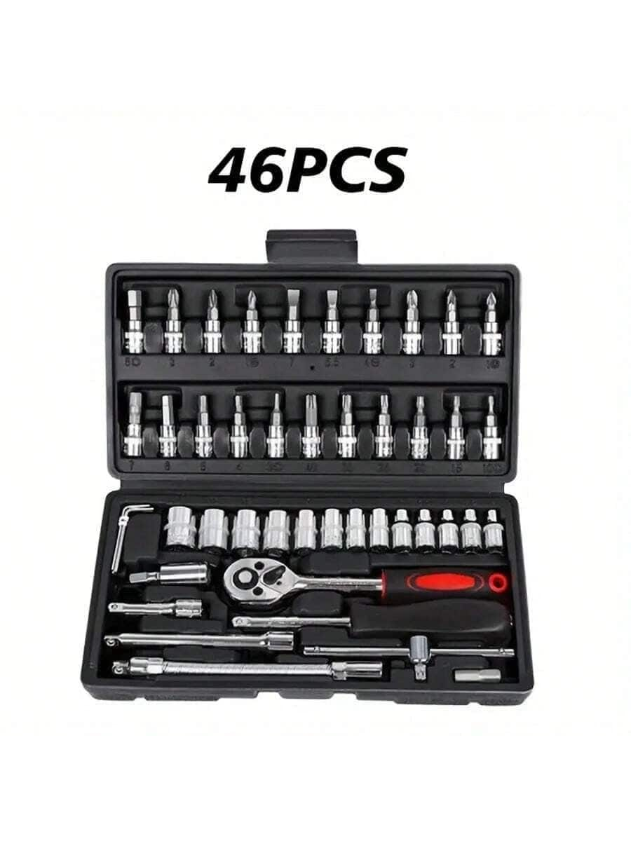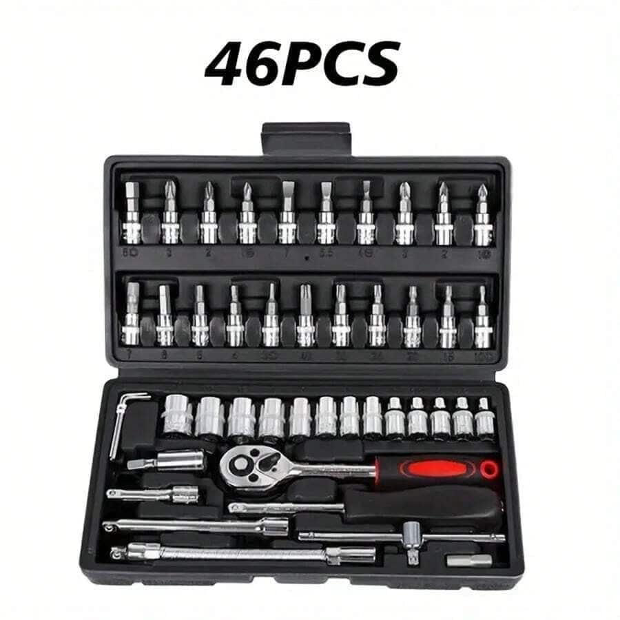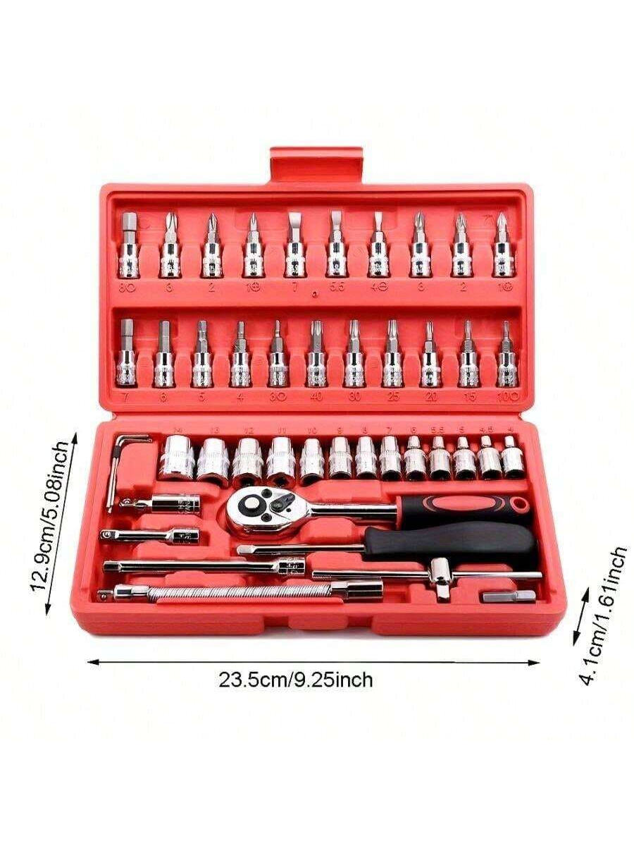 46 pezzi Set di chiavi a cricchetto da 1/4" con bussole metriche, barra di estensione per auto, riparazione bici e uso domestico, con scatola di immagazzinaggio
