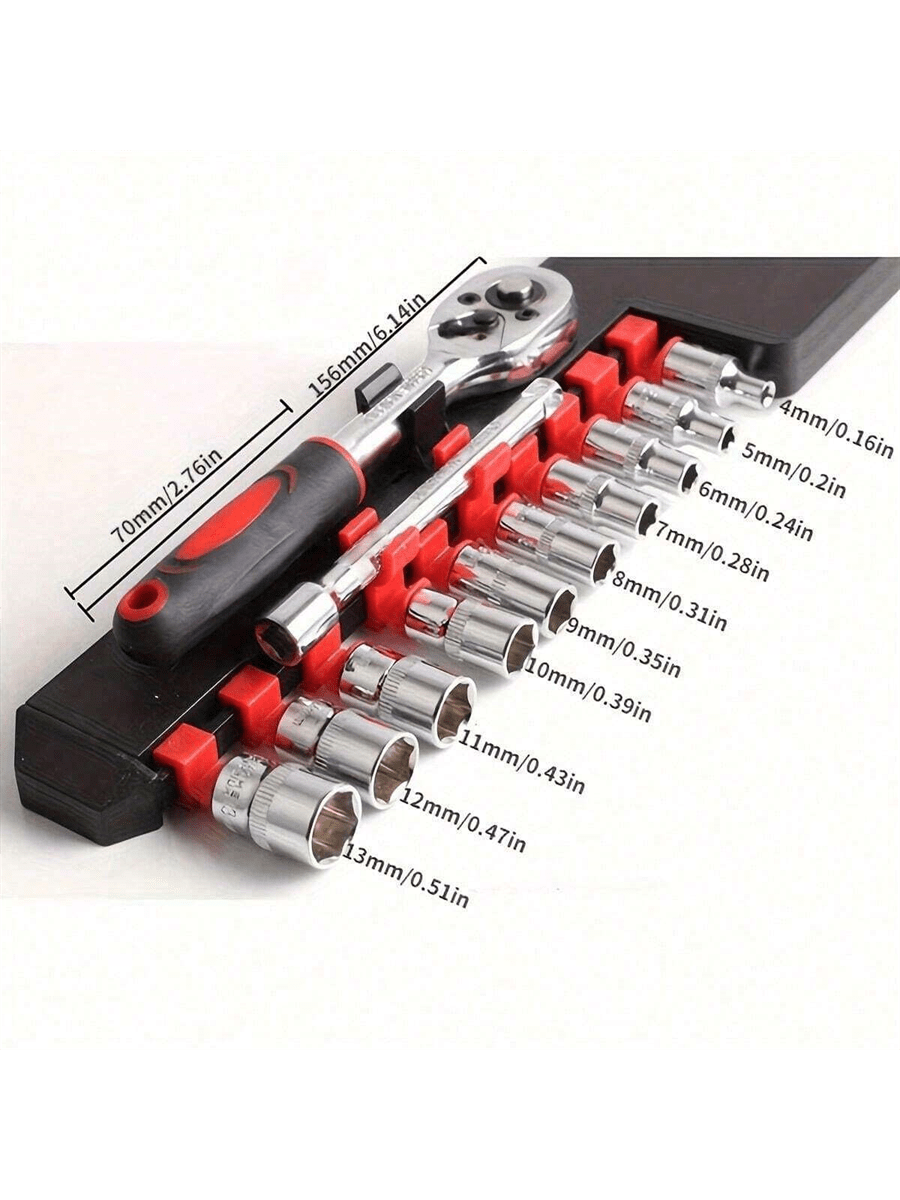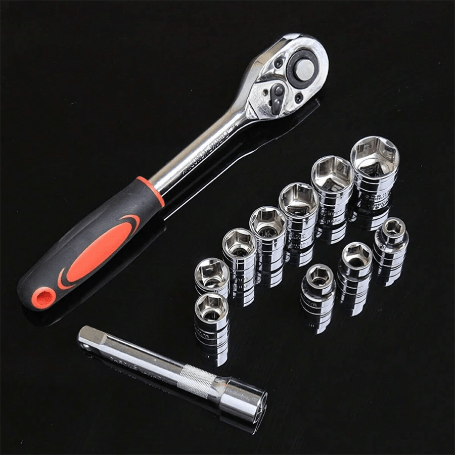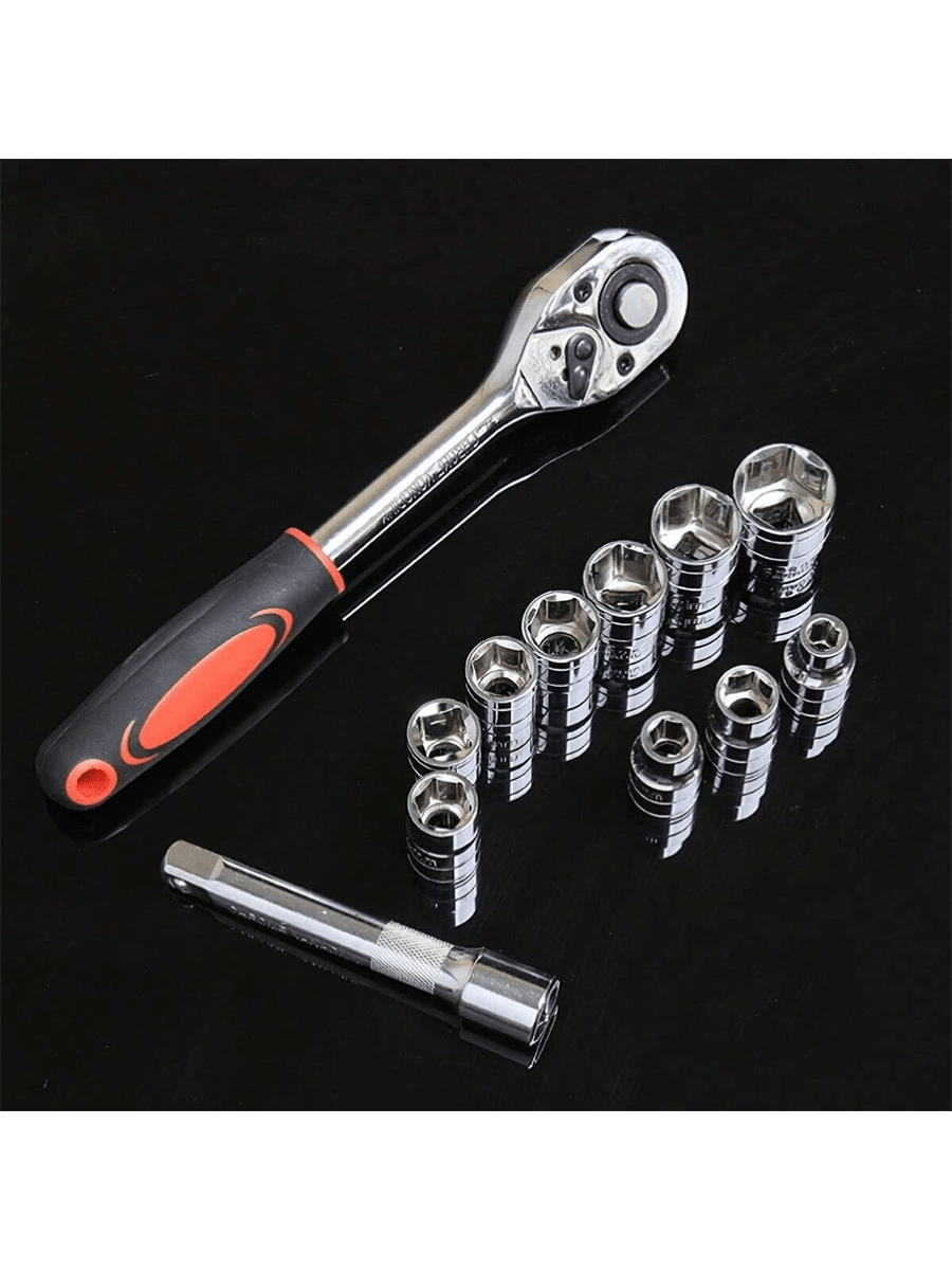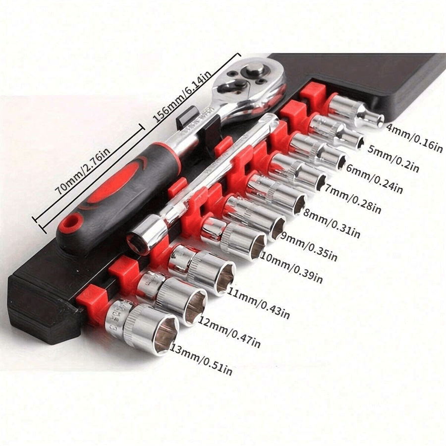 46 pezzi Set di chiavi a cricchetto da 1/4" con bussole metriche barra di estensione per auto