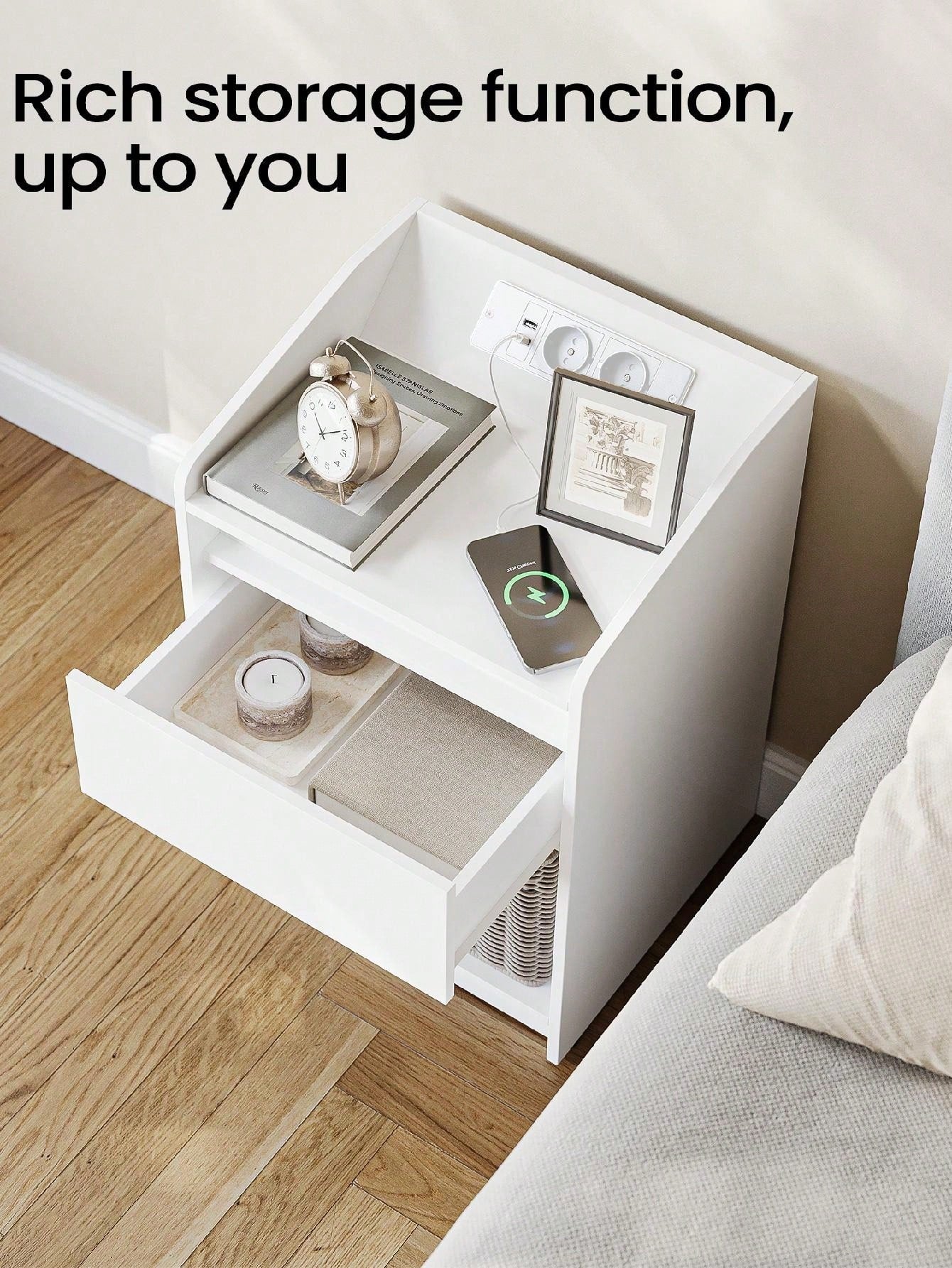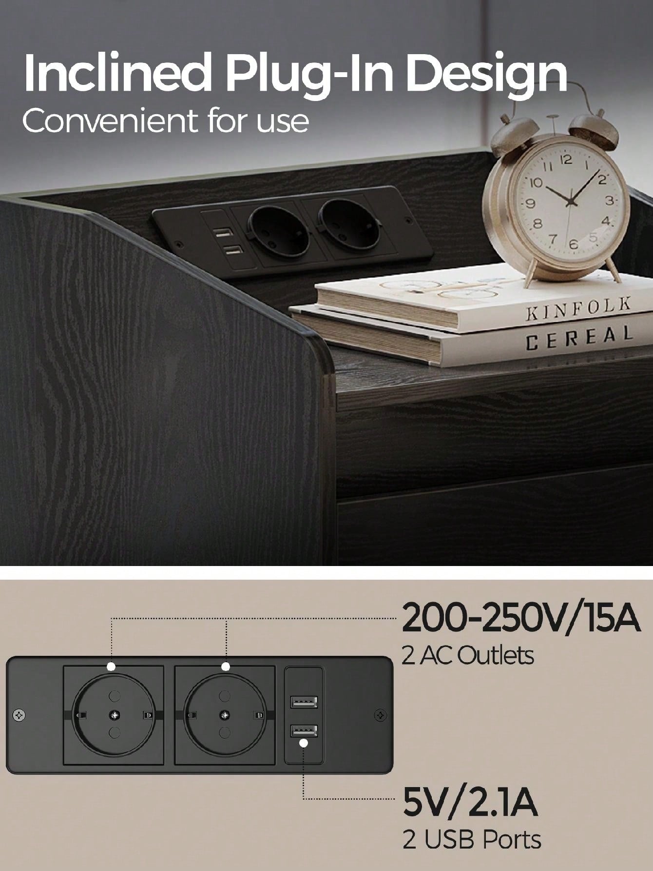 . Collegare i dispositivi con facilità: il pannello di ricarica angolato è la caratteristica principale di questo comodino, che consente un facile accesso per collegare e scollegare i dispositivi.