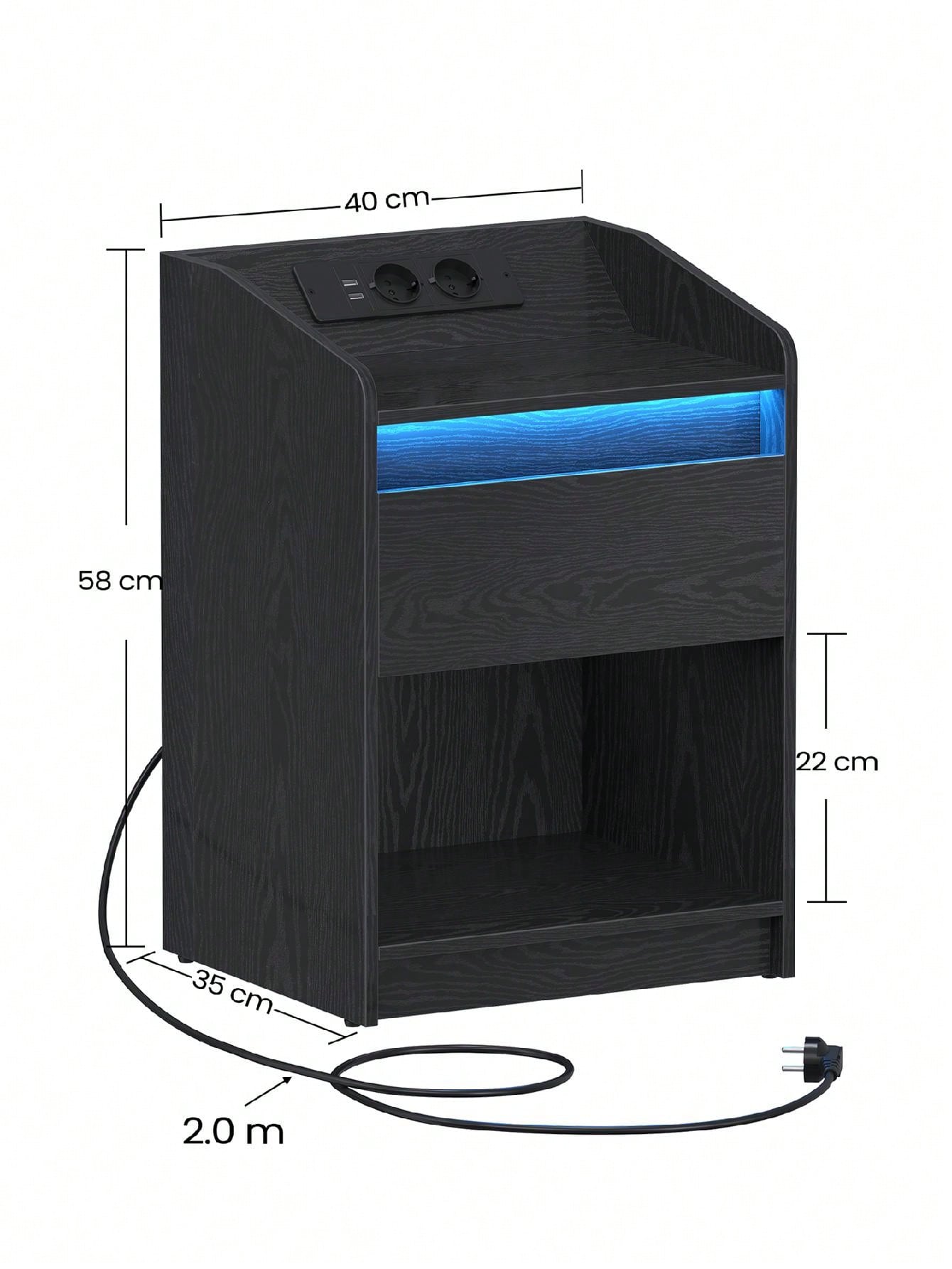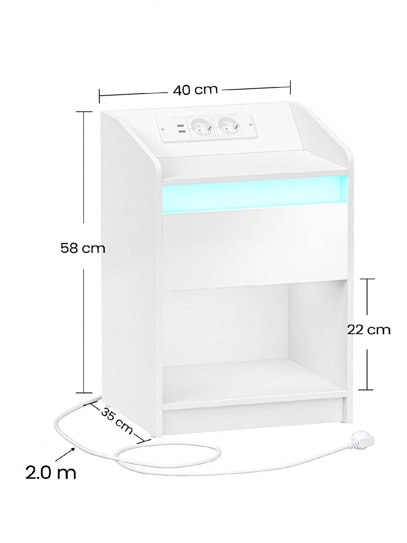 Grazie al cavo di 2 metri in dotazione, è possibile posizionare questo comodino lontano dalla presa di corrente e godere comunque dei vantaggi della ricarica