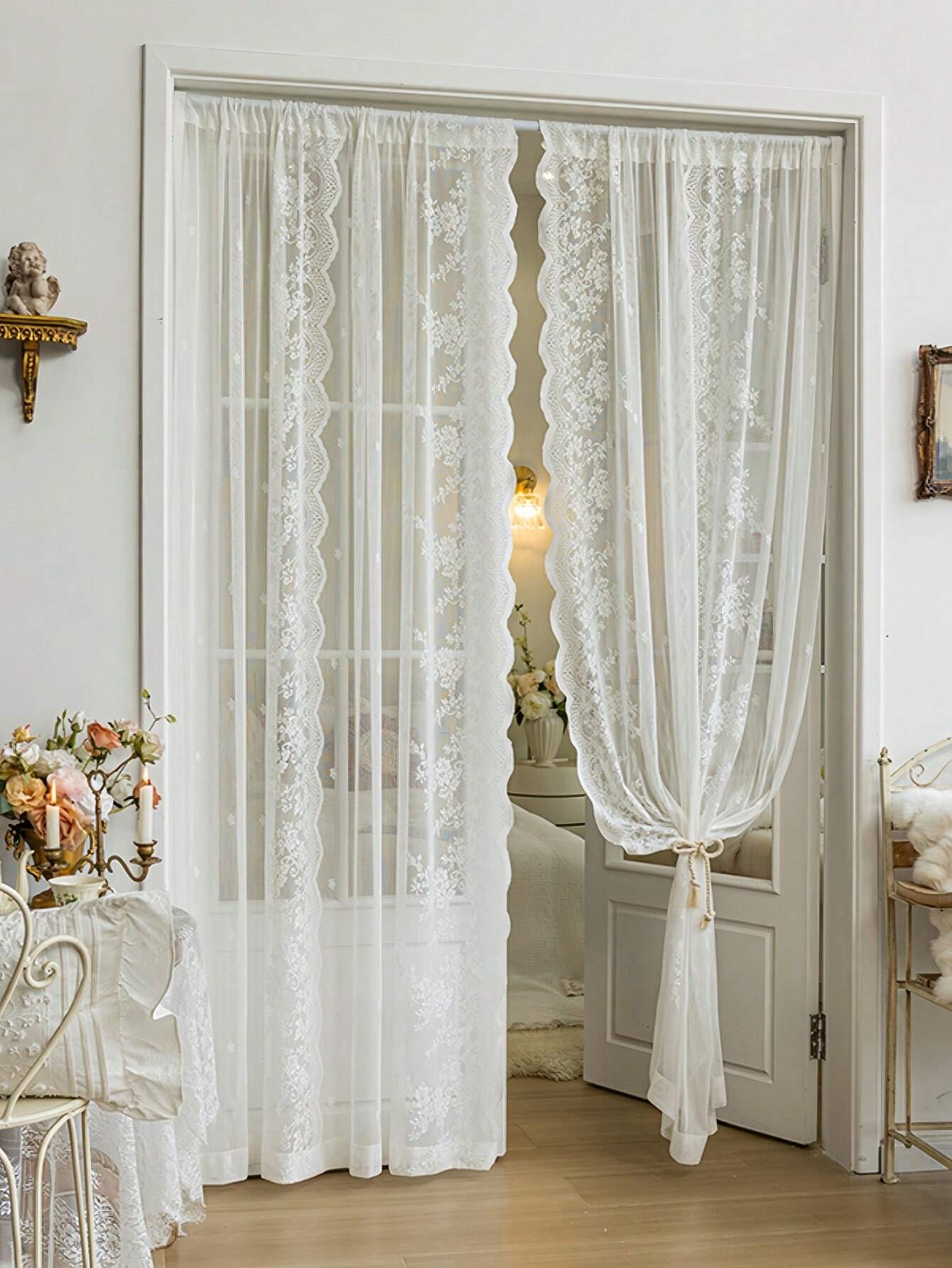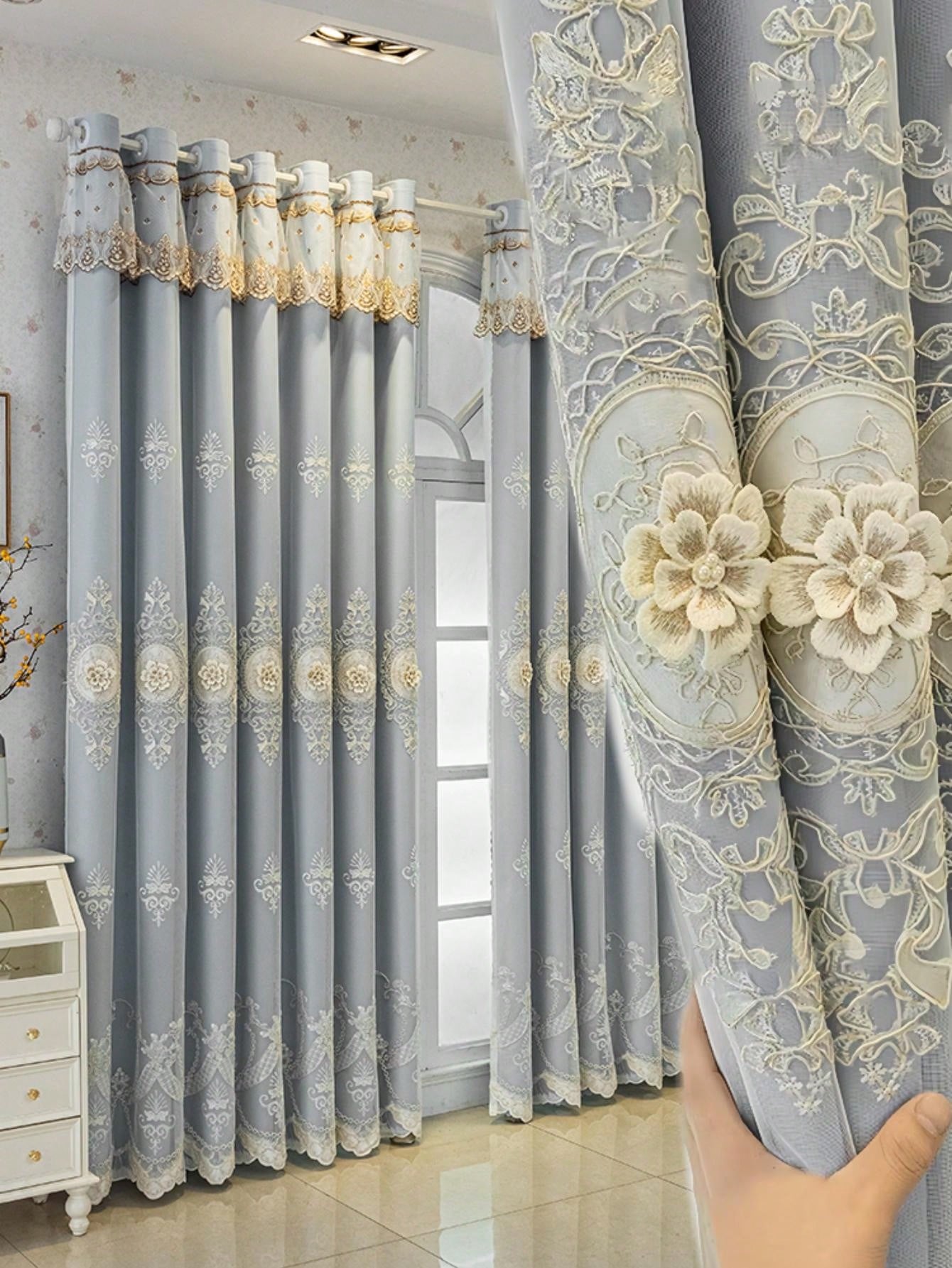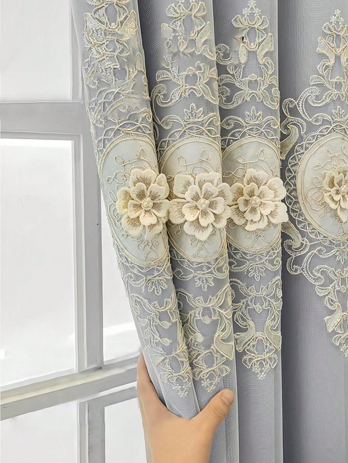 Lussuosa tenda a doppio strato con drappeggi trasparenti ricamati per salotto