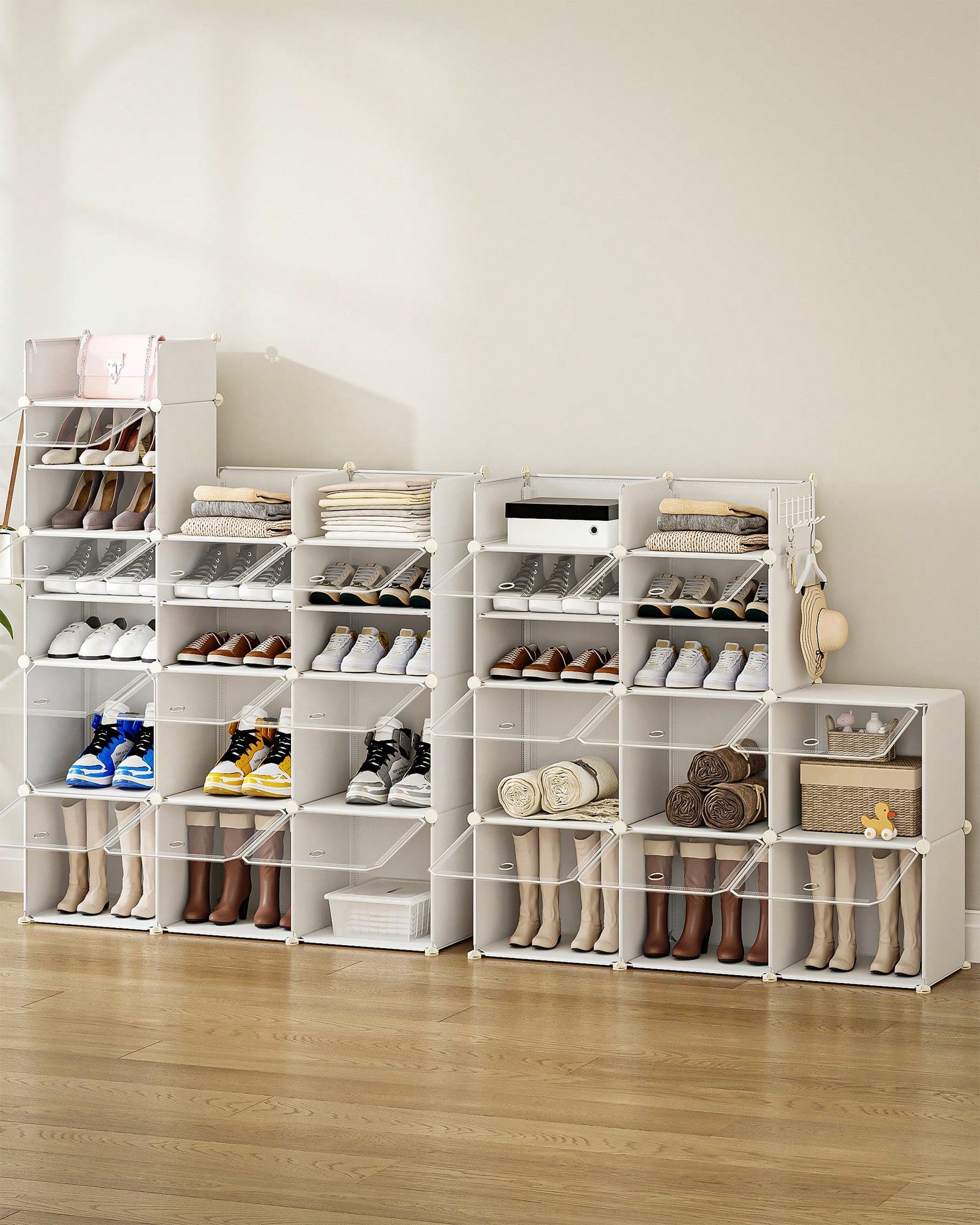 Organizzatore per scarpe versatile e funzionale, realizzato in plastica resistente di alta qualità.