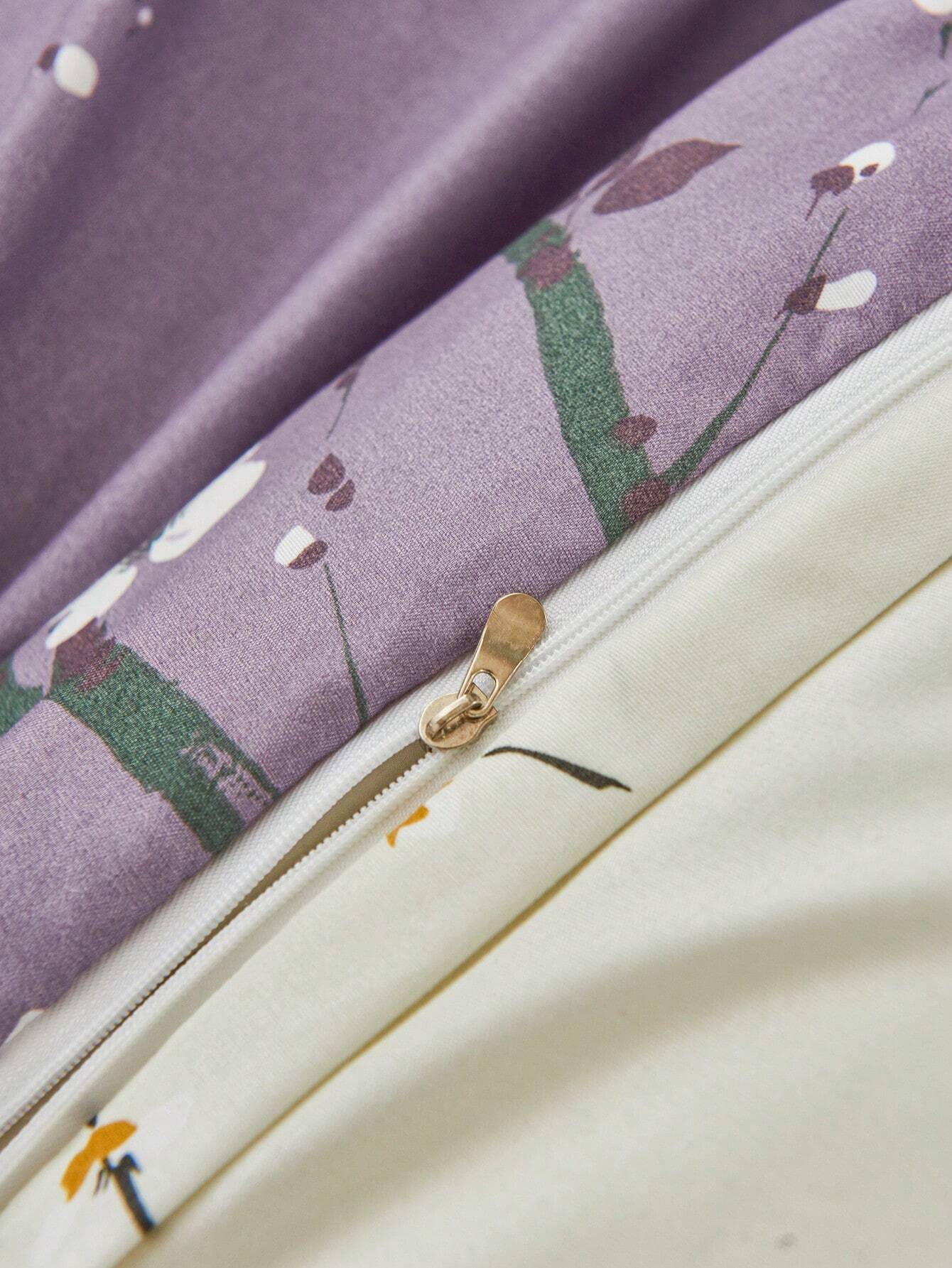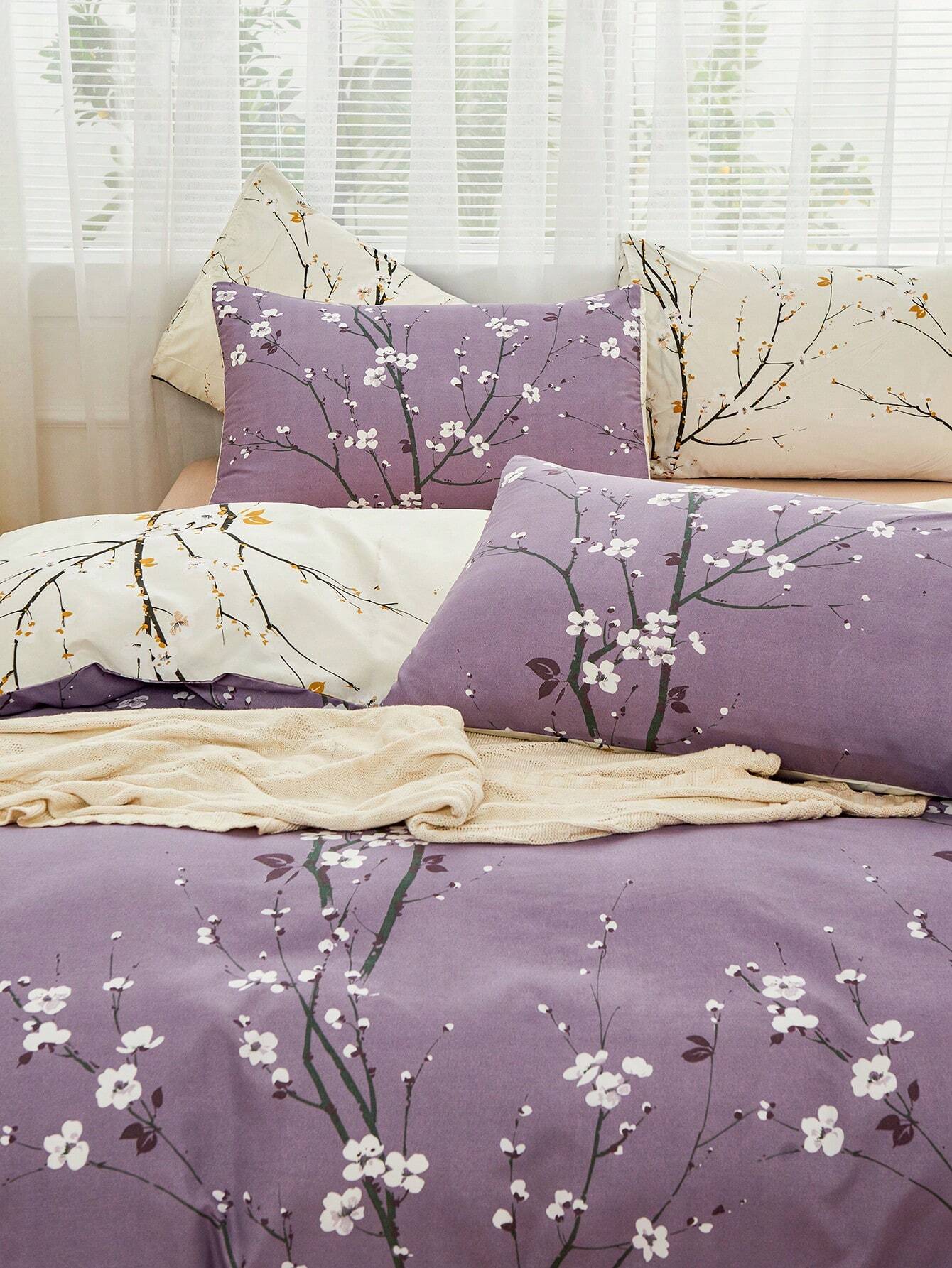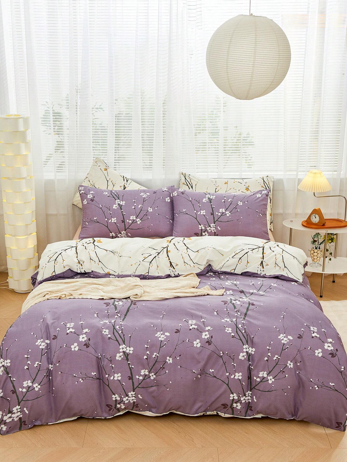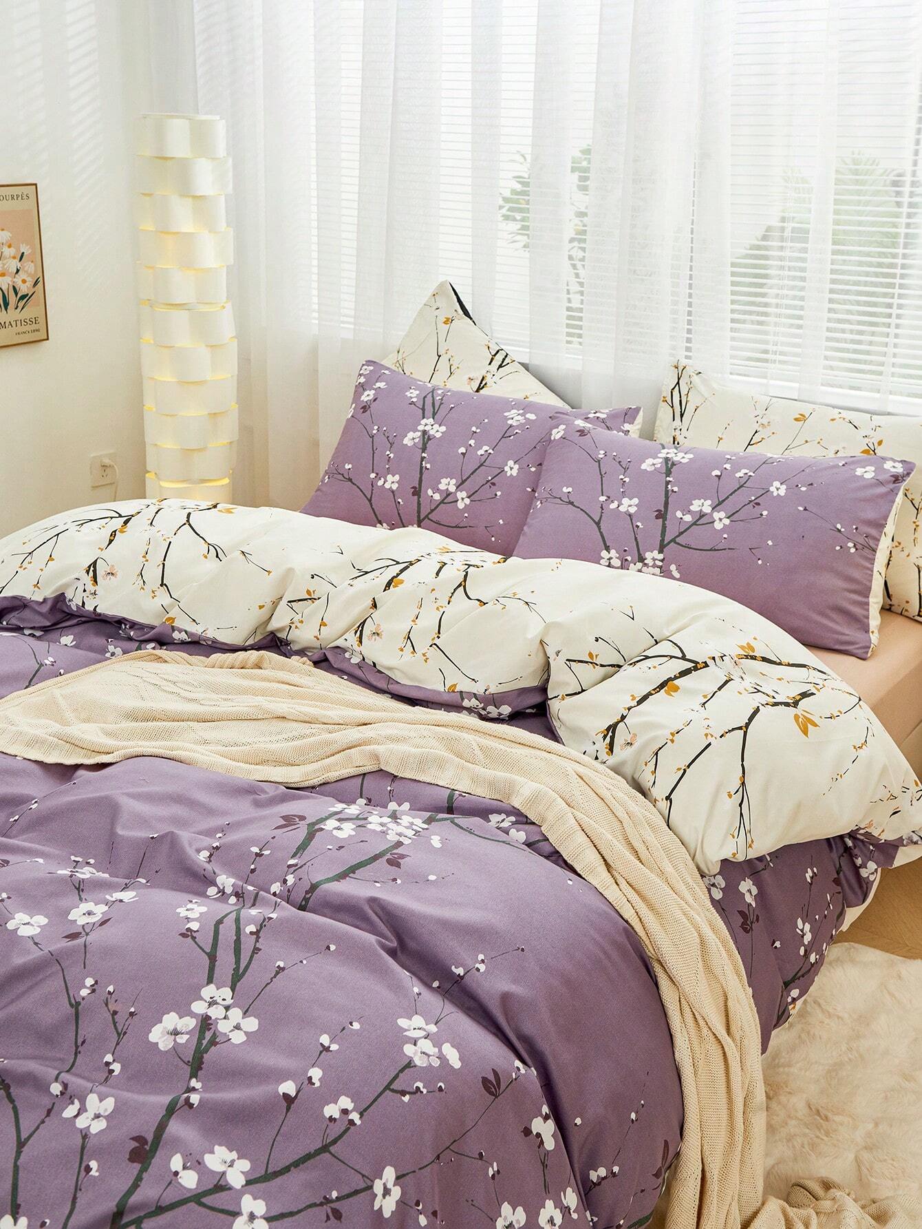 Set copripiumino 3 pezzi reversibile con motivo a fiori di prugna a due tonalità di viola