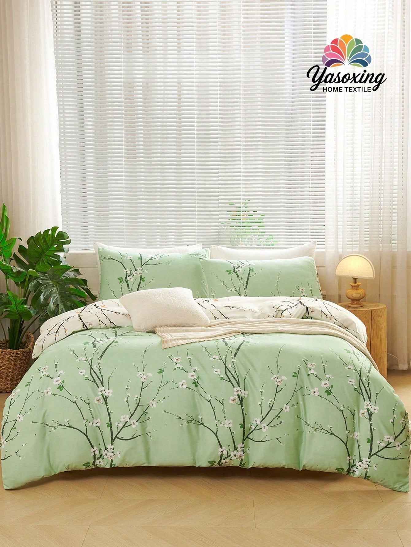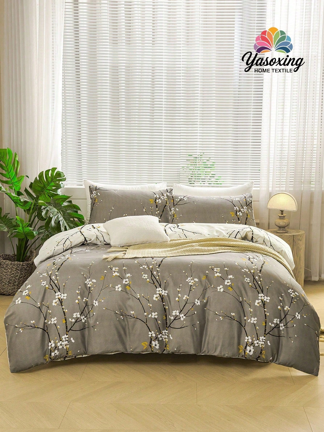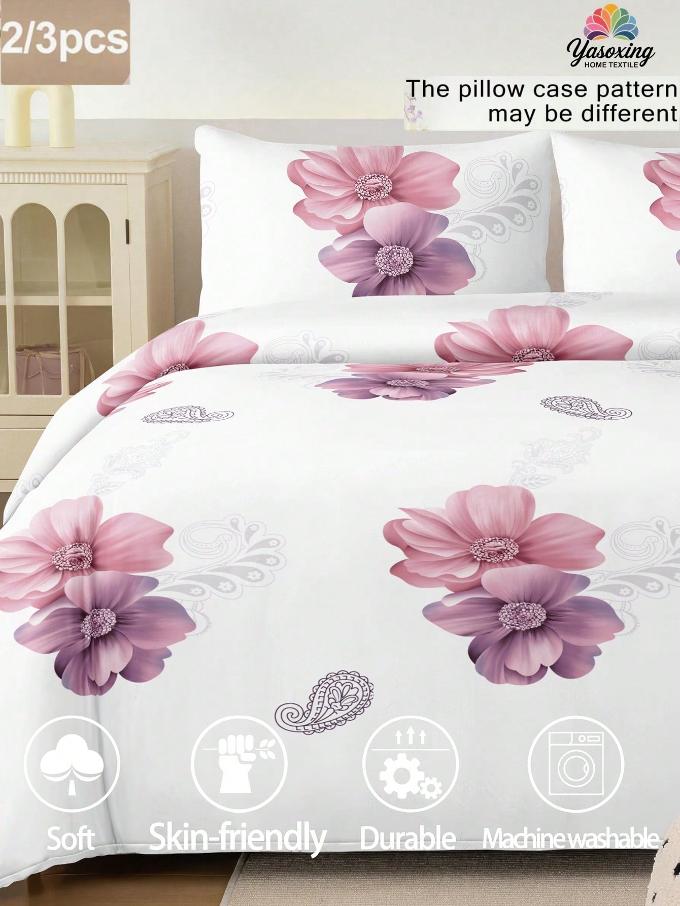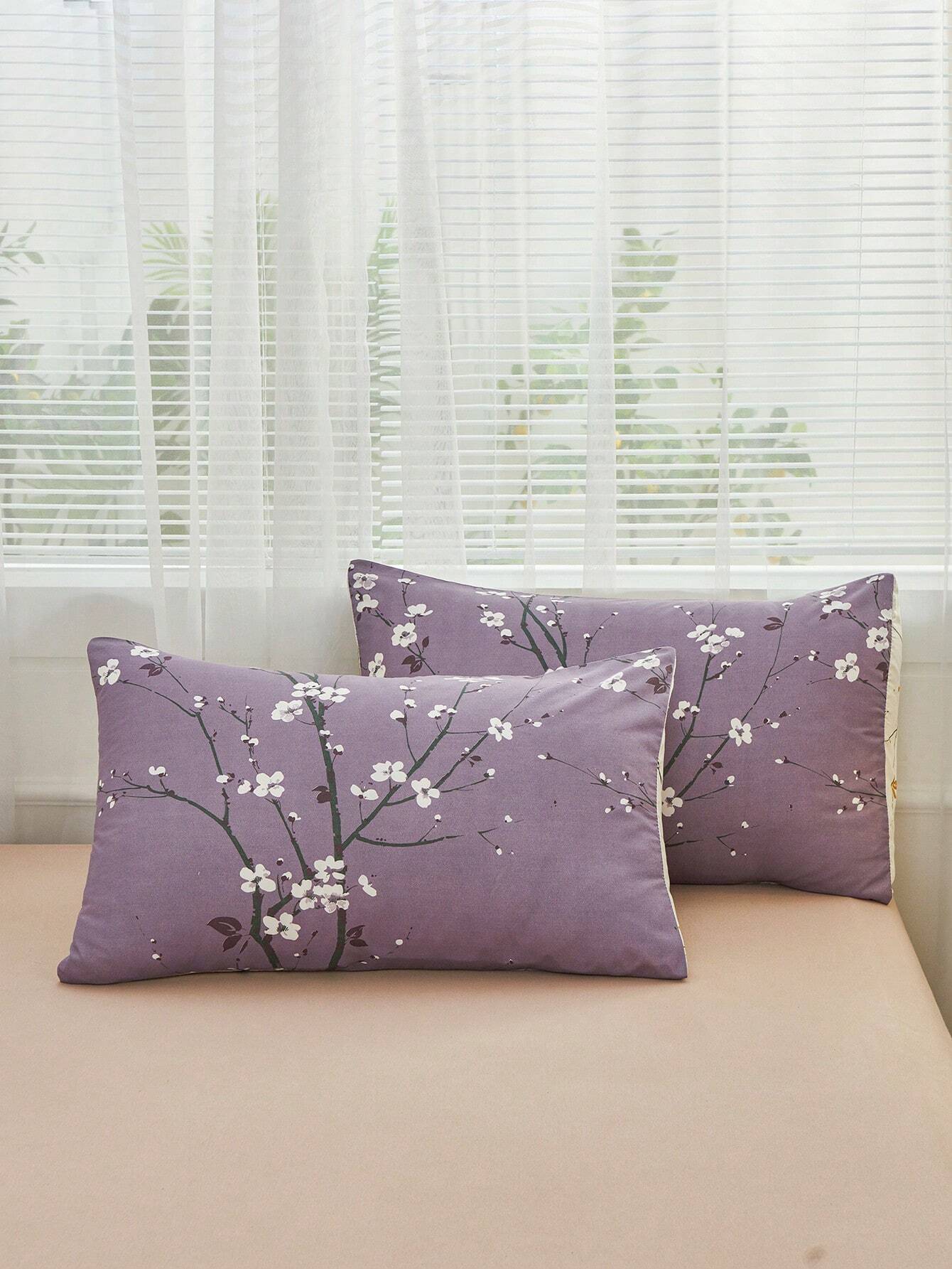 Set copripiumino 3 pezzi reversibile con motivo a fiori di prugna a due tonalità di viola
