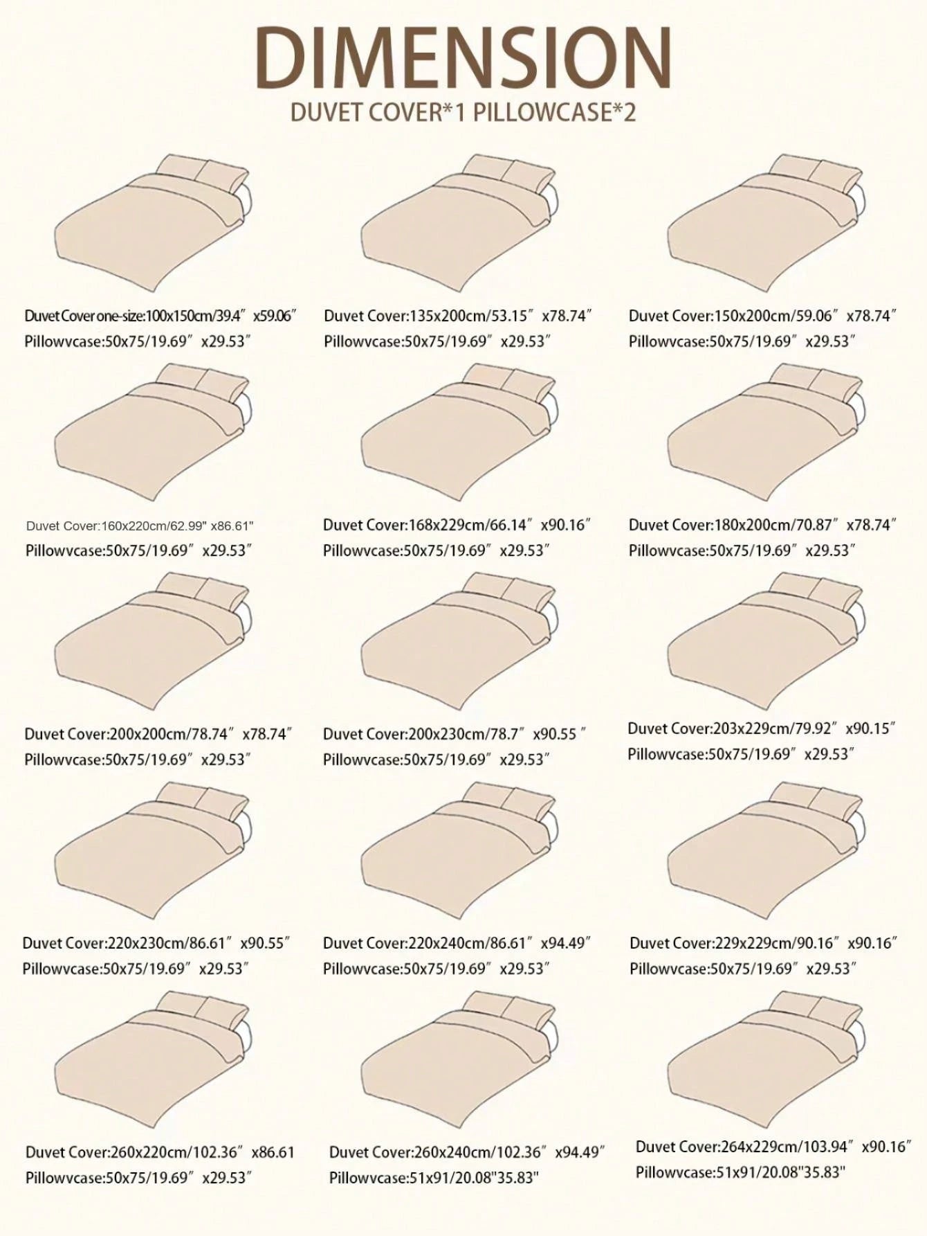 | Misure | Dimensione del copripiumino | Larghezza | Lunghezza |