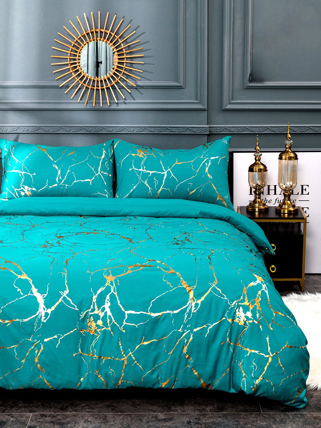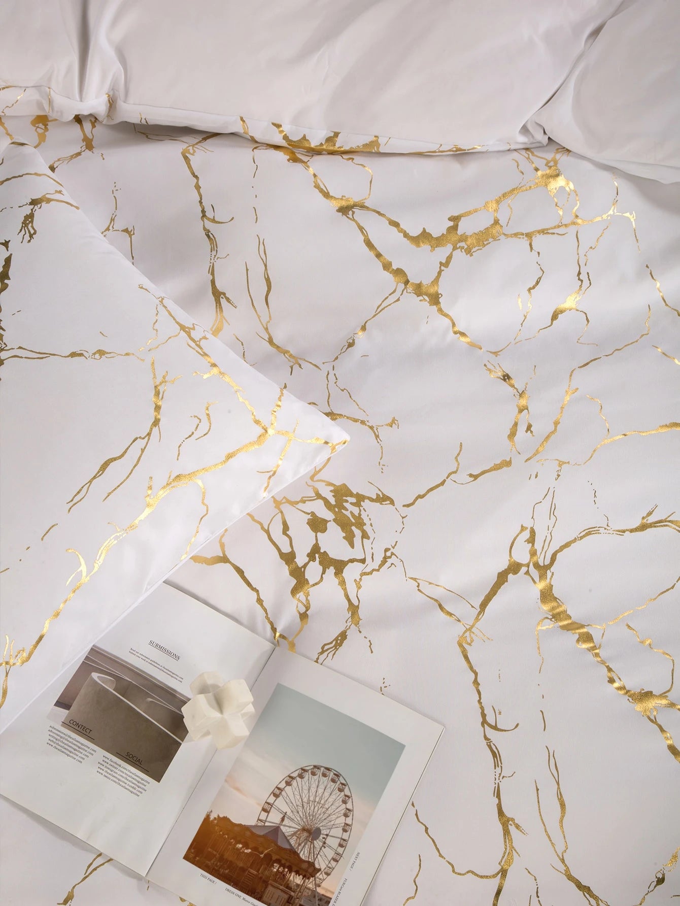 Trasforma la tua camera da letto in uno spazio elegante e sofisticato con questo esclusivo set copripiumino marmo.