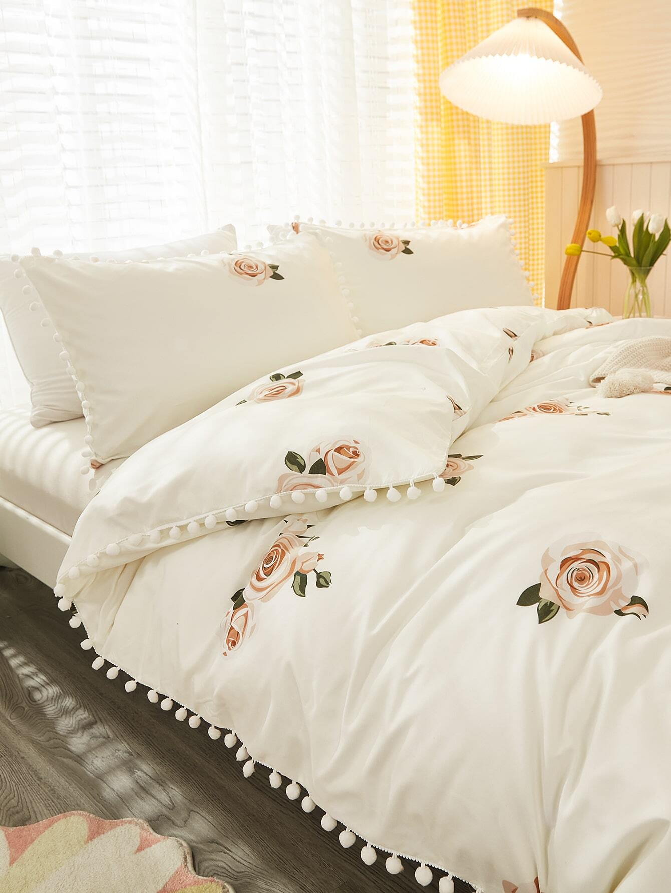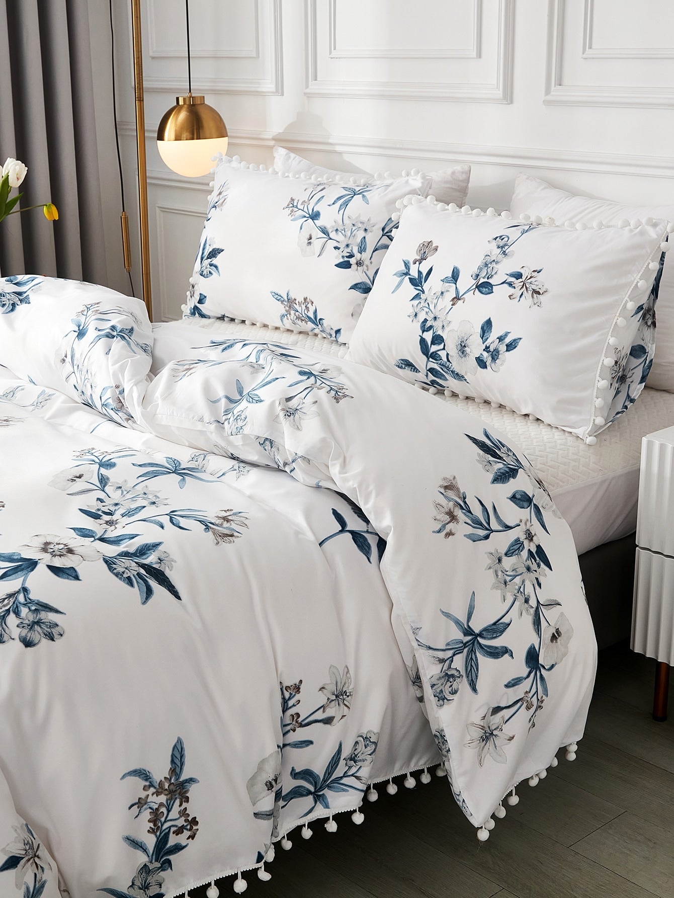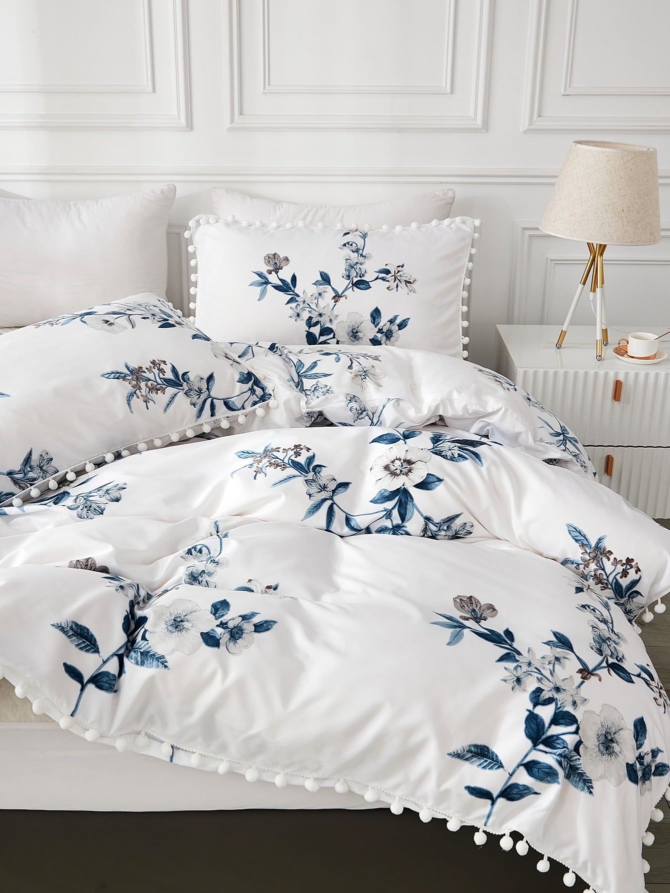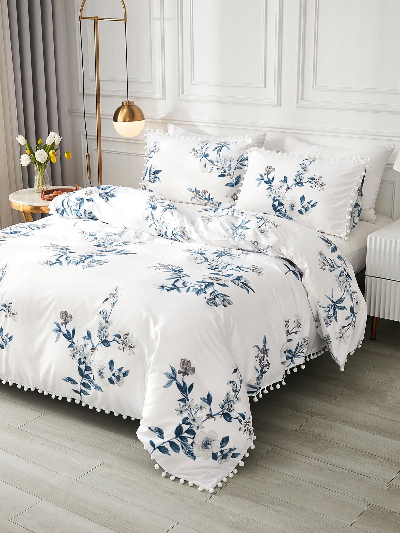 Set copripiumino senza riempitivo con stampa floreale decorato nappa