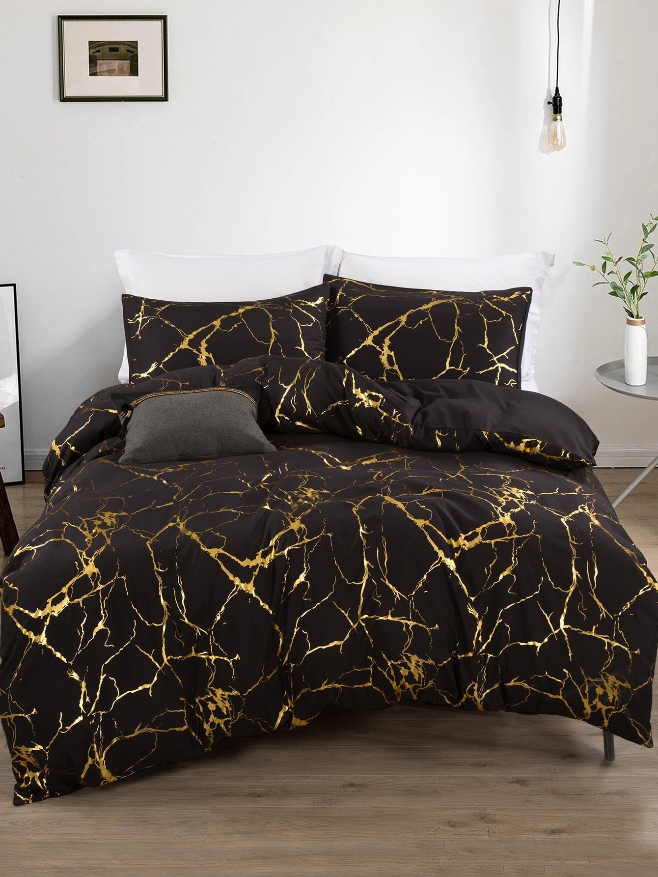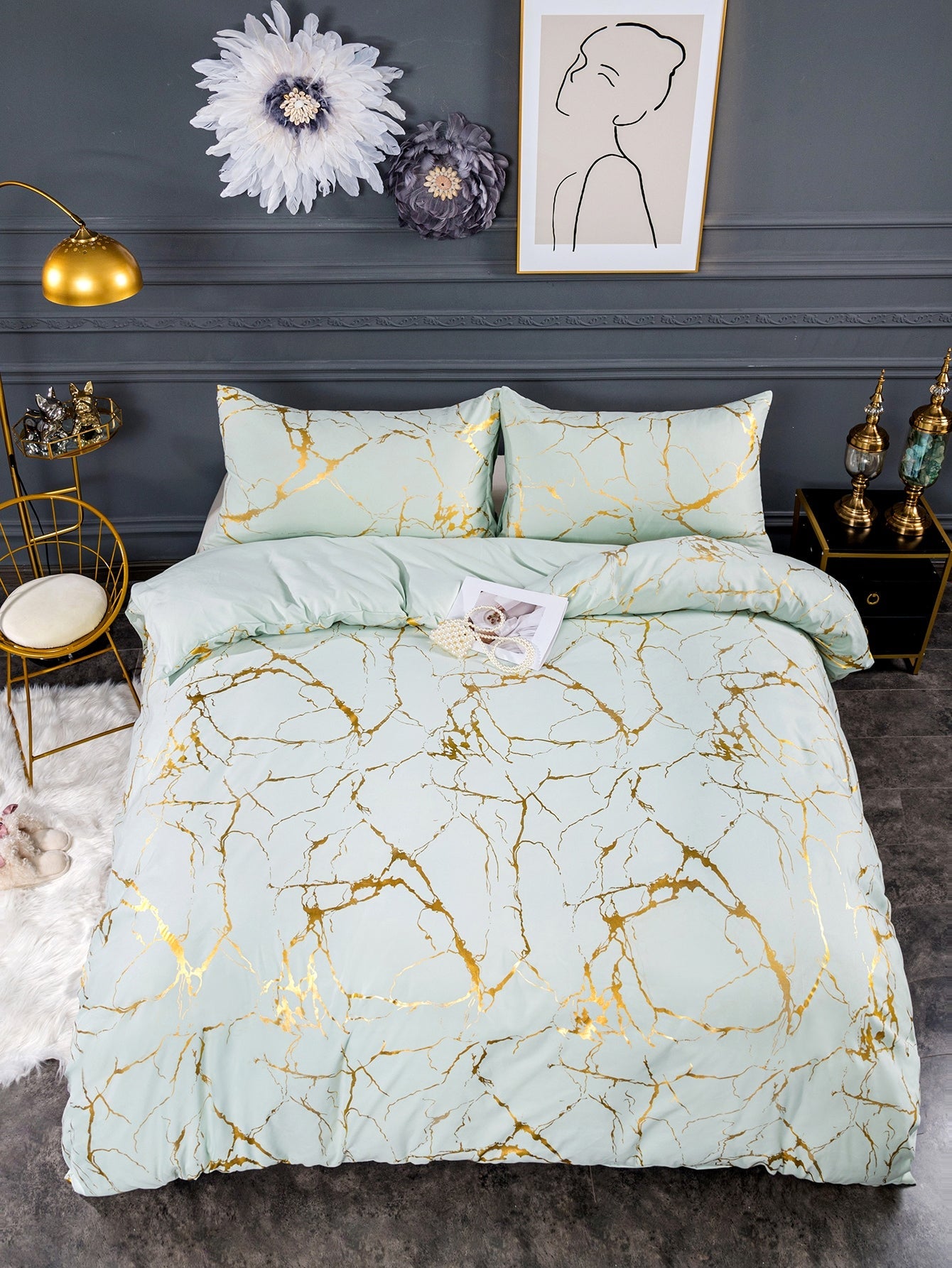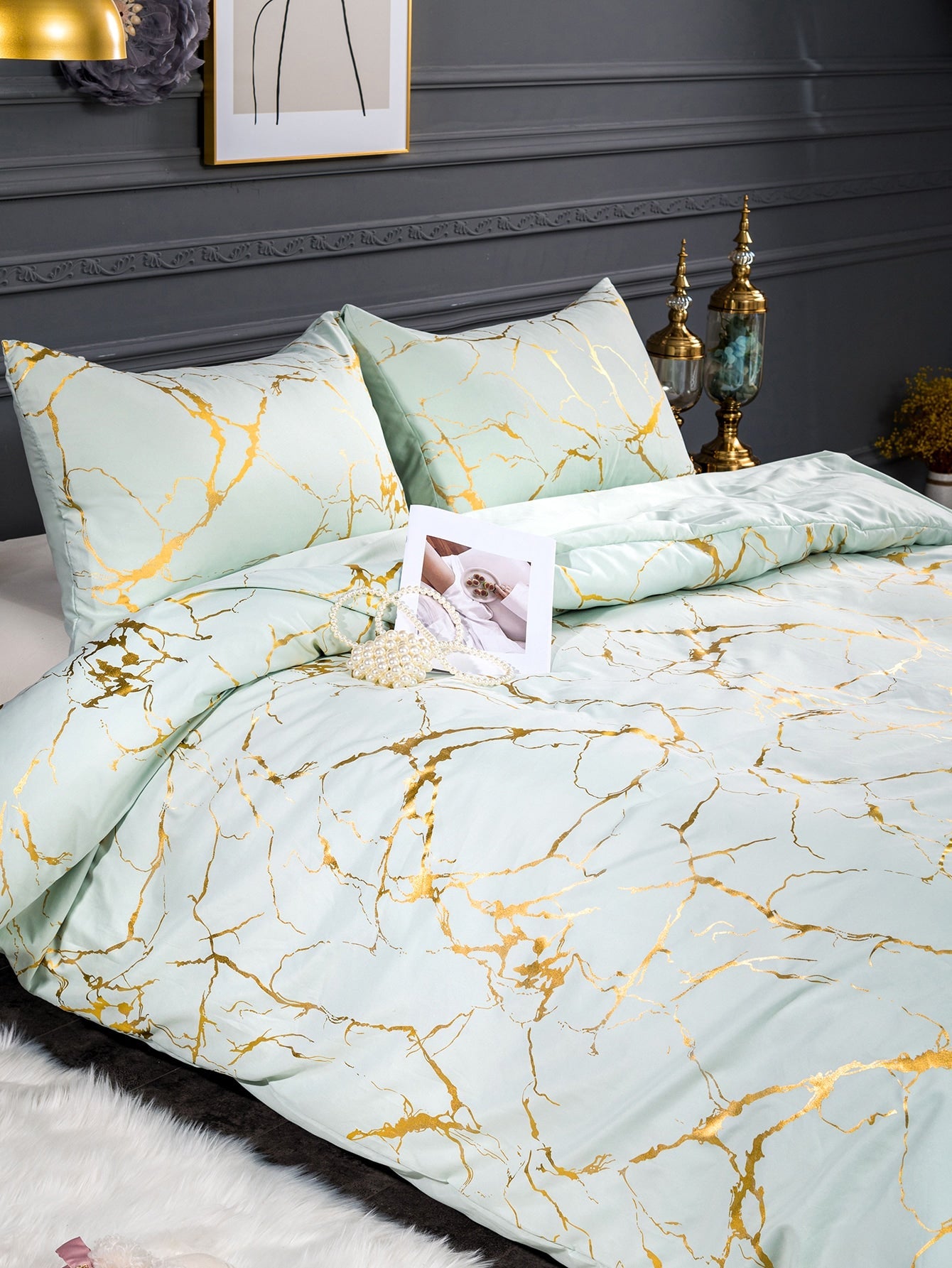 Set copripiumino senza riempitivo metallizzato con motivo marmo