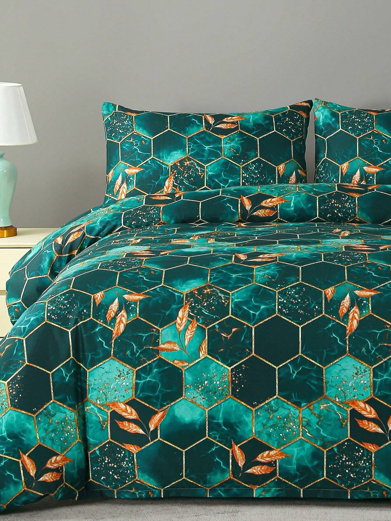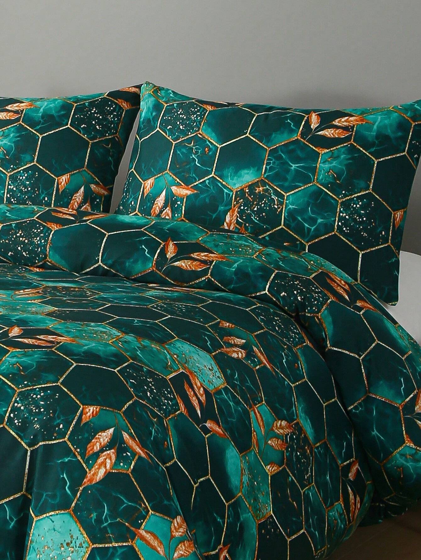 Caratterizzato da un design geometrico-floreale che cattura l'eleganza tradizionale, Questo completo include un copripiumino morbido e avvolgente insieme a 1 o 2 federe coordinate.