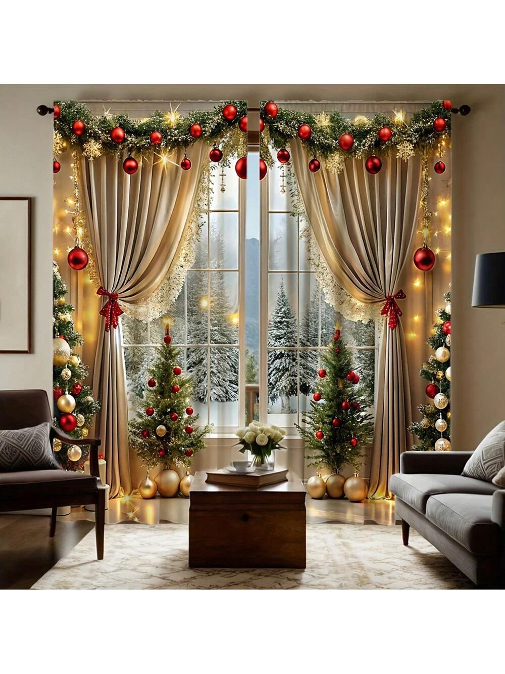 Trasforma i tuoi spazi in un'atmosfera natalizia incantevole con questo esclusivo set di 2 tende di lusso.