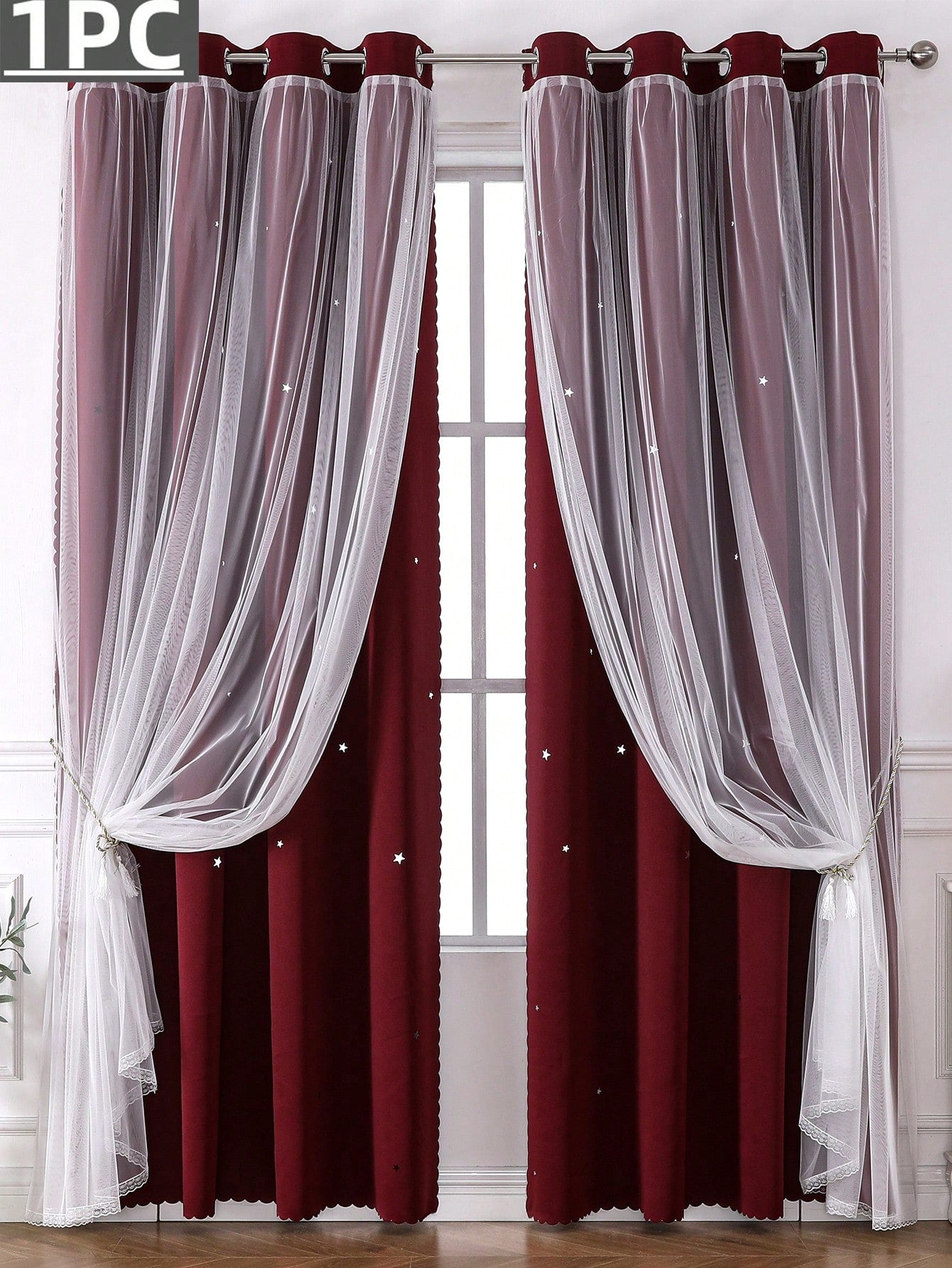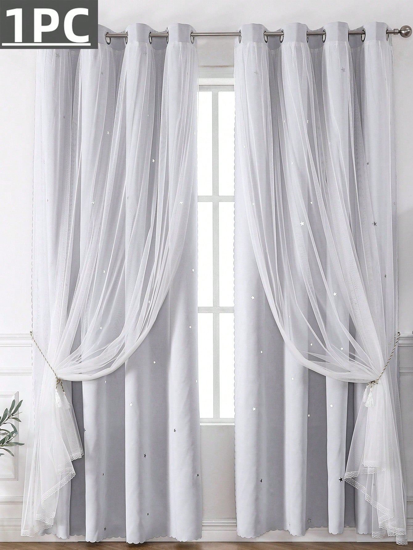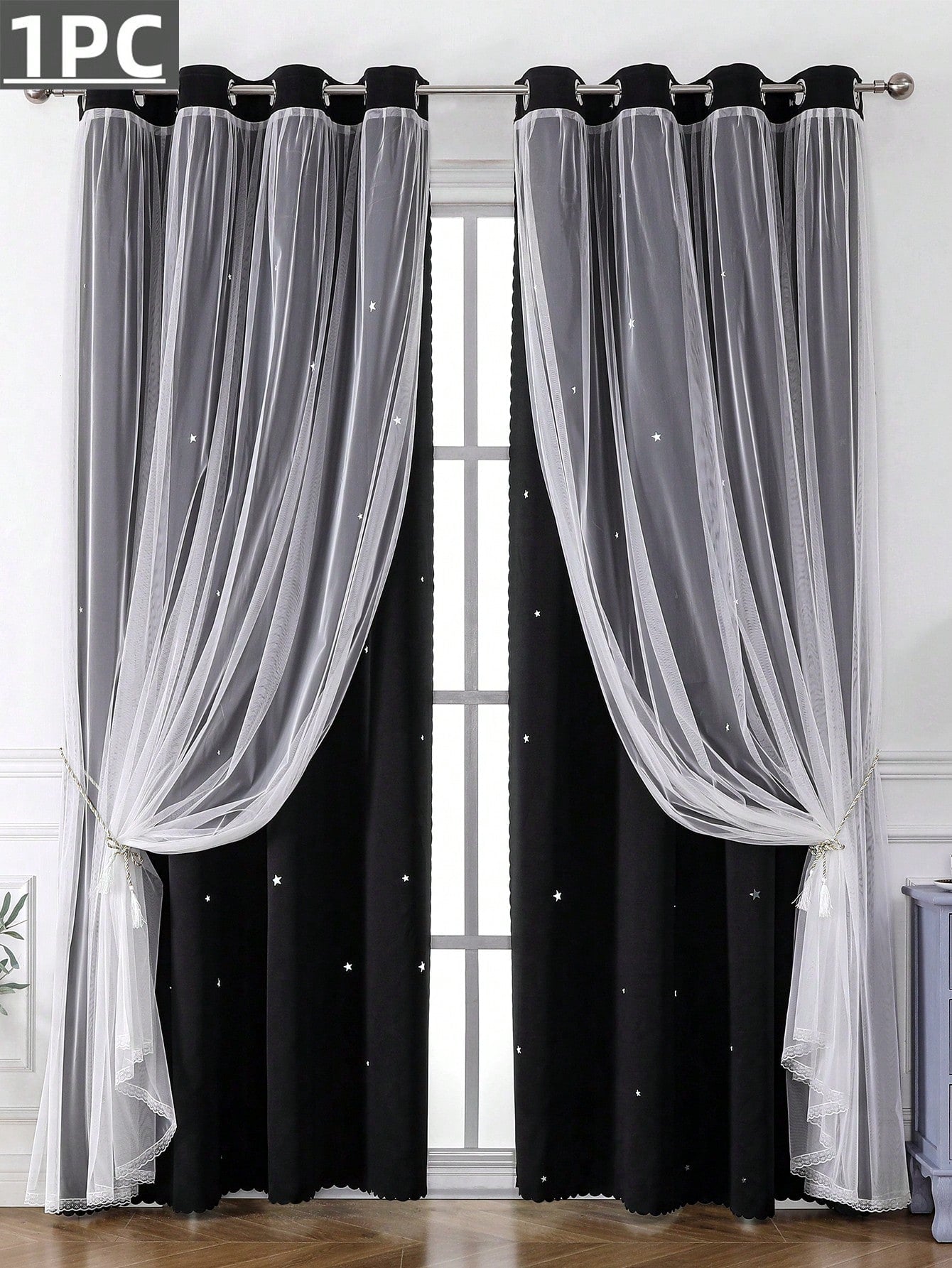 Tenda Nera Da 1 Pezzo Con Motivo Stellato, Adatta Per Soggiorno E Camera Da Letto