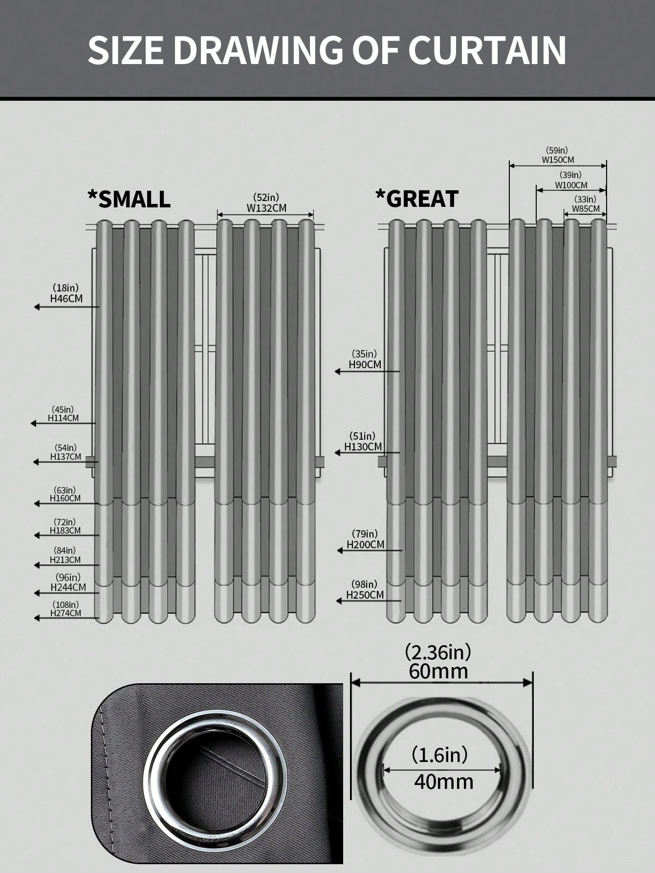 | 132*160(2 Pannelli) | 130-135 | 158-163 |
