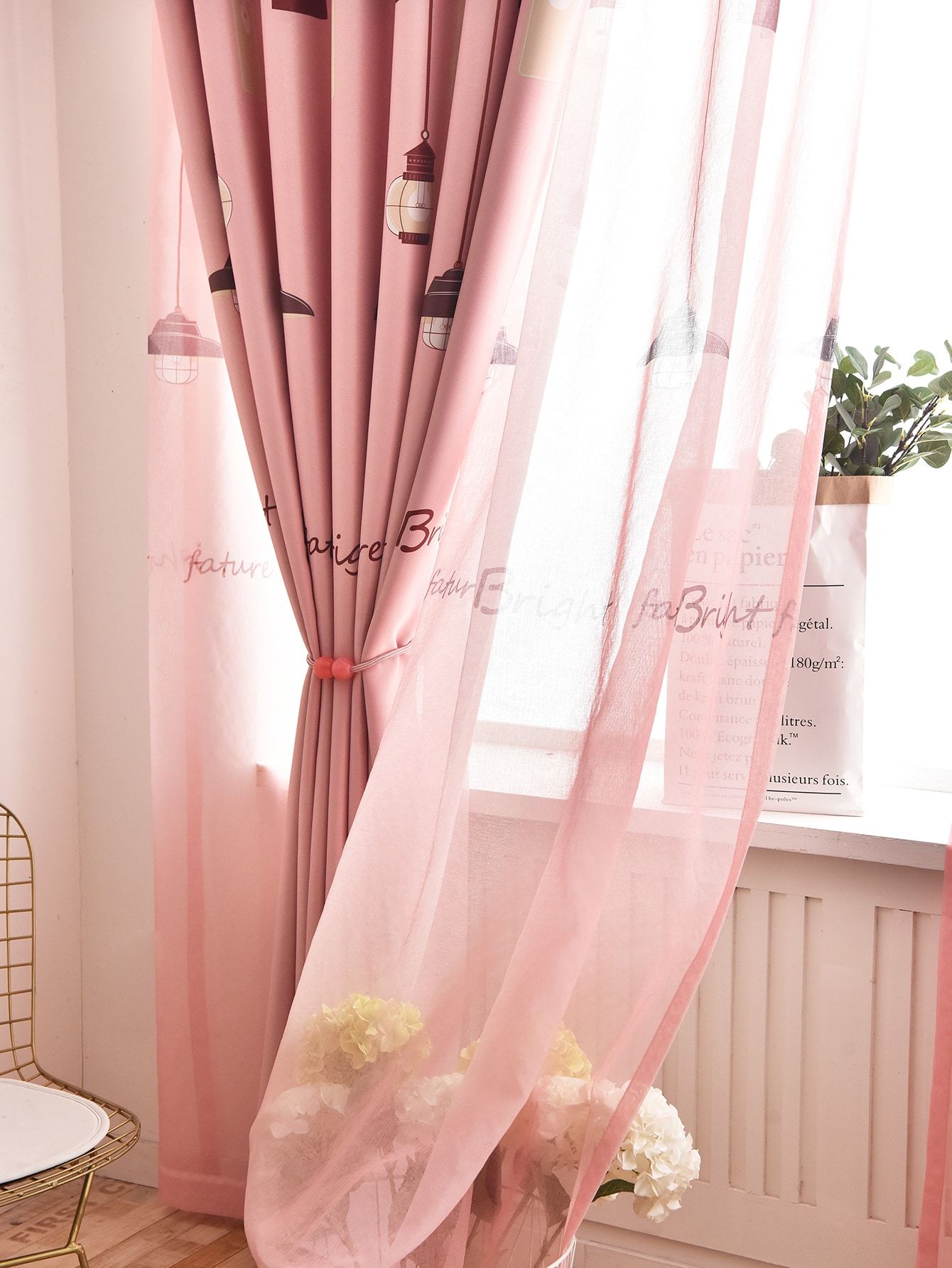 Tessuto: Poliestere Tende Oscuranti: Sì Composizione: 100% Poliestere Tipo di motivo: Grafico Colore: Rosa Tipo: Tende Metodo Di Sospensione Per Tende: Top Gommino