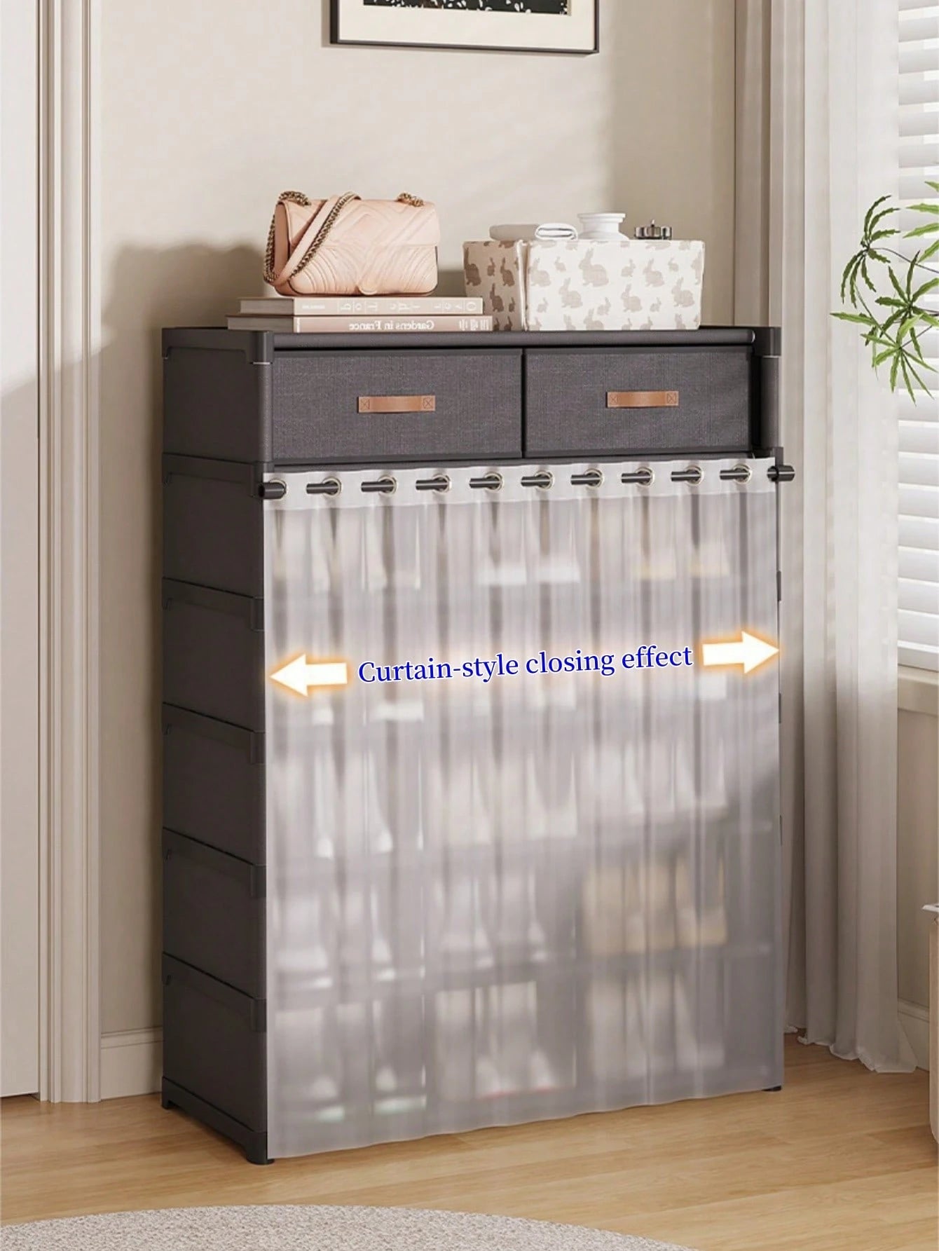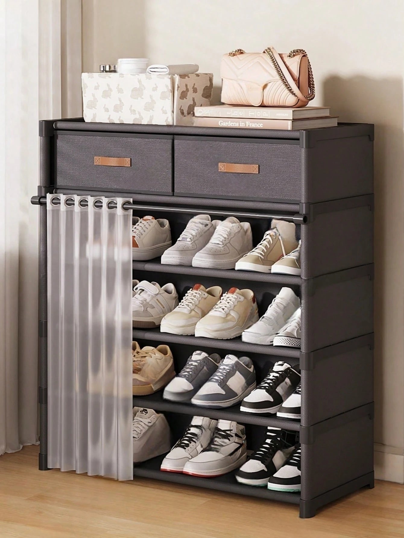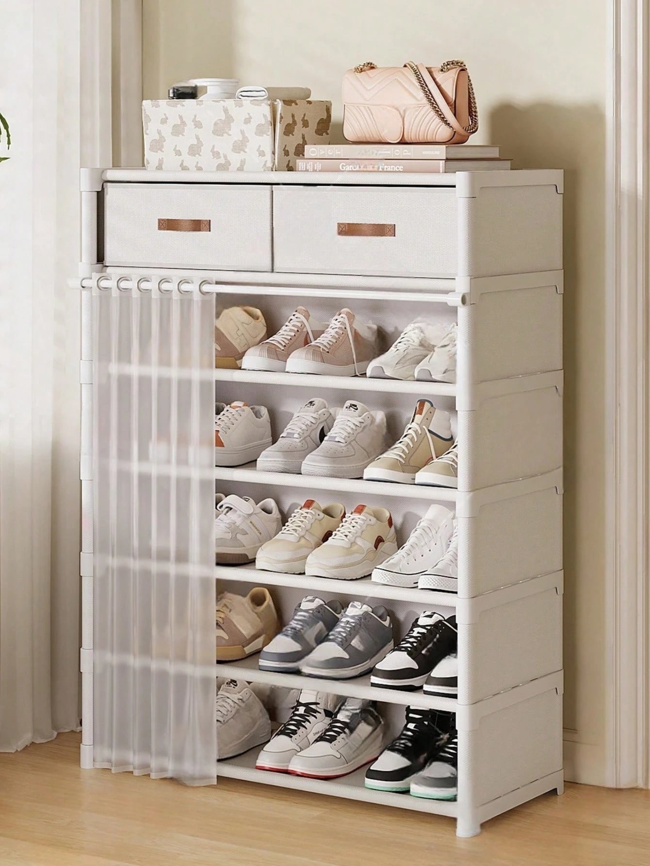 Organizzatore multistrato per scarpe con design funzionale e versatile. Dotato di cassetti scorrevoli e tende protettive, offre ampia capacità di stoccaggio mantenendo le scarpe ordinate e al riparo dalla polvere.  La struttura robusta lo rende ideale per ingressi, camere da letto e spazi comuni, sia in ambienti interni che esterni....