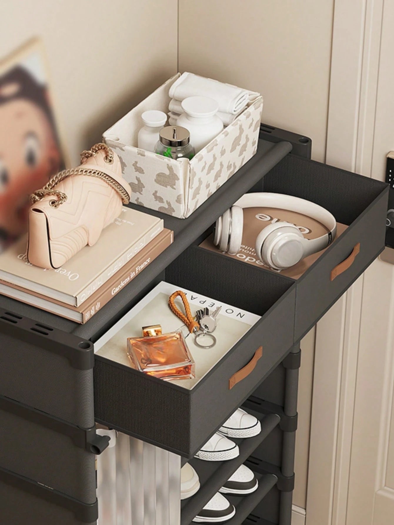 Dotato di cassetti scorrevoli e tende protettive, offre ampia capacità di stoccaggio mantenendo le scarpe ordinate e al riparo dalla polvere.