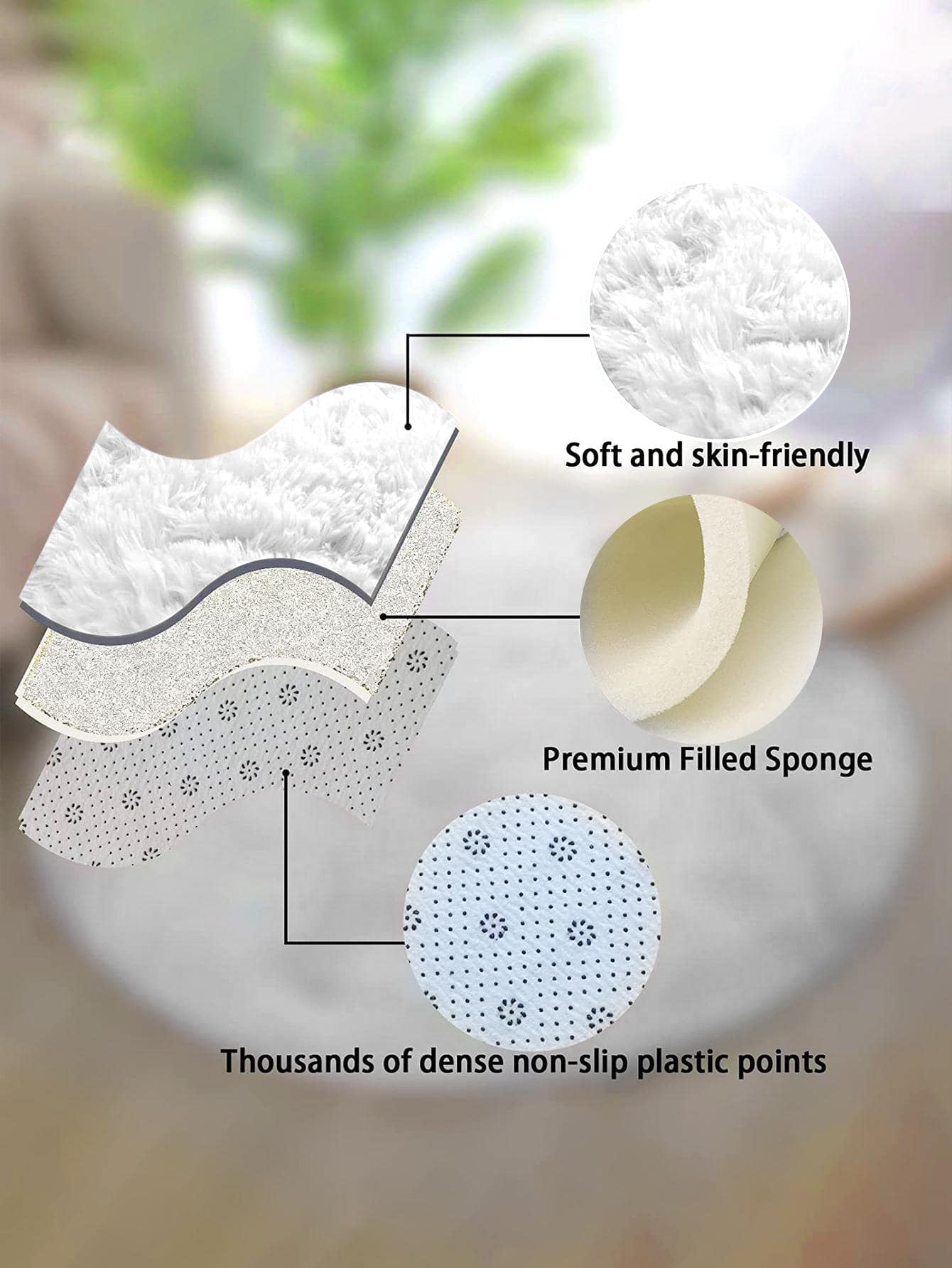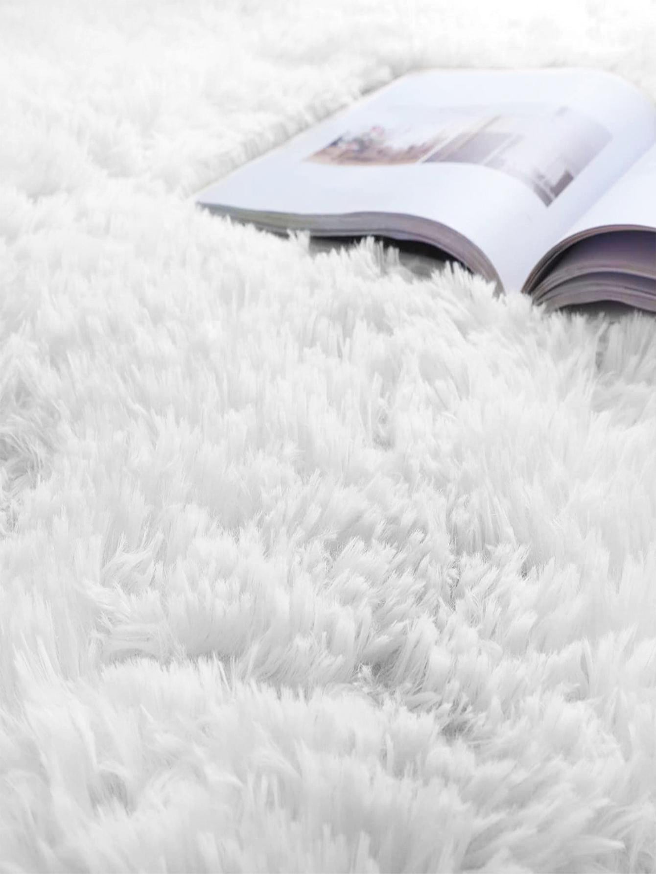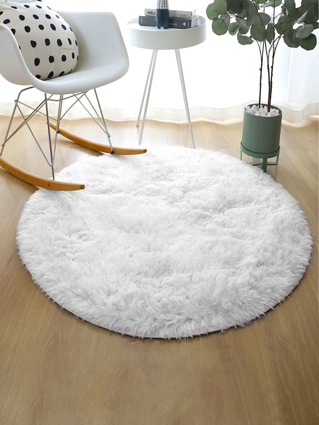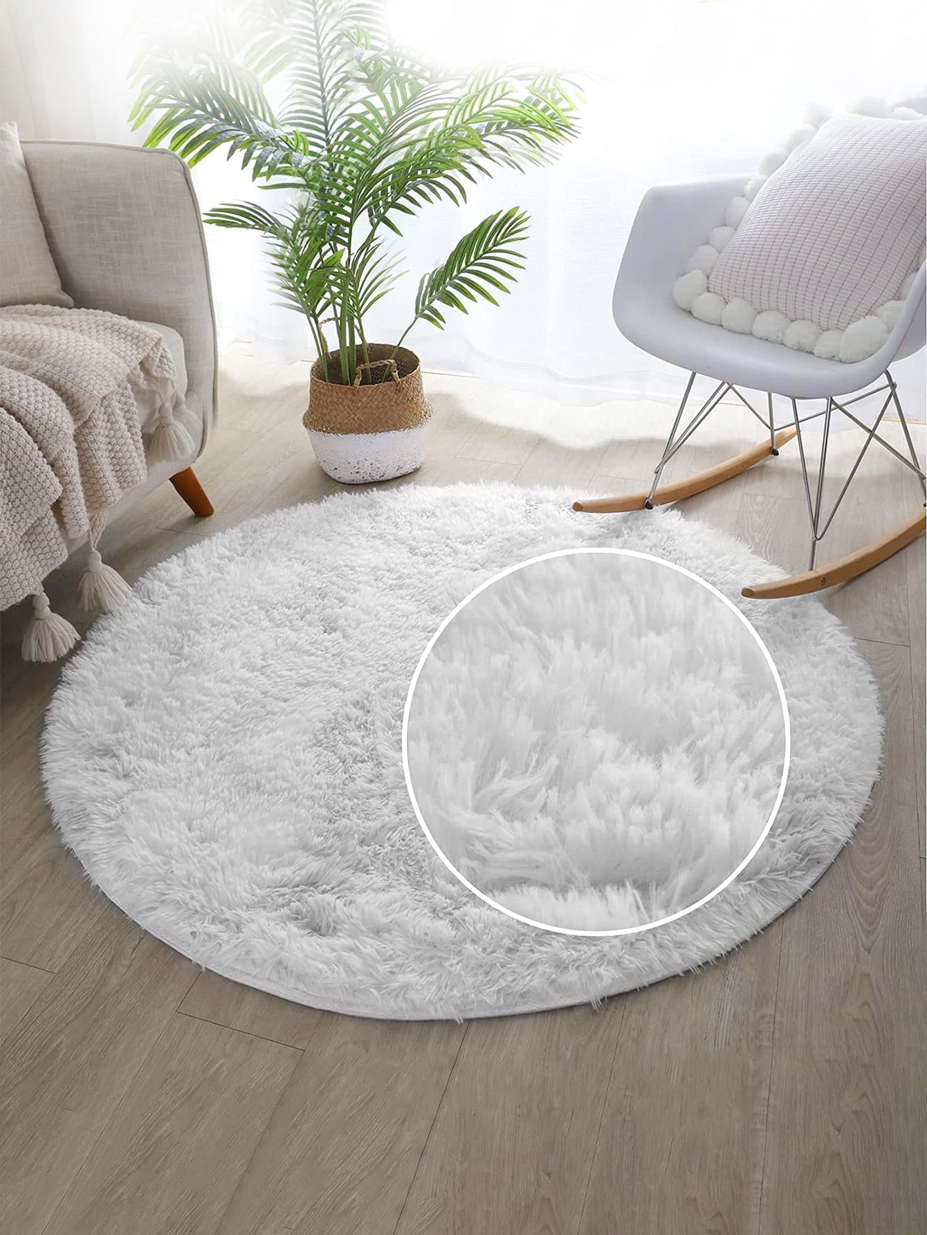 Tappeto rotondo con pelo lungo di 1,4 pollici, tappeto in pile di peluche corallo bianco solido