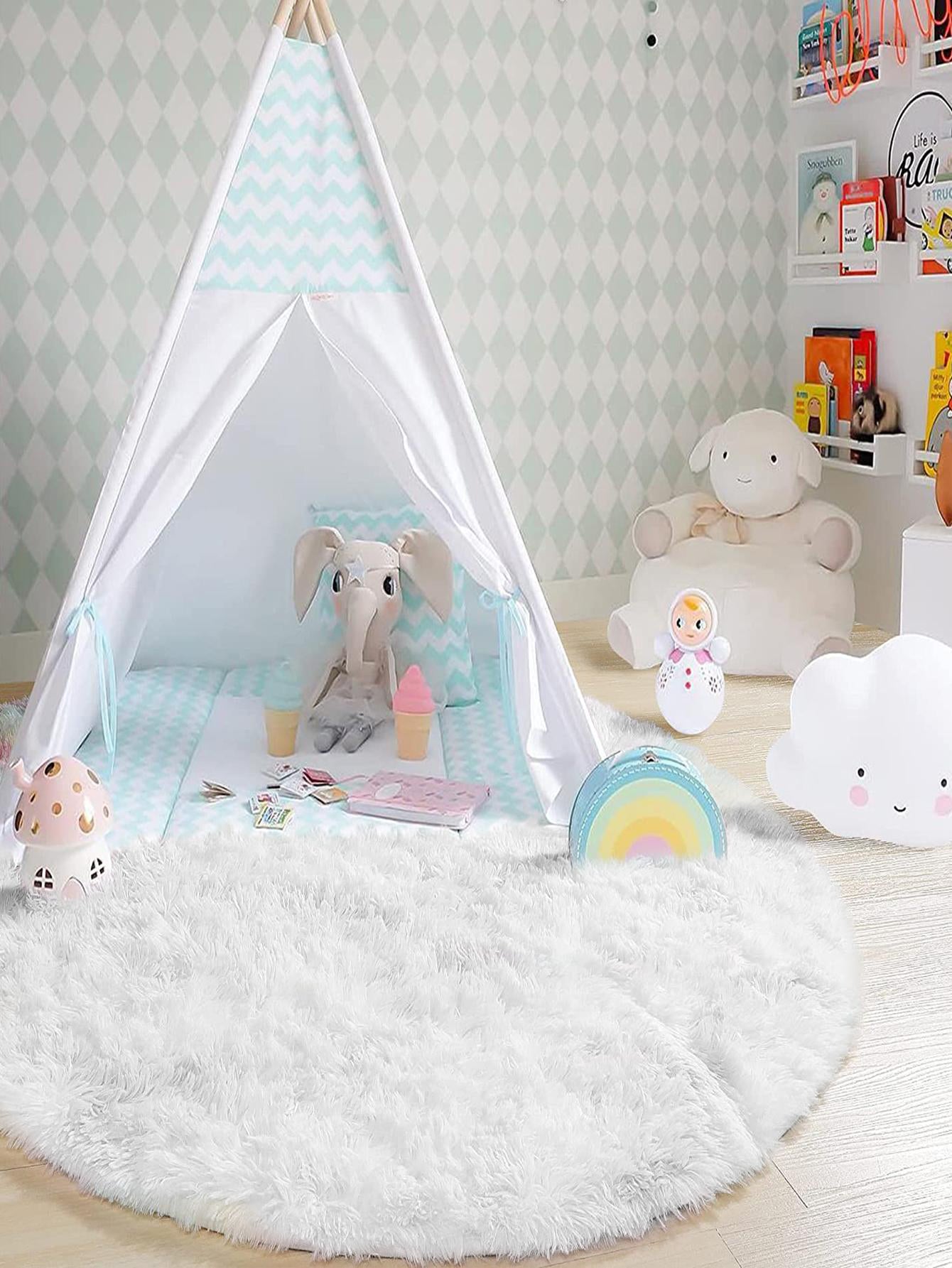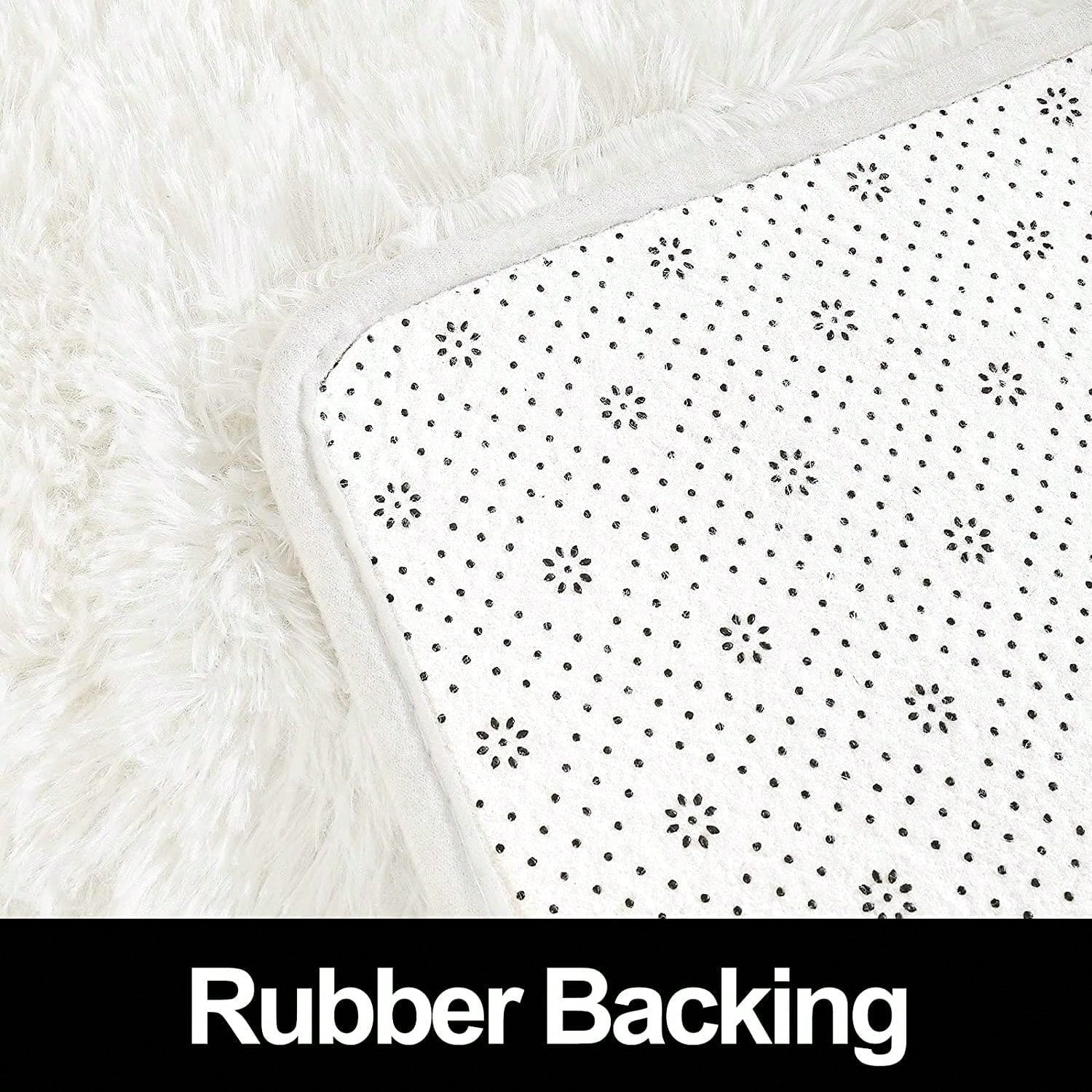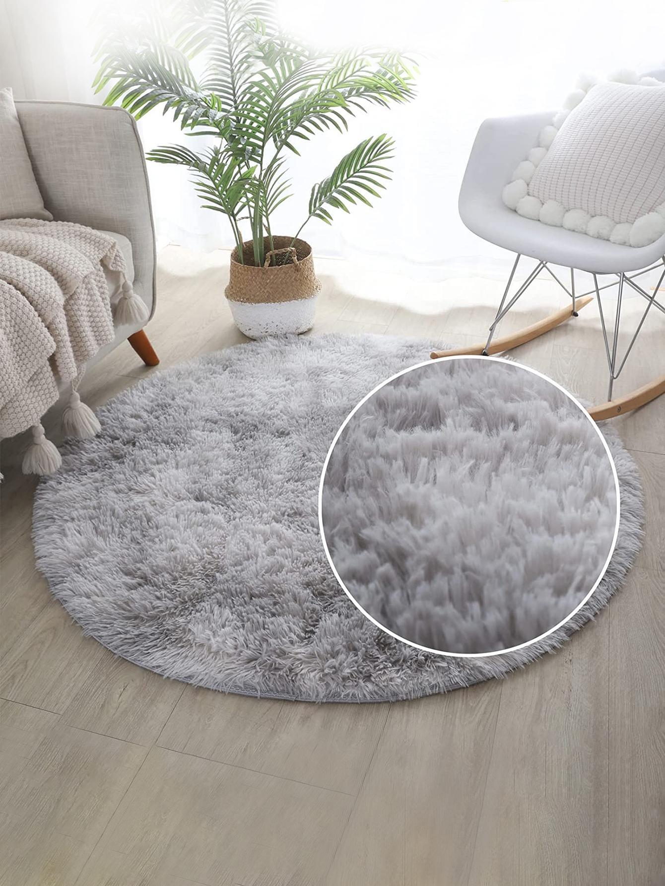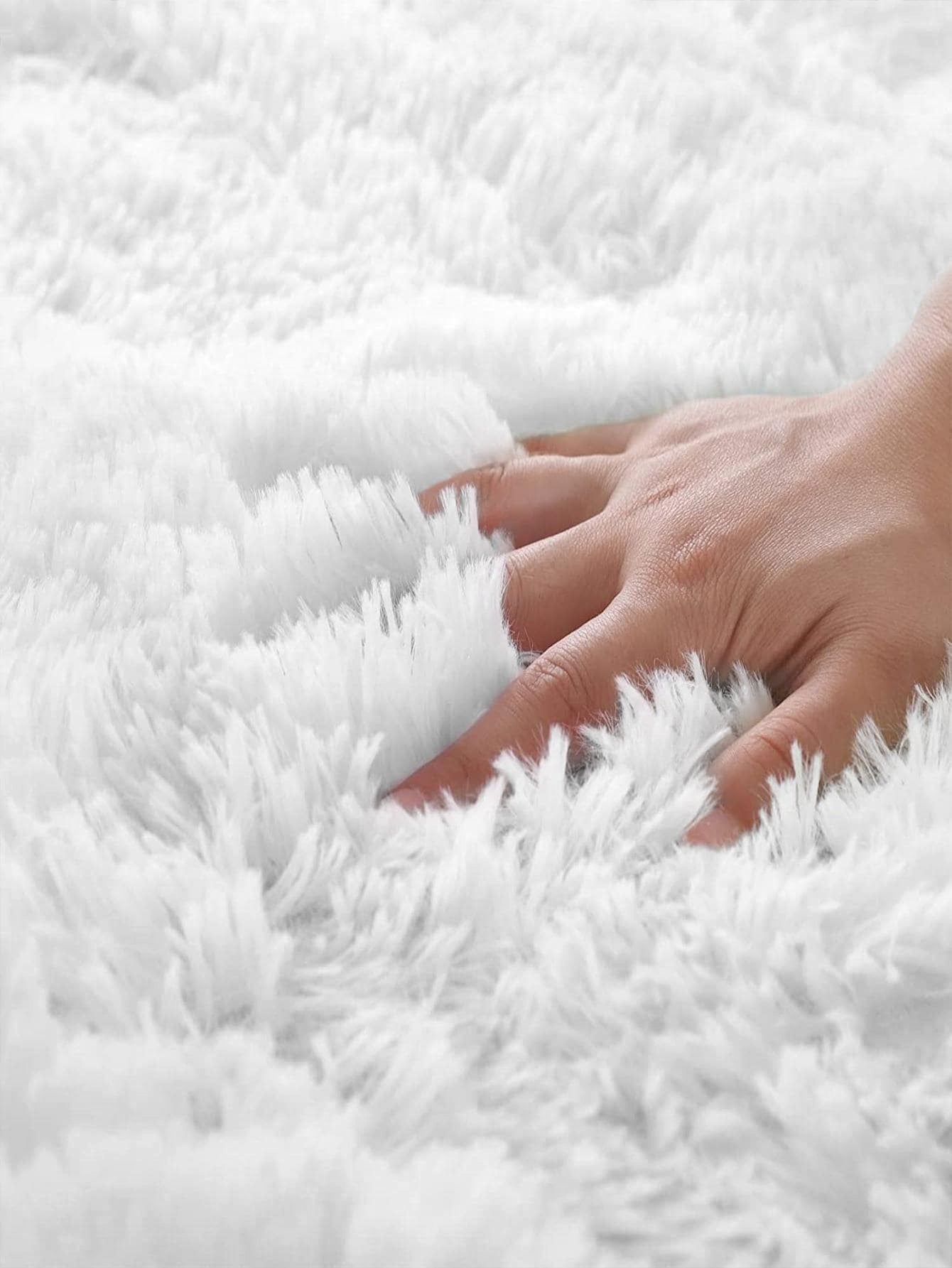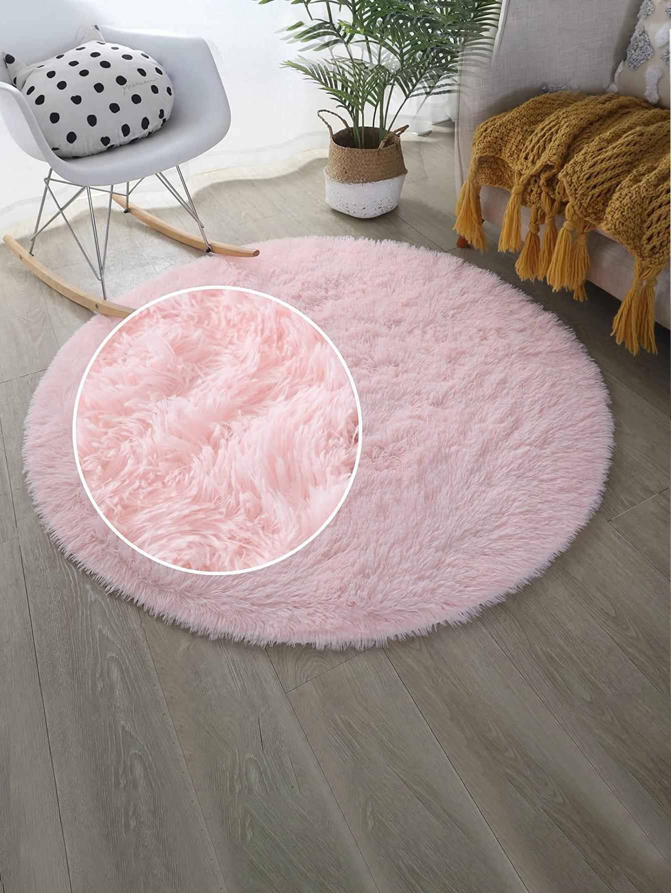 Tappeto rotondo con pelo lungo di 1,4 pollici, tappeto in pile di peluche corallo bianco solido
