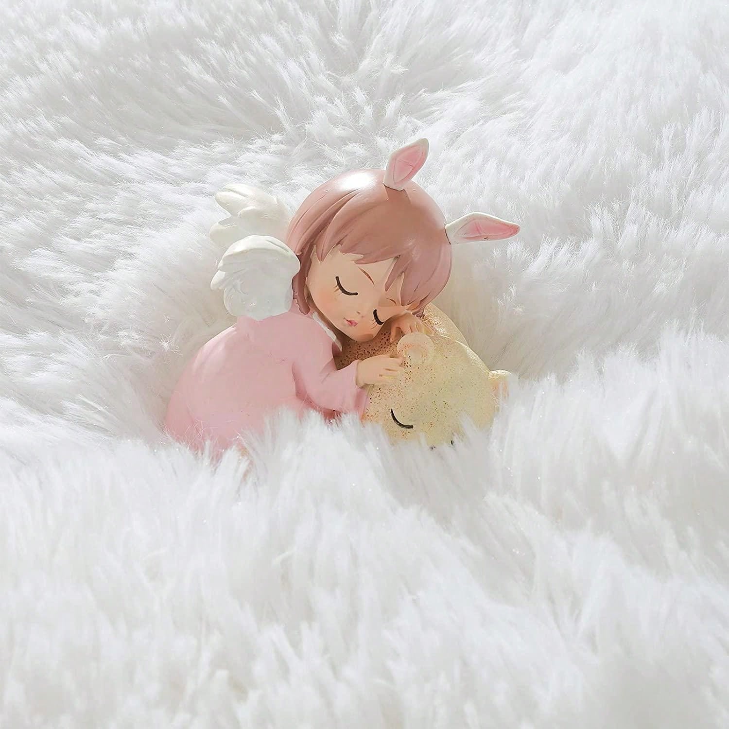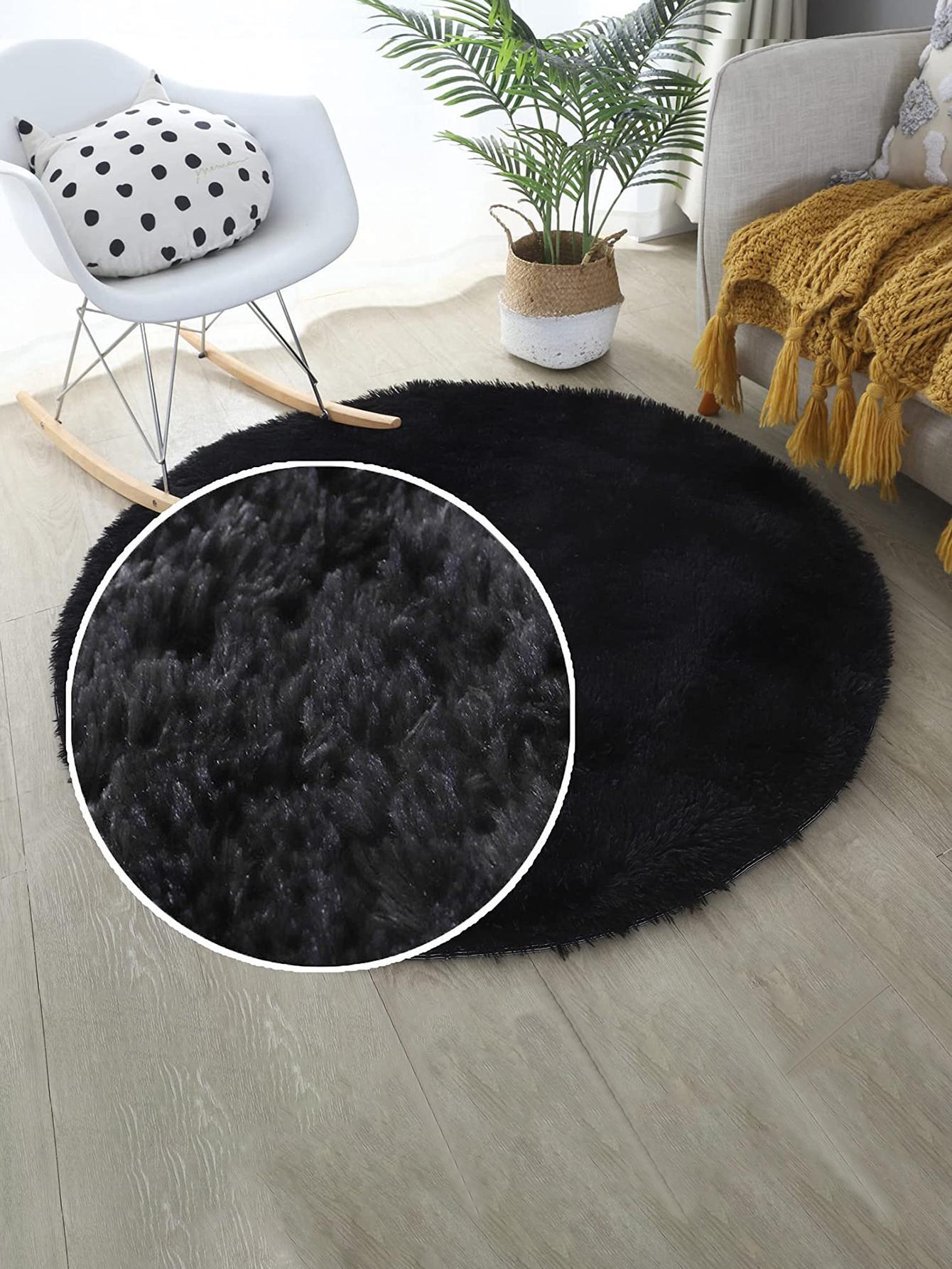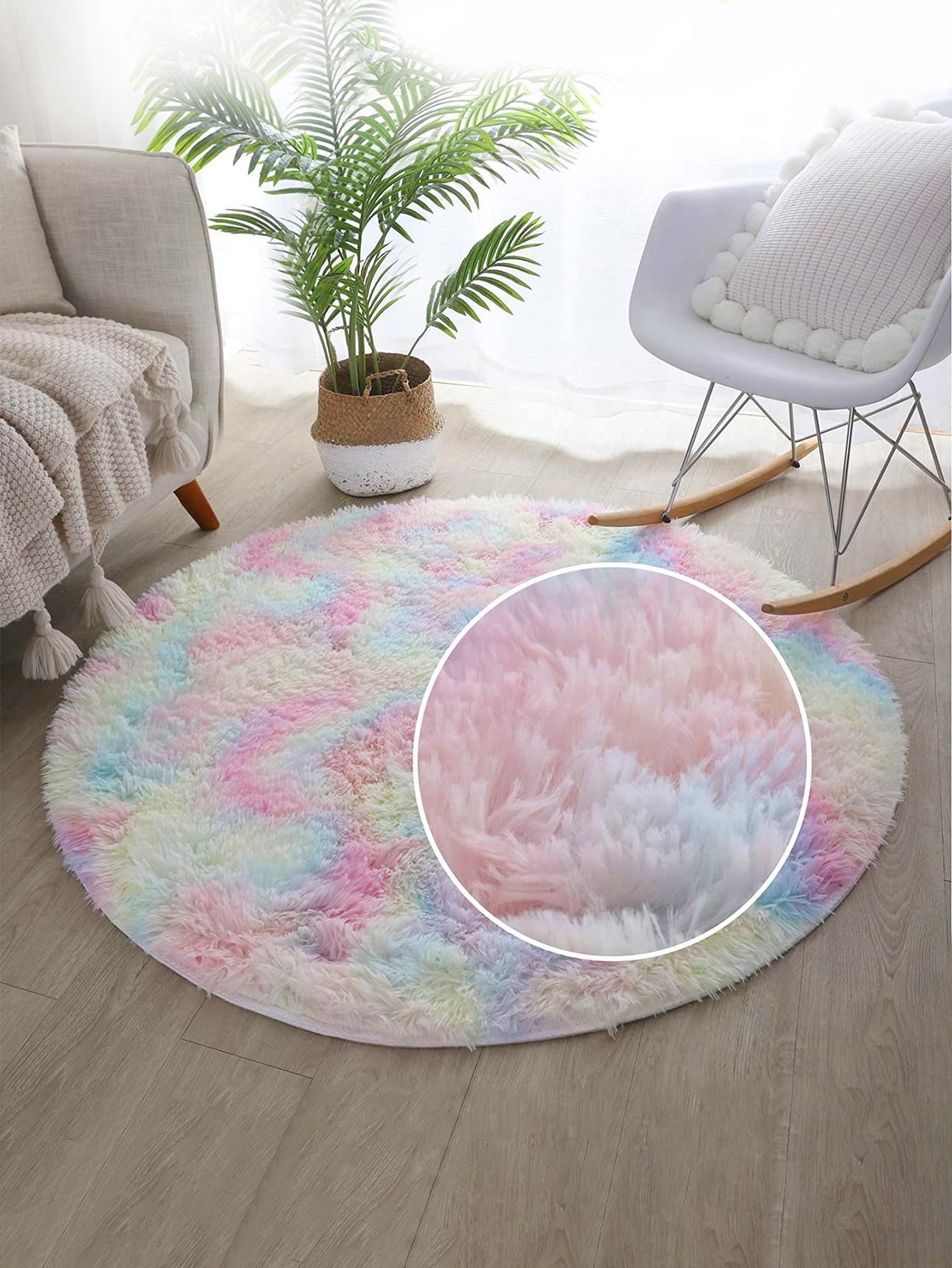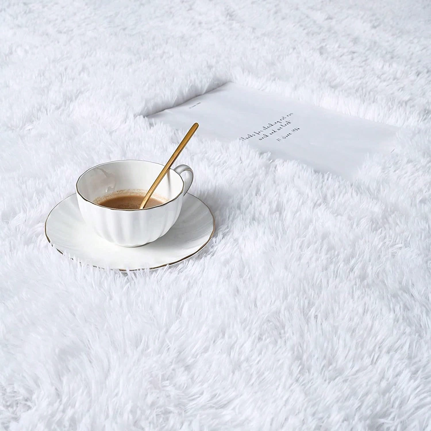 Tappeto rotondo con pelo lungo di 1,4 pollici, tappeto in pile di peluche corallo bianco solido