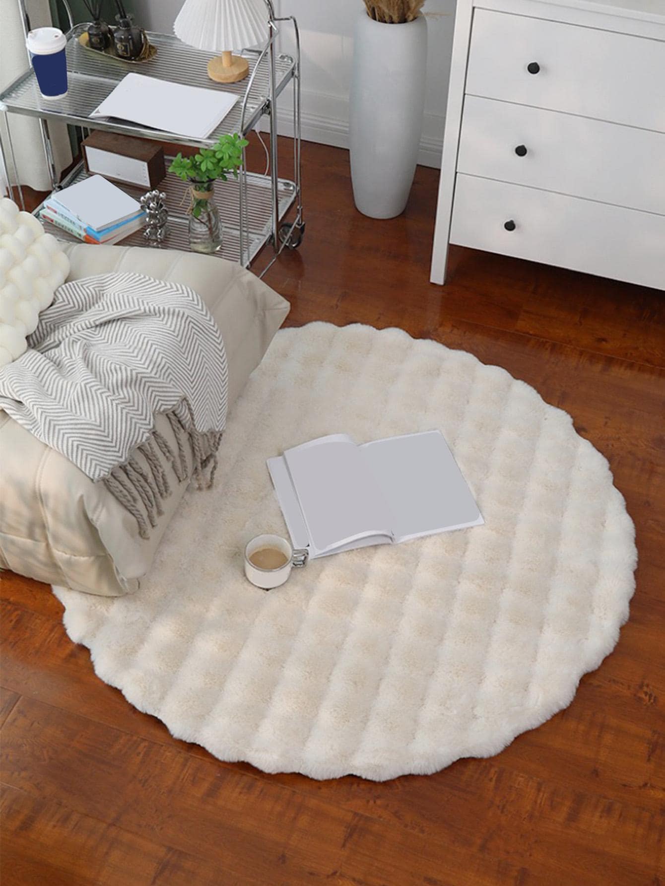 Occasione: Giornaliero Colore: Bianco Forma: Rotondo Tipo: Tappeti Riempimento: Nessun riempimento Istruzioni Lavaggio: Lavaggio a mano o lavaggio a secco professionale Stanza: Soggiorno, Camera da Letto Tessuto: Poliestere Lavabile in lavatrice: Non Tipo di motivo: Colore unico Composizione: 100% Poliestere Misure del prodotto in cm : Misure Larghezza Lunghezza 40*40...