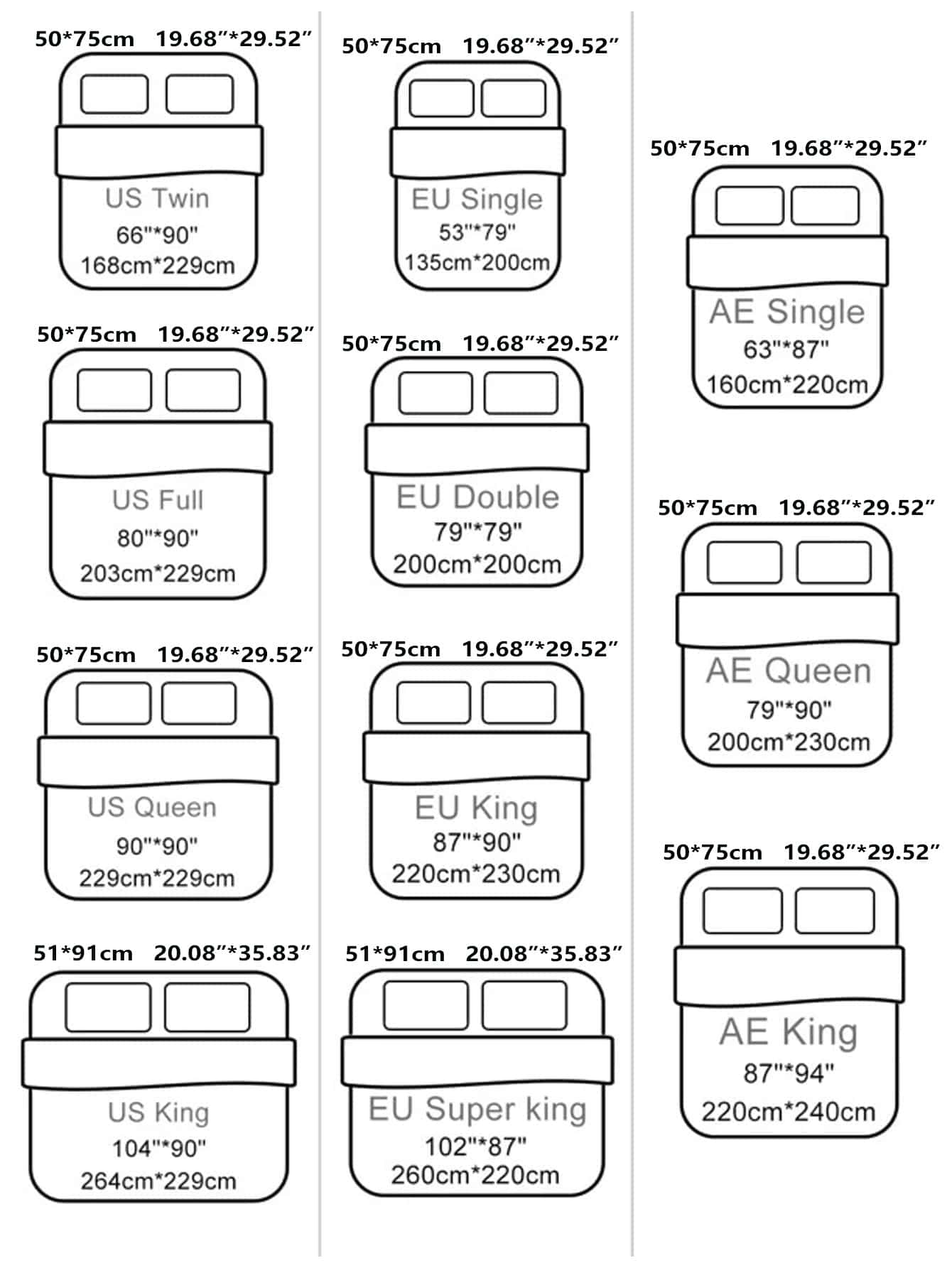 | Misure | Dimensione della fodera del cuscino | Larghezza | Lunghezza |
