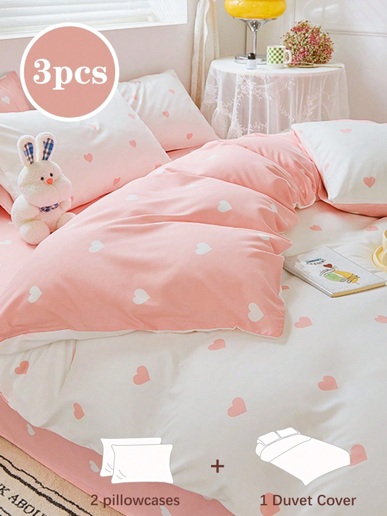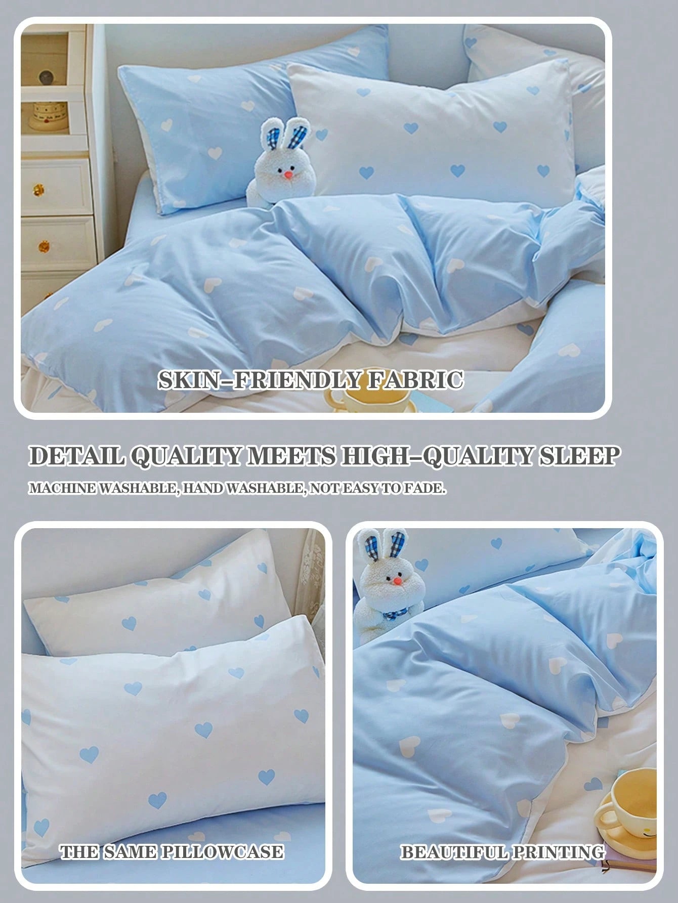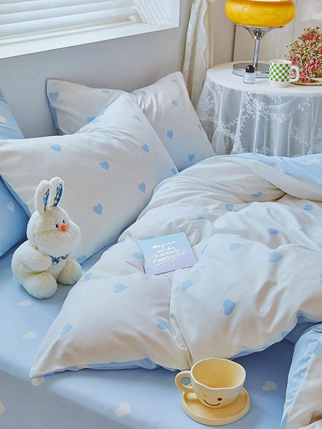 Set copripiumino con stampa a cuore fresca e calda, adatto per studenti,