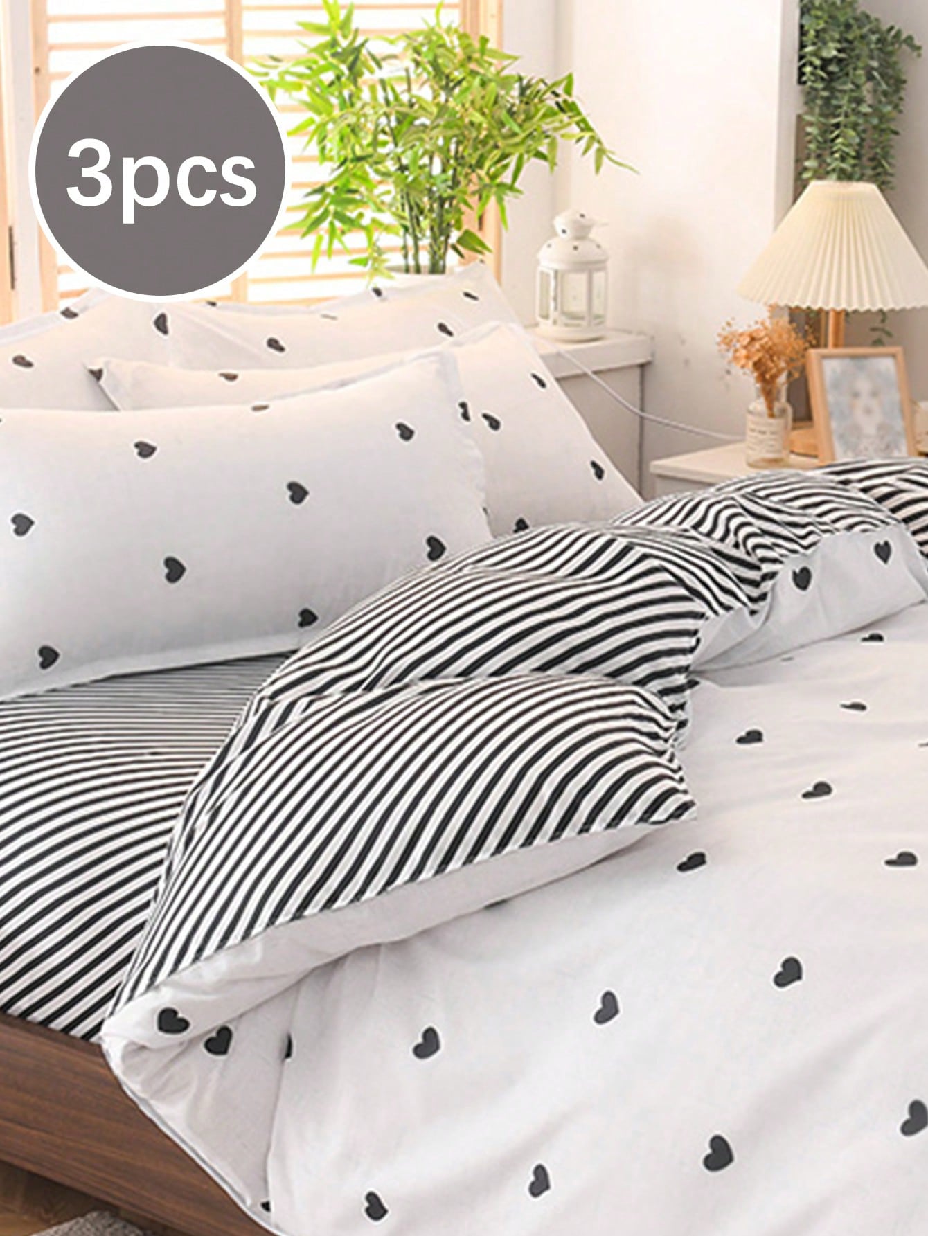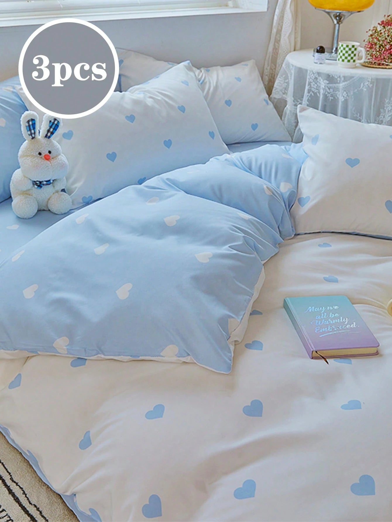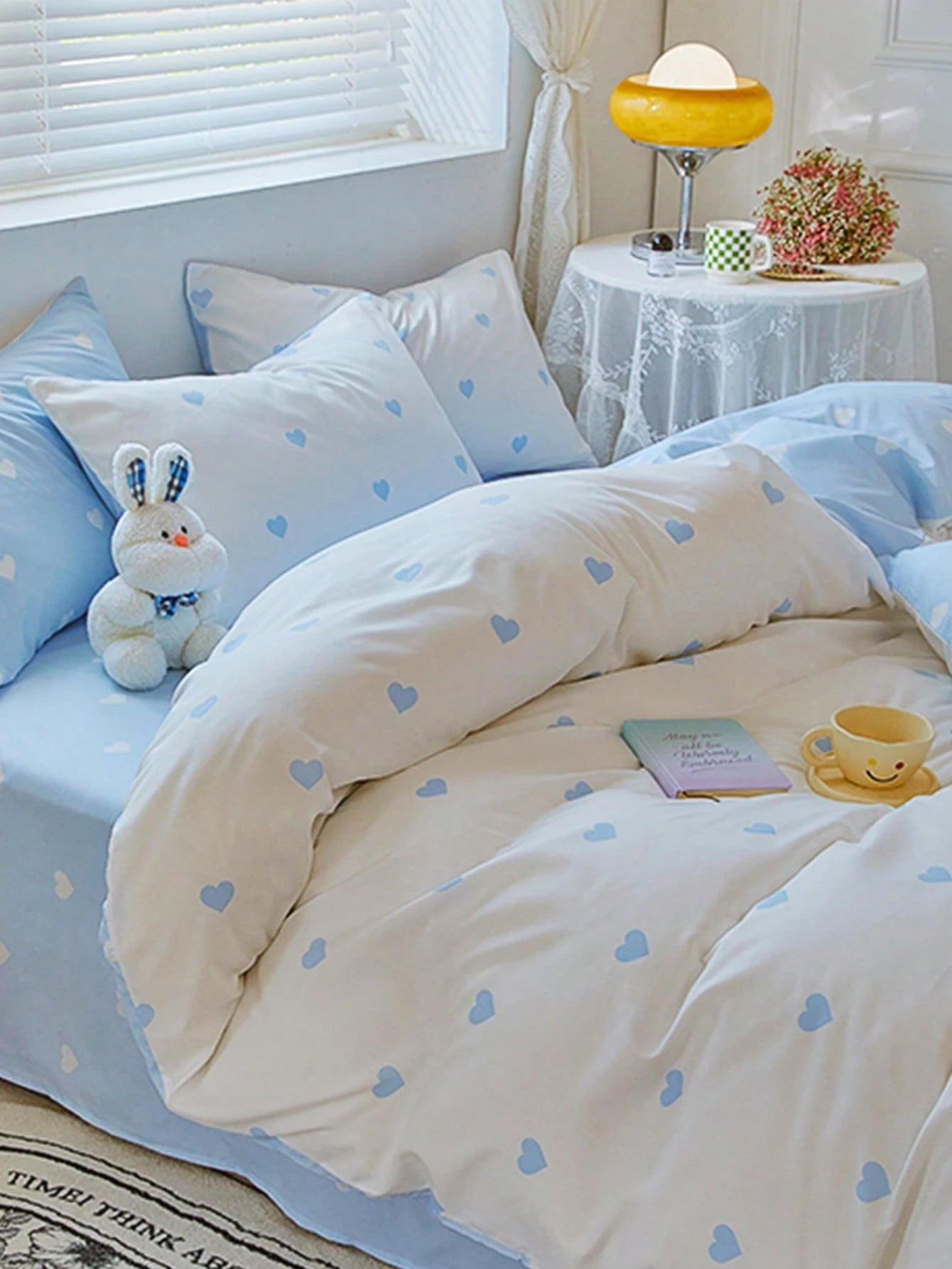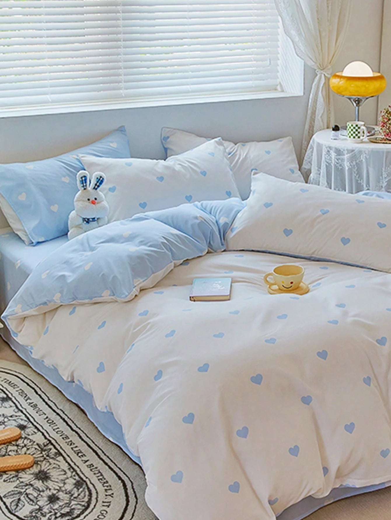 Set copripiumino con stampa a cuore fresca e calda, adatto per studenti,
