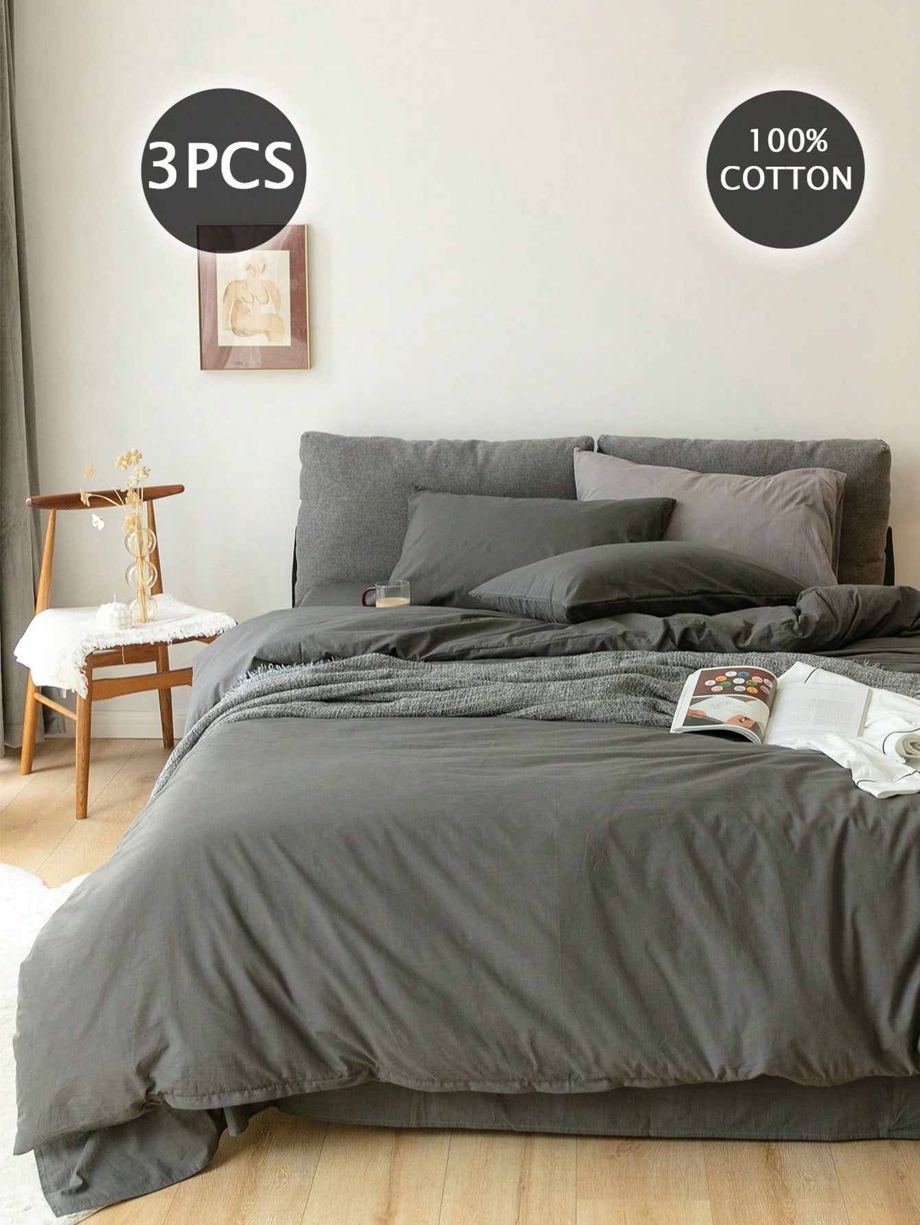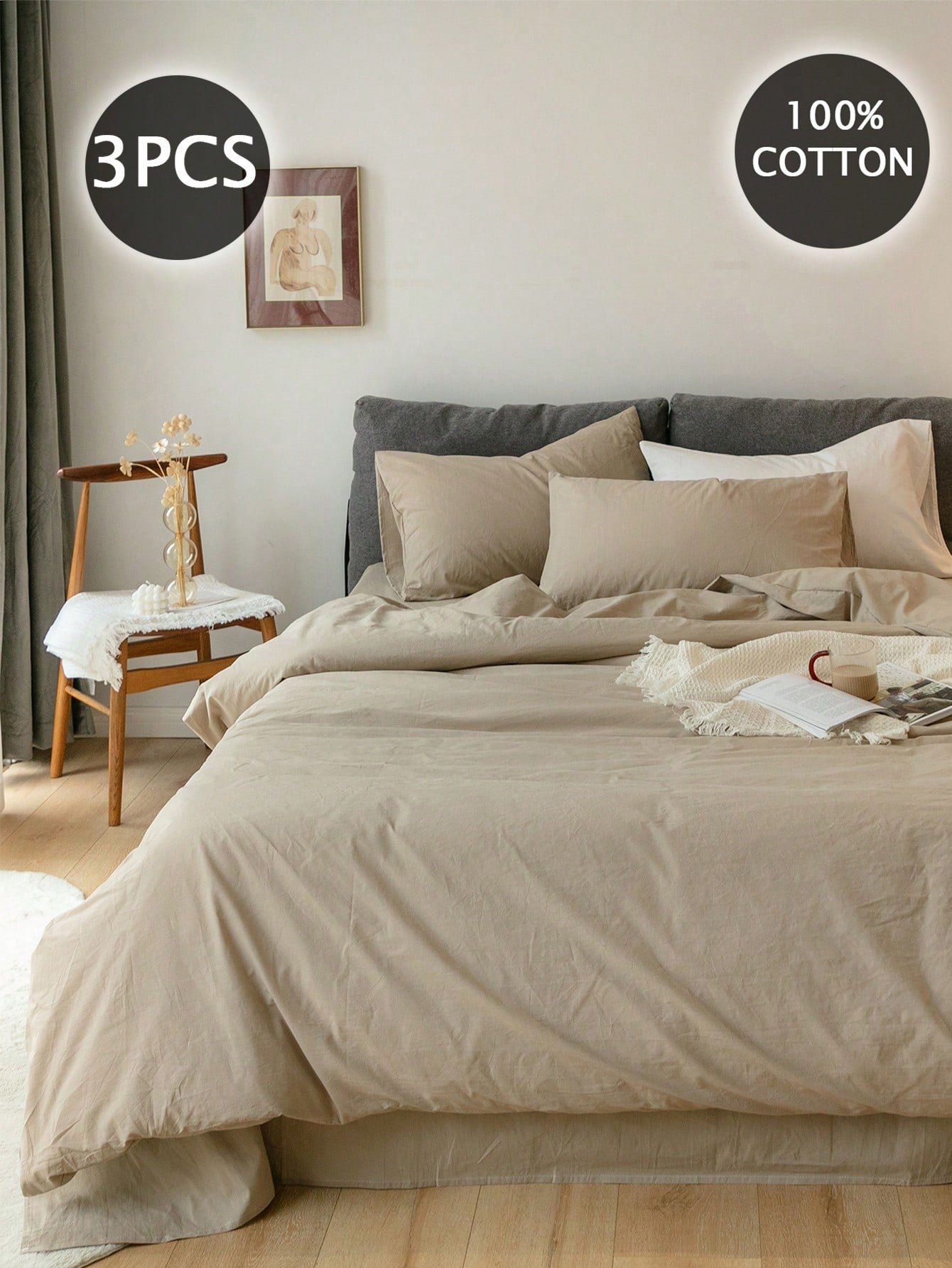 Set copripiumino con texture simile al lino (1*Copripiumino +2*Federe, senza imbottitura