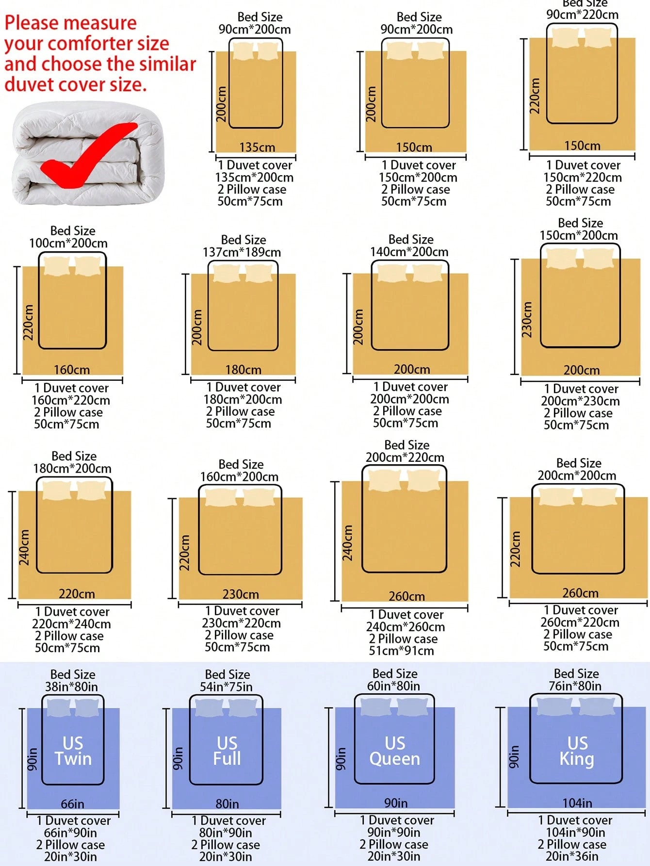 | 200cm*230cm | 50*75*2 | 50 | 75 |