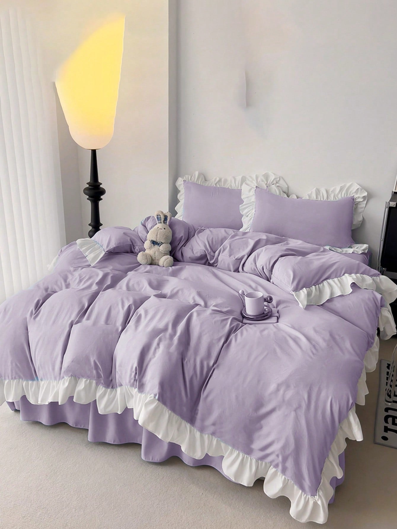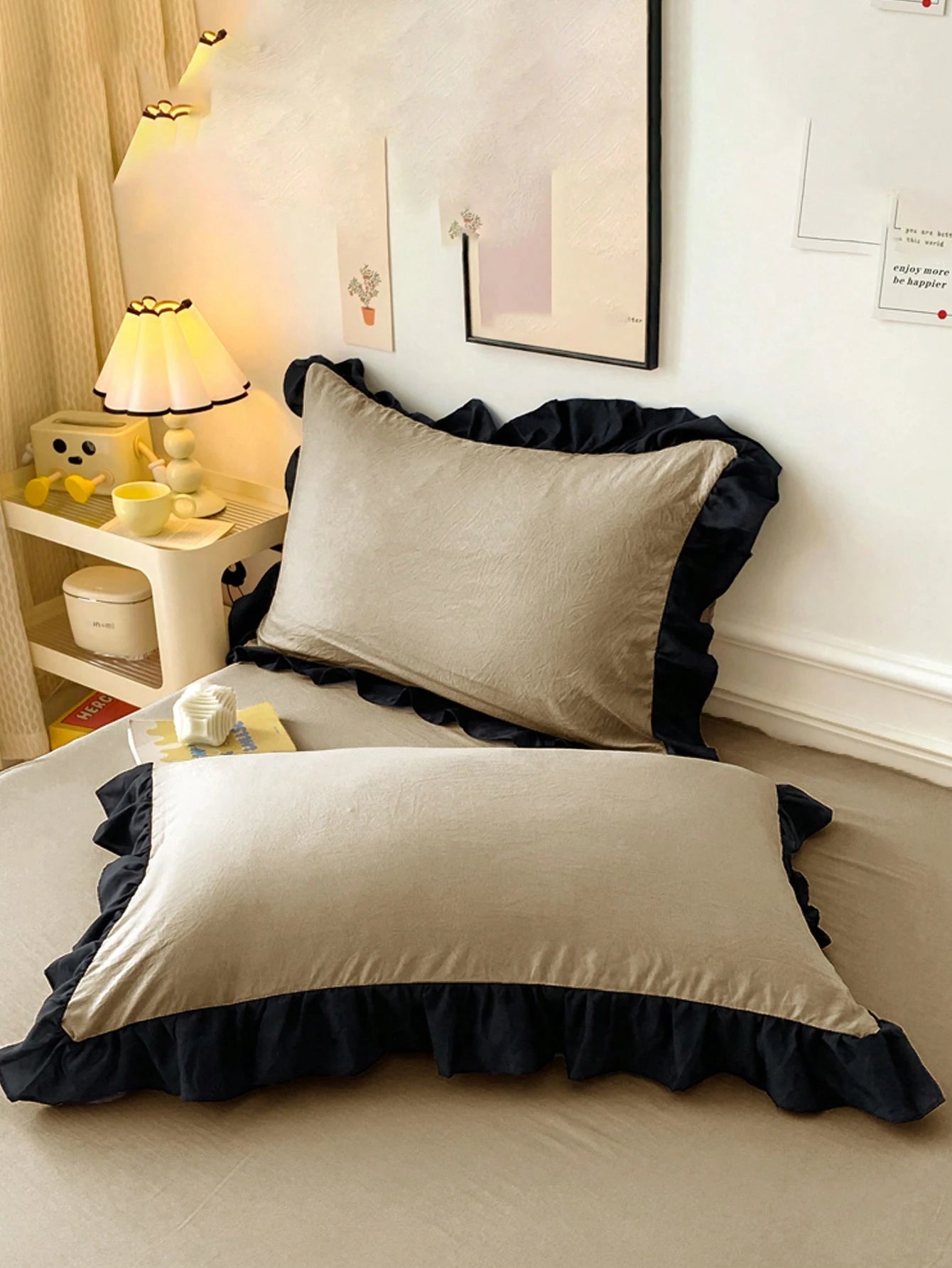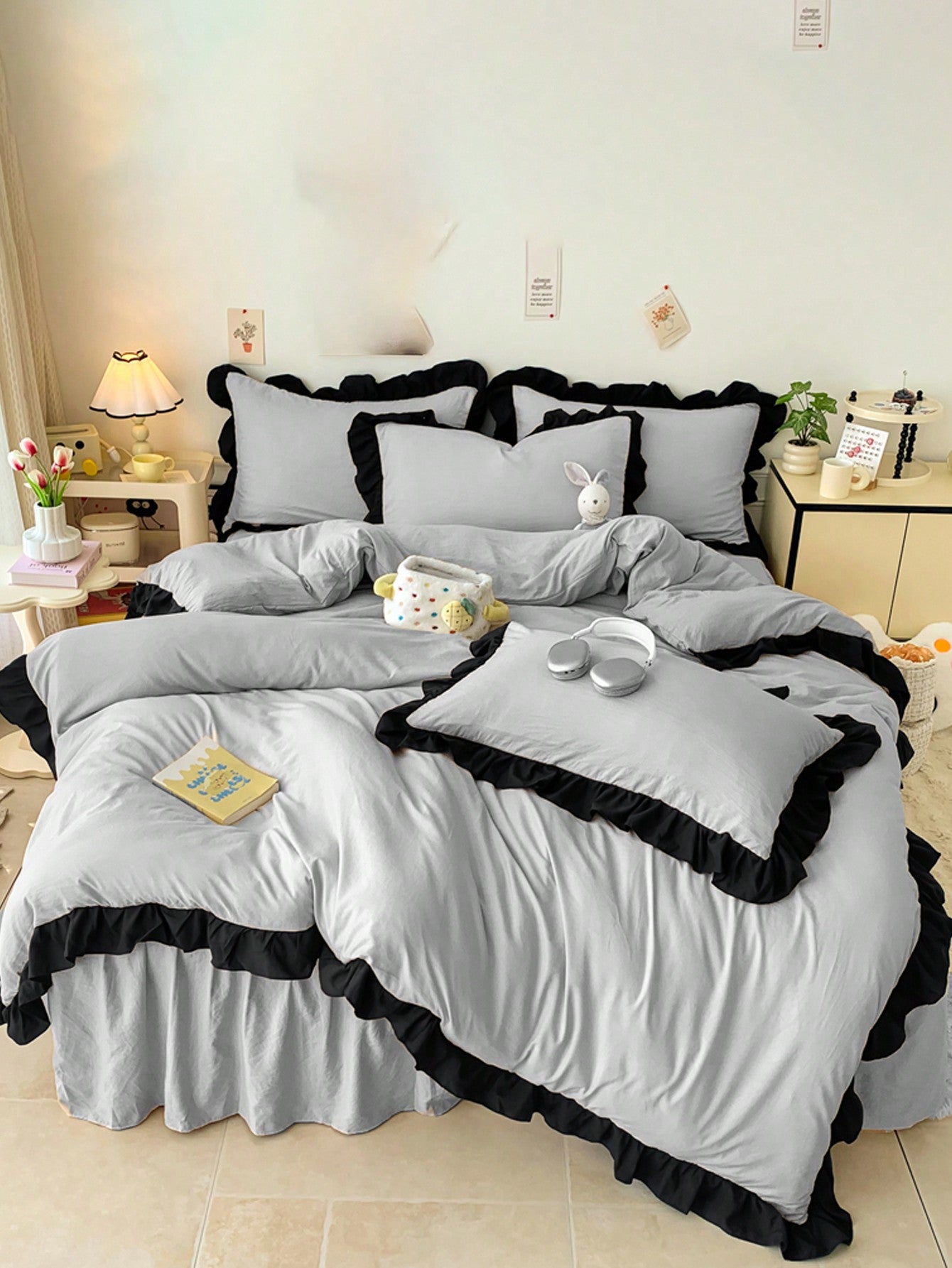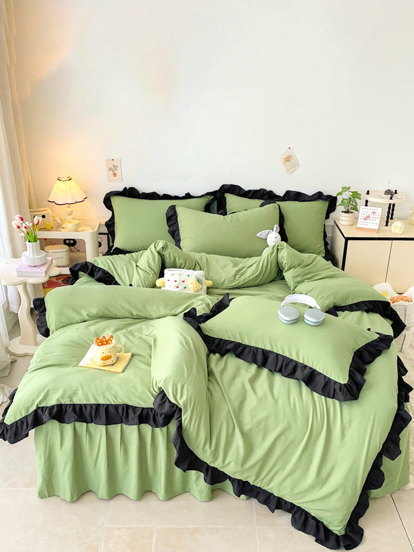 Set di biancheria da letto in tinta caffè scuro con volant, morbido e confortevole