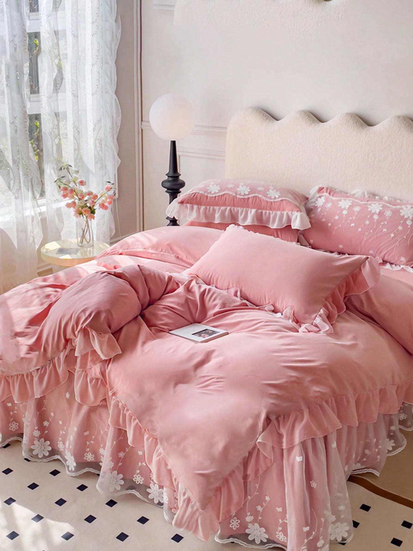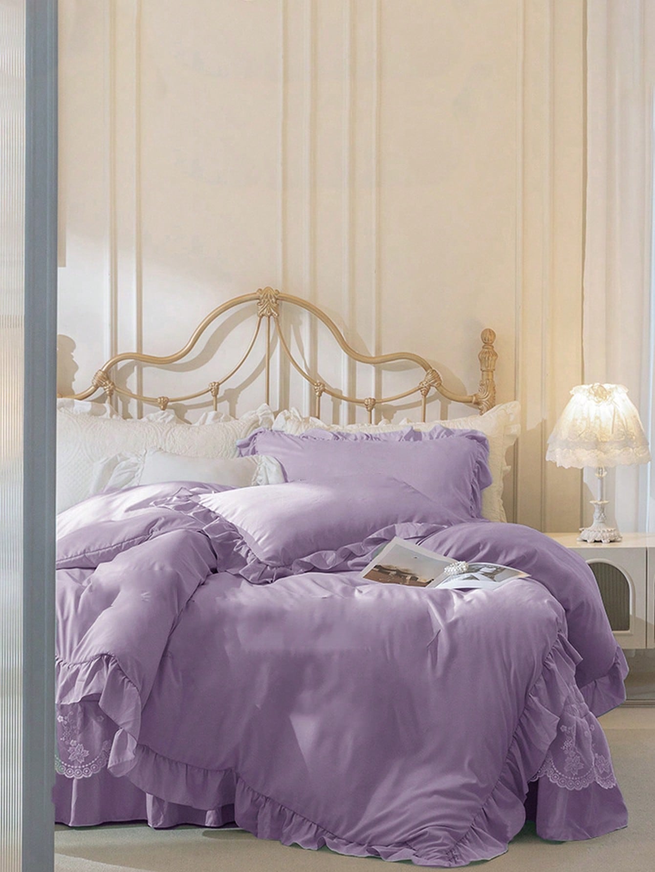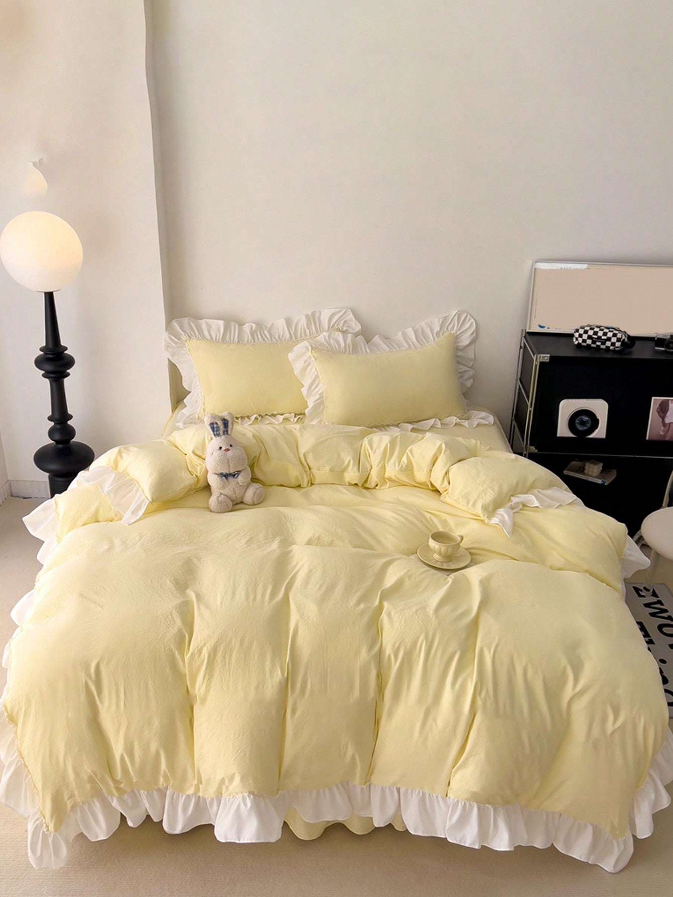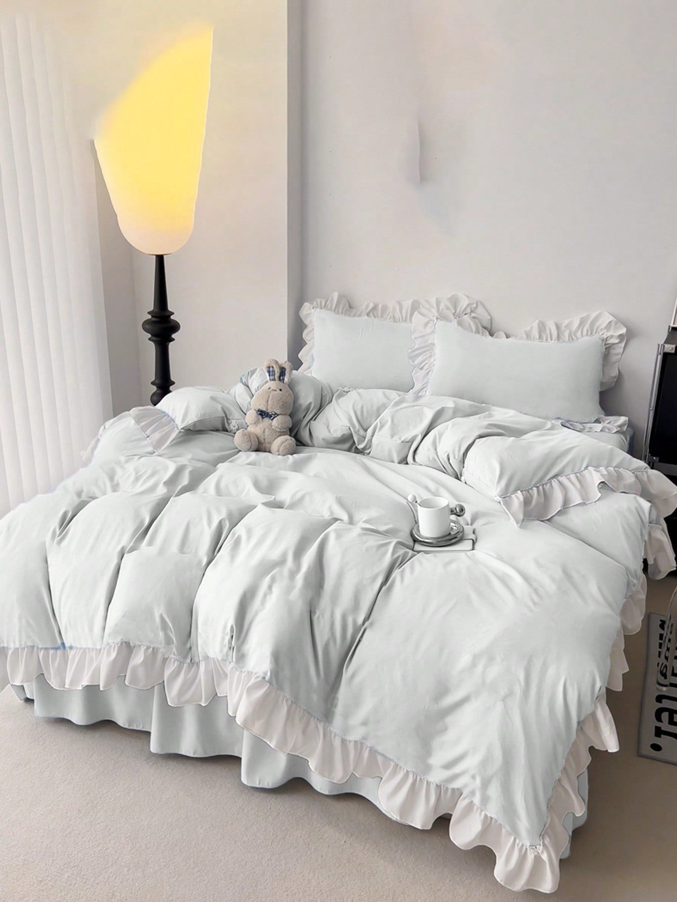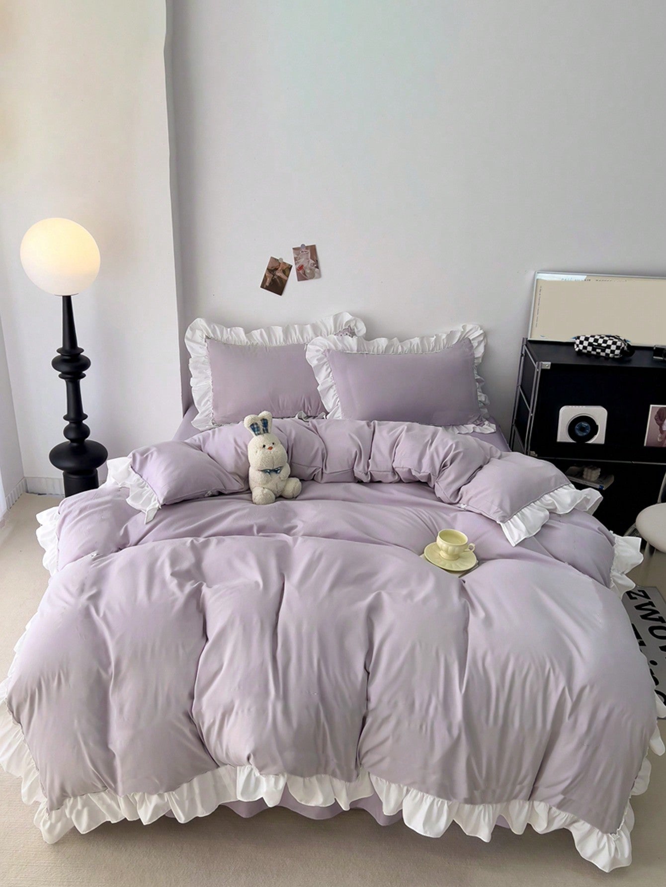 Set di biancheria da letto in tinta caffè scuro con volant, morbido e confortevole