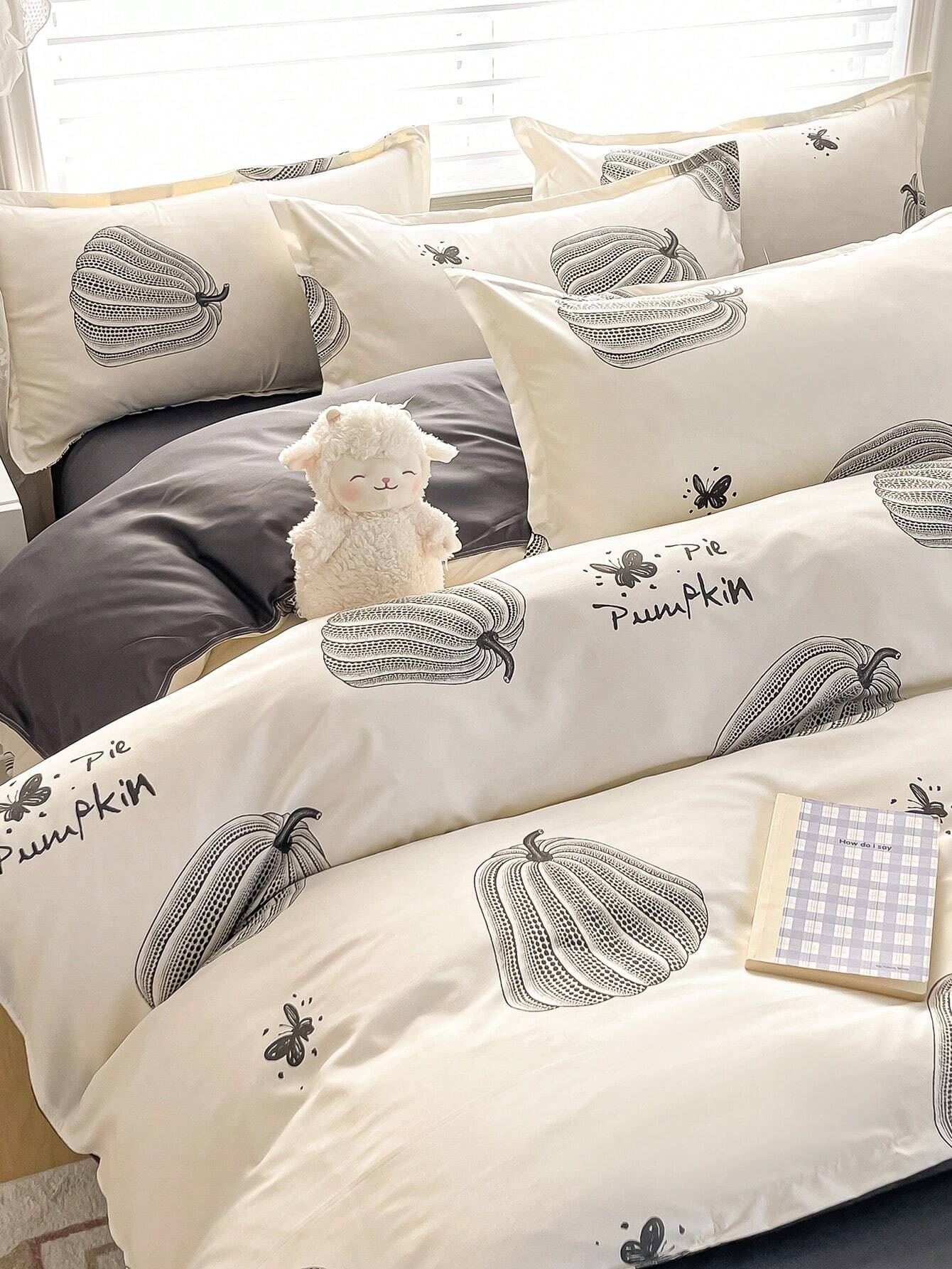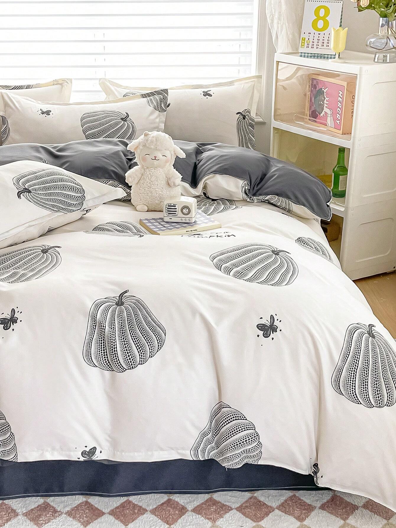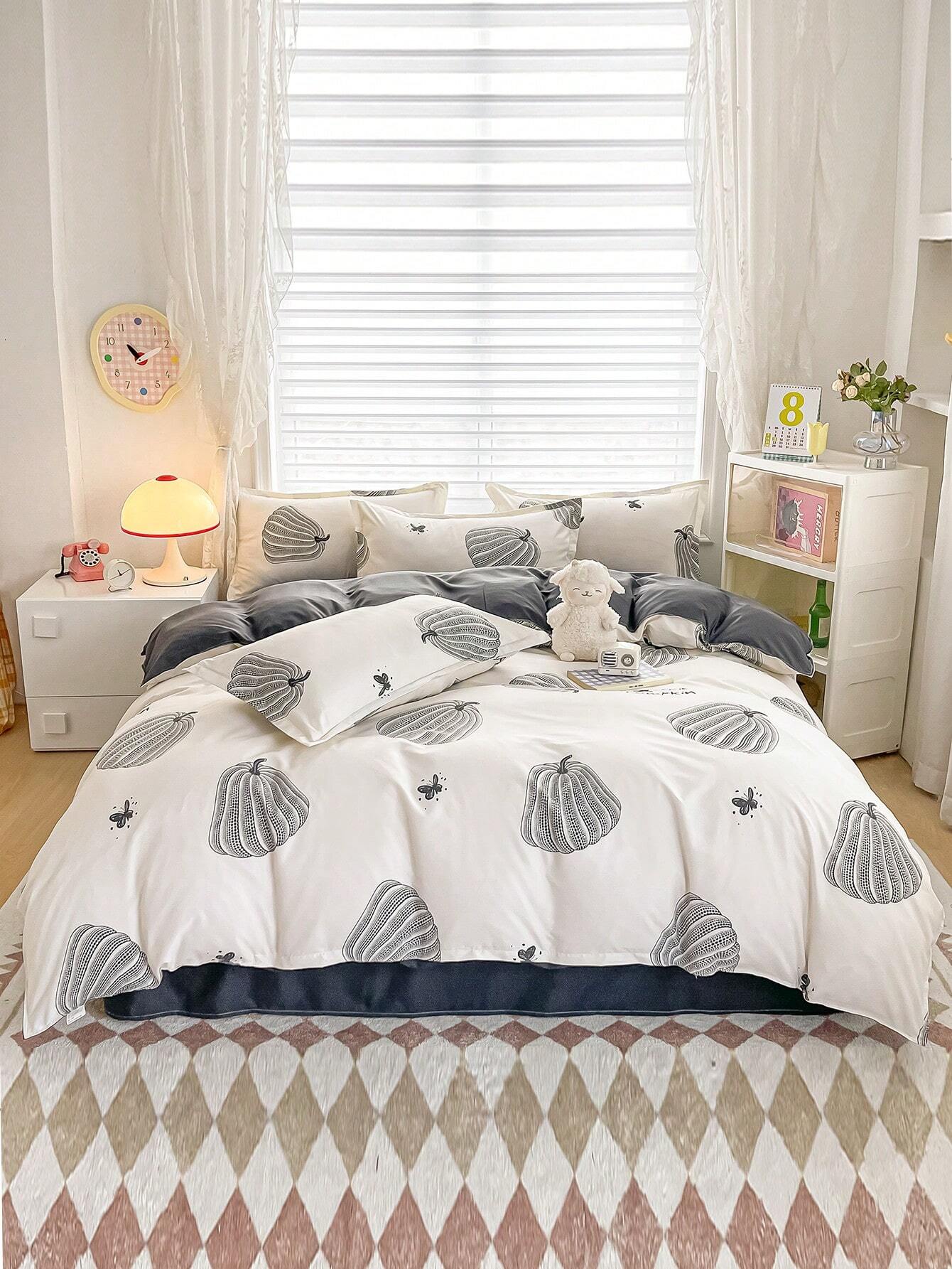 4 pezzi/Set biancheria da letto con design stampato reversibile, comprende 1 pezzo copripiumino
