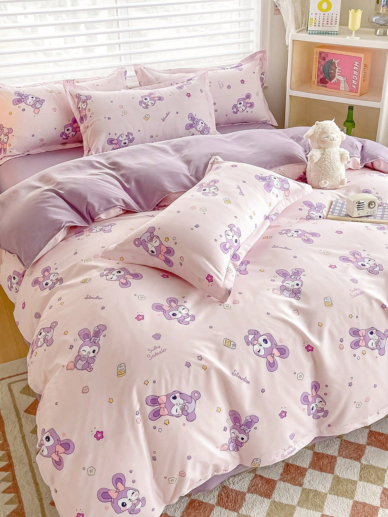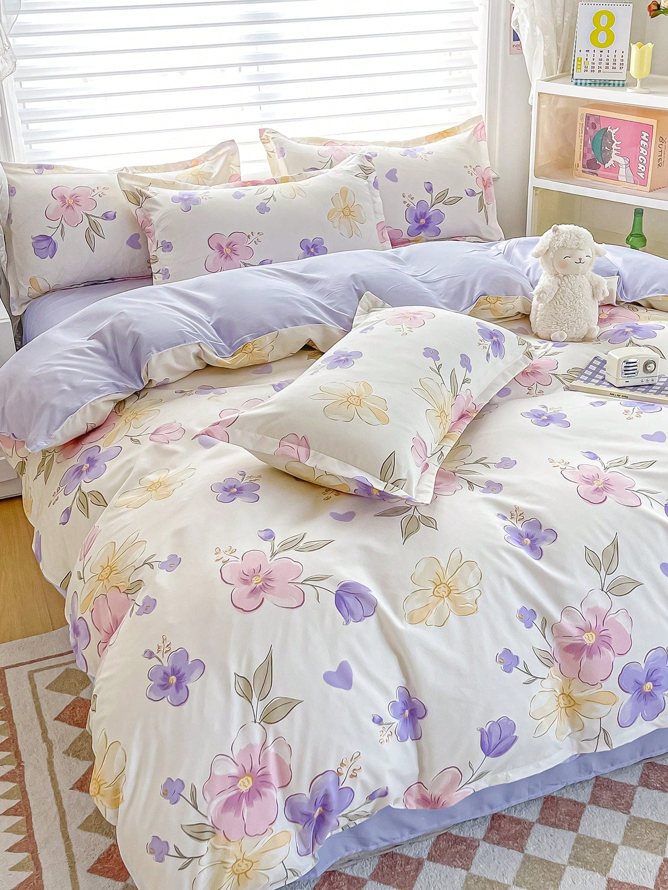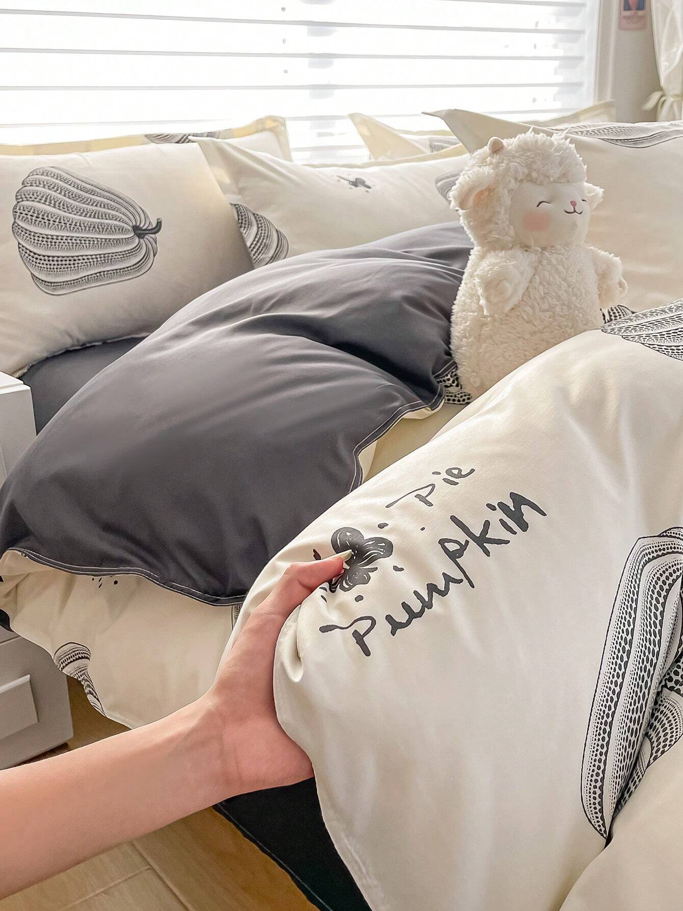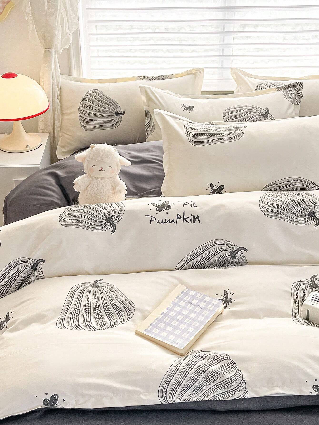4 pezzi/Set biancheria da letto con design stampato reversibile, comprende 1 pezzo copripiumino
