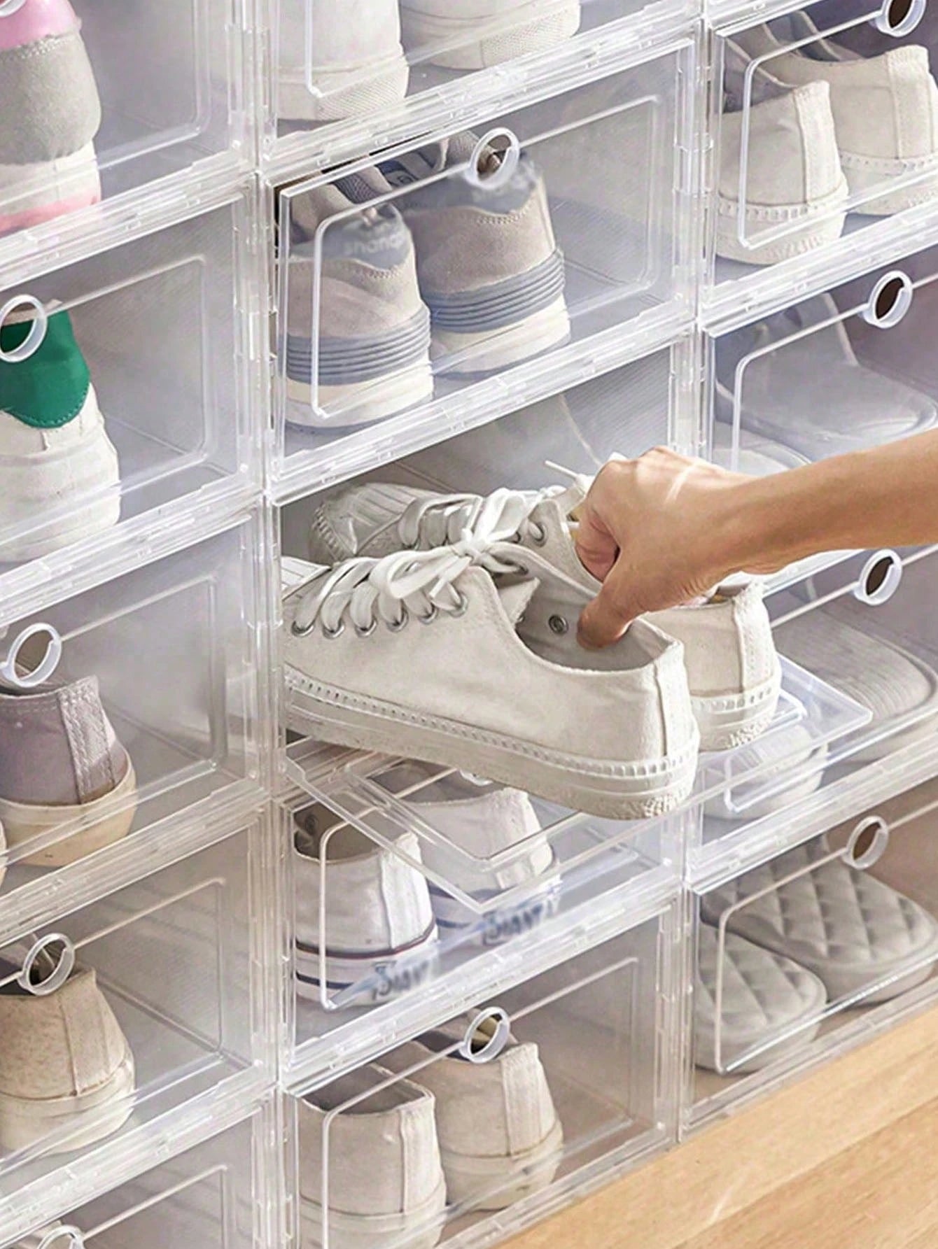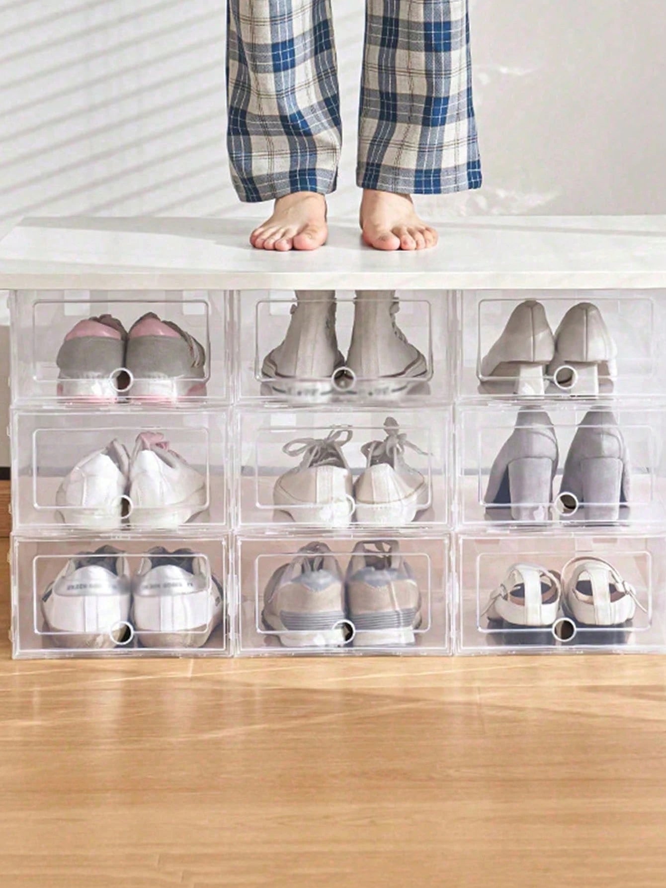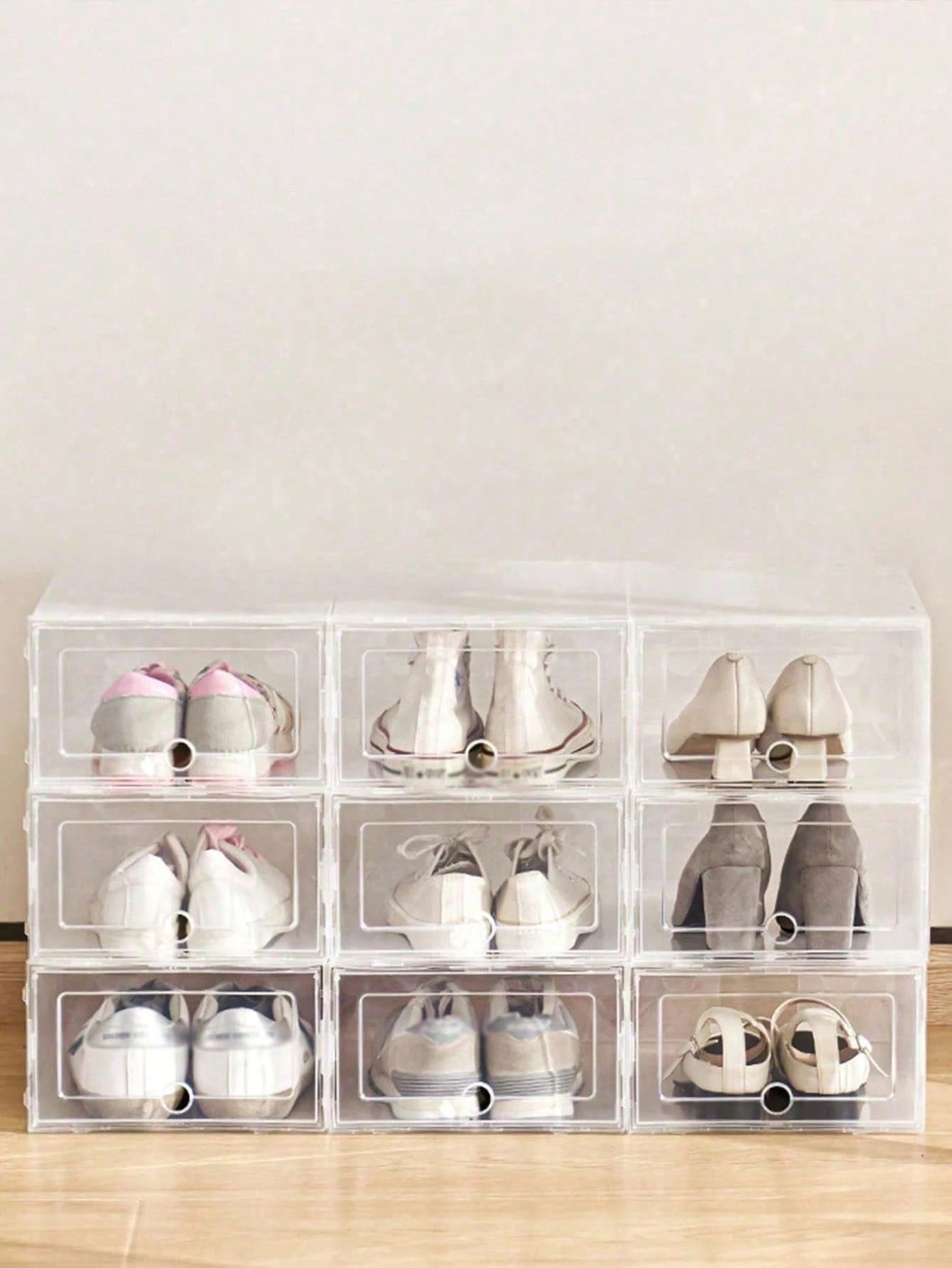 Questo set di scatole impilabili trasparenti offre una soluzione intelligente per conservare sneaker, tacchi e stivali mantenendo tutto visibile e facilmente accessibile.