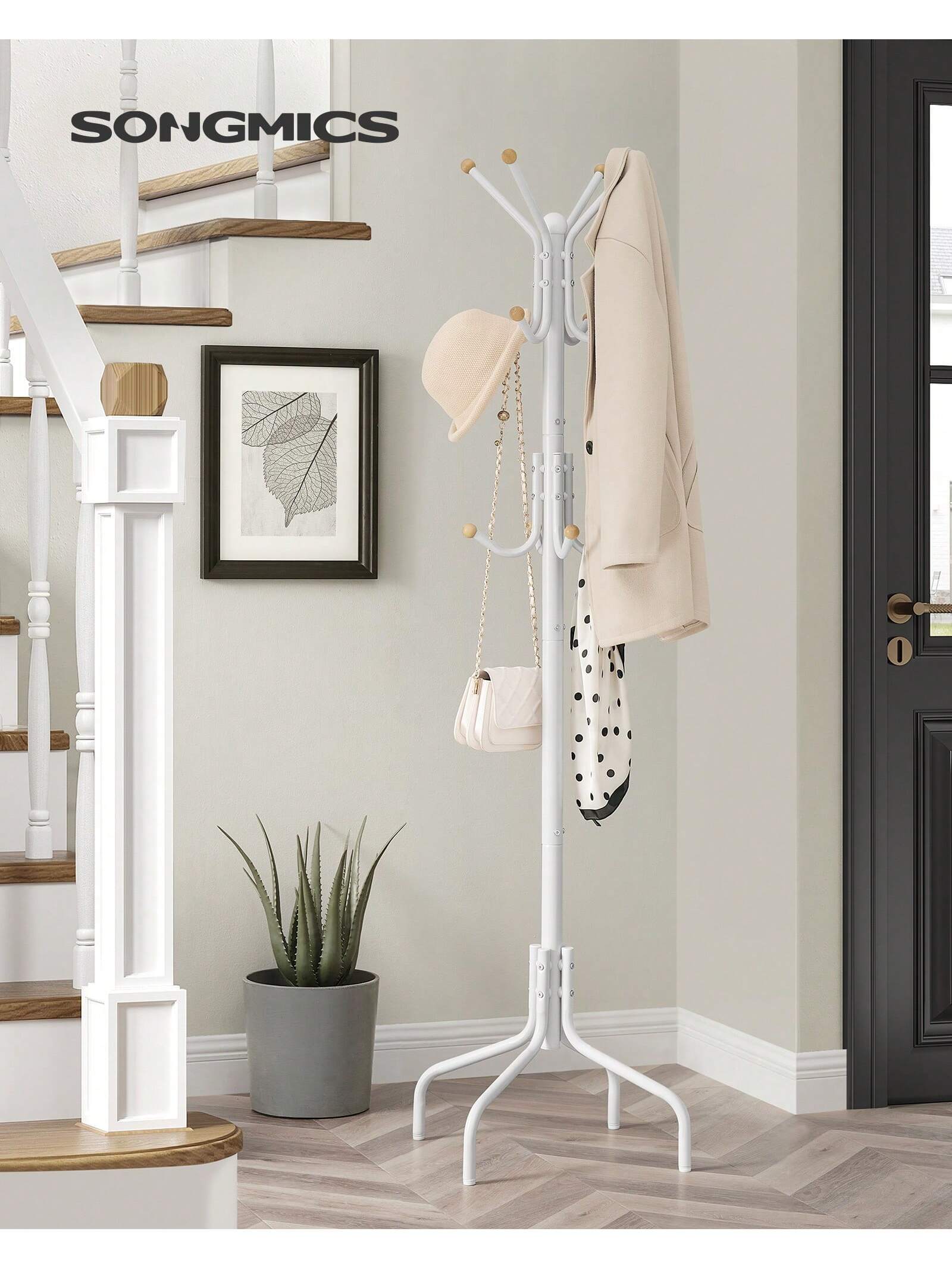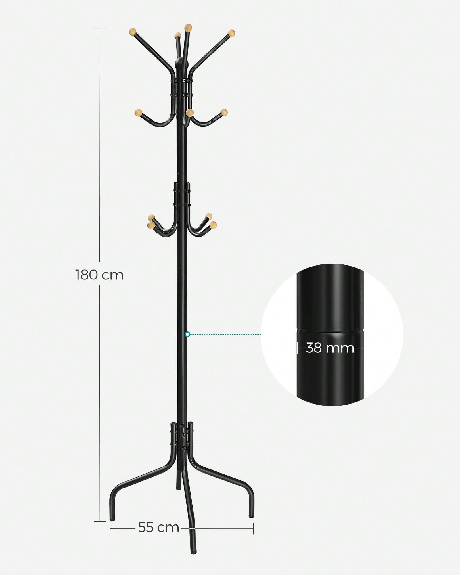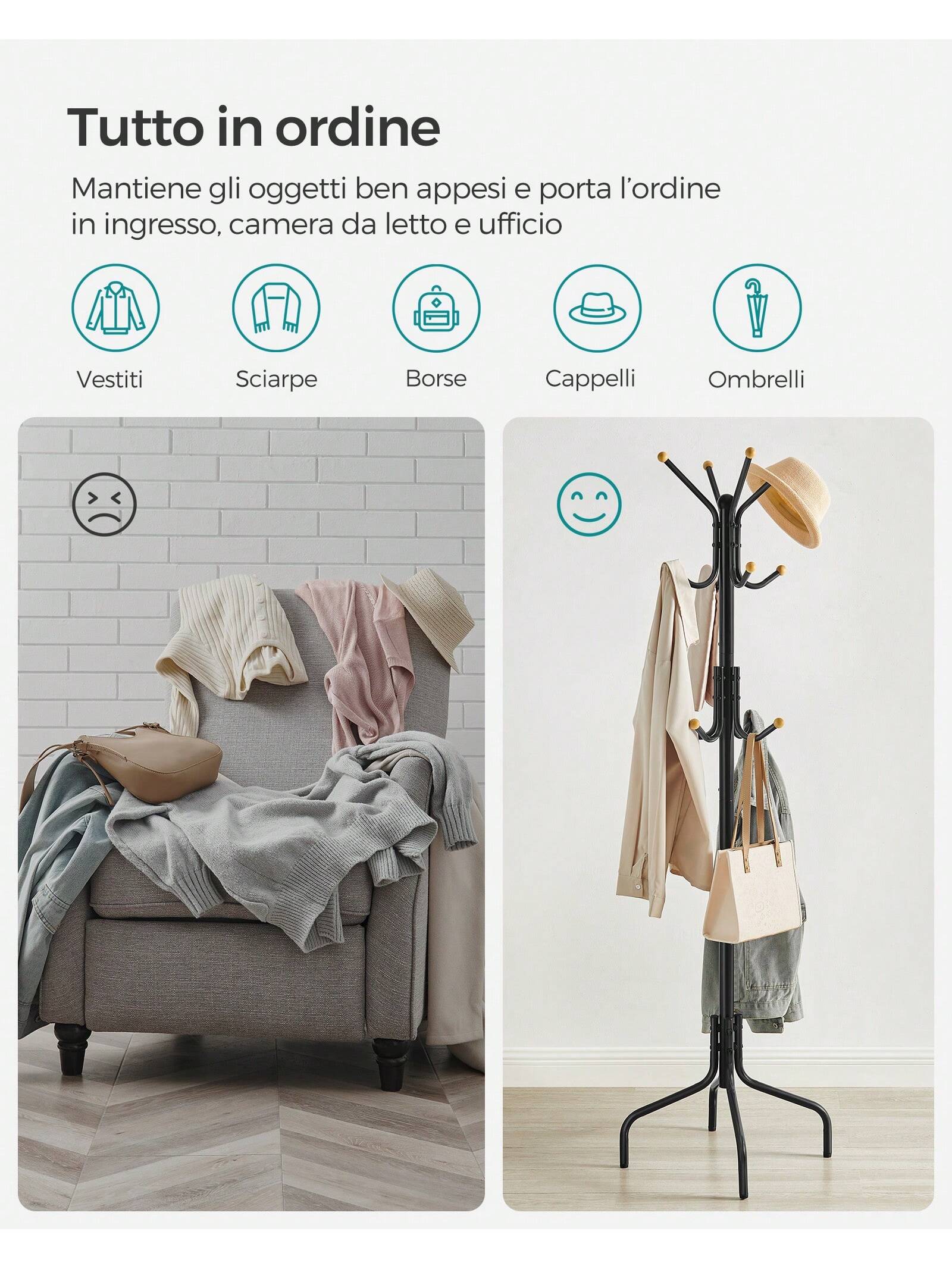 Appendiabiti da Terra, Attaccapanni in Metallo con 12 Ganci, 4 Gambe, Appendi Abiti Cappotti Cappelli Borse