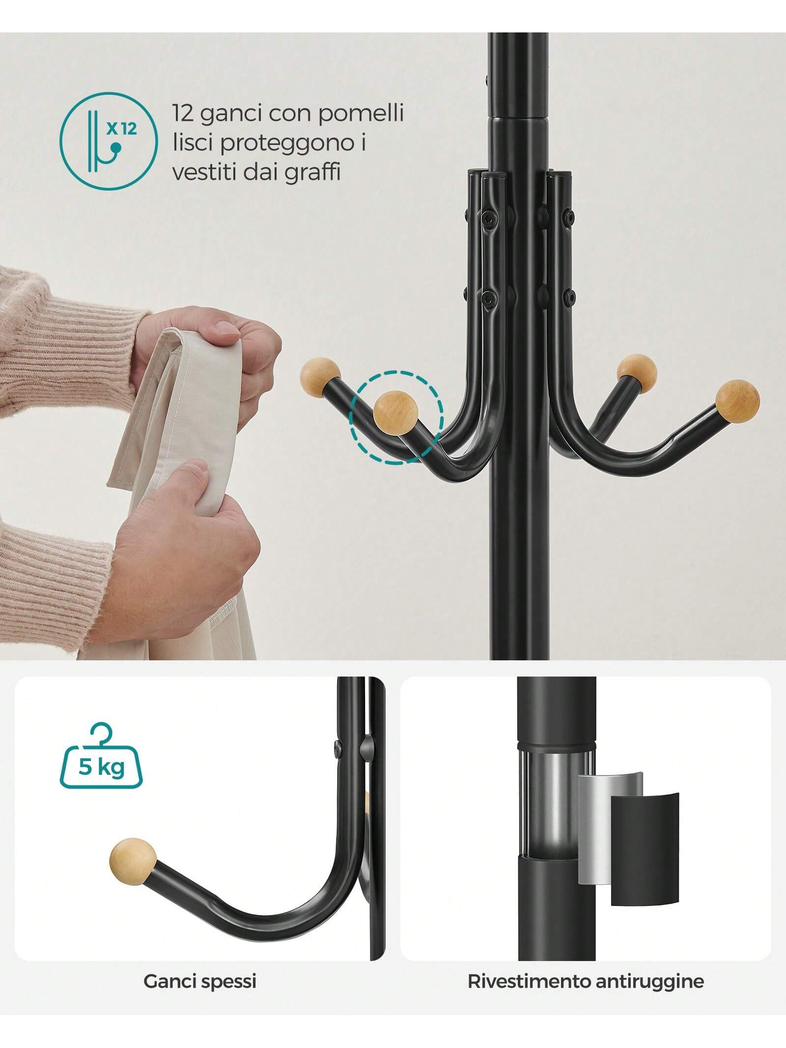 [Robusti ganci con pomelli protettivi] Questo appendiabiti ha 12 ganci spessi, ciascuno con portata di 5 kg, per reggere anche i tuoi cappotti più pesanti; le estremità a pomelli dei ganci proteggono i tuoi abiti dai graffi