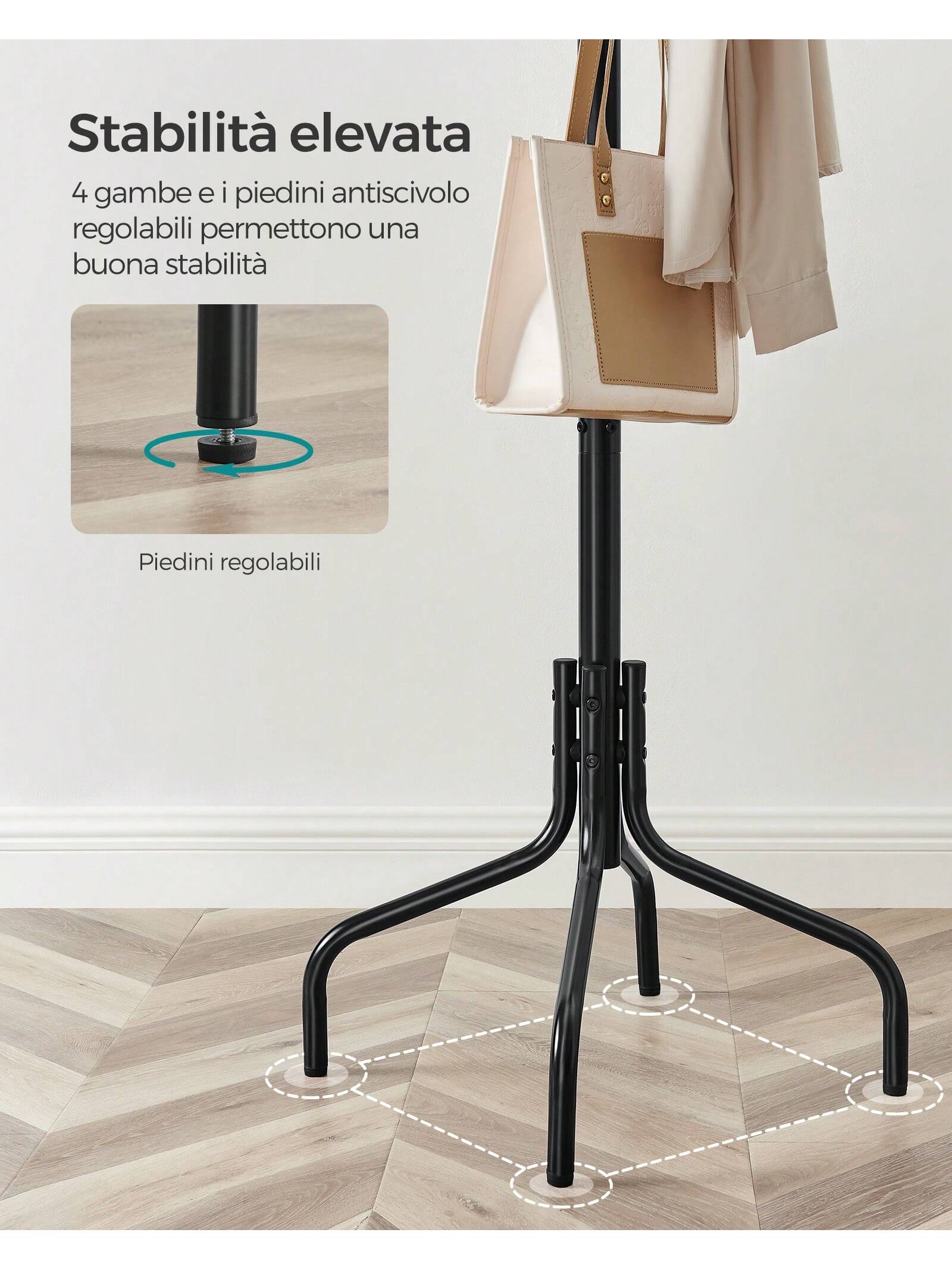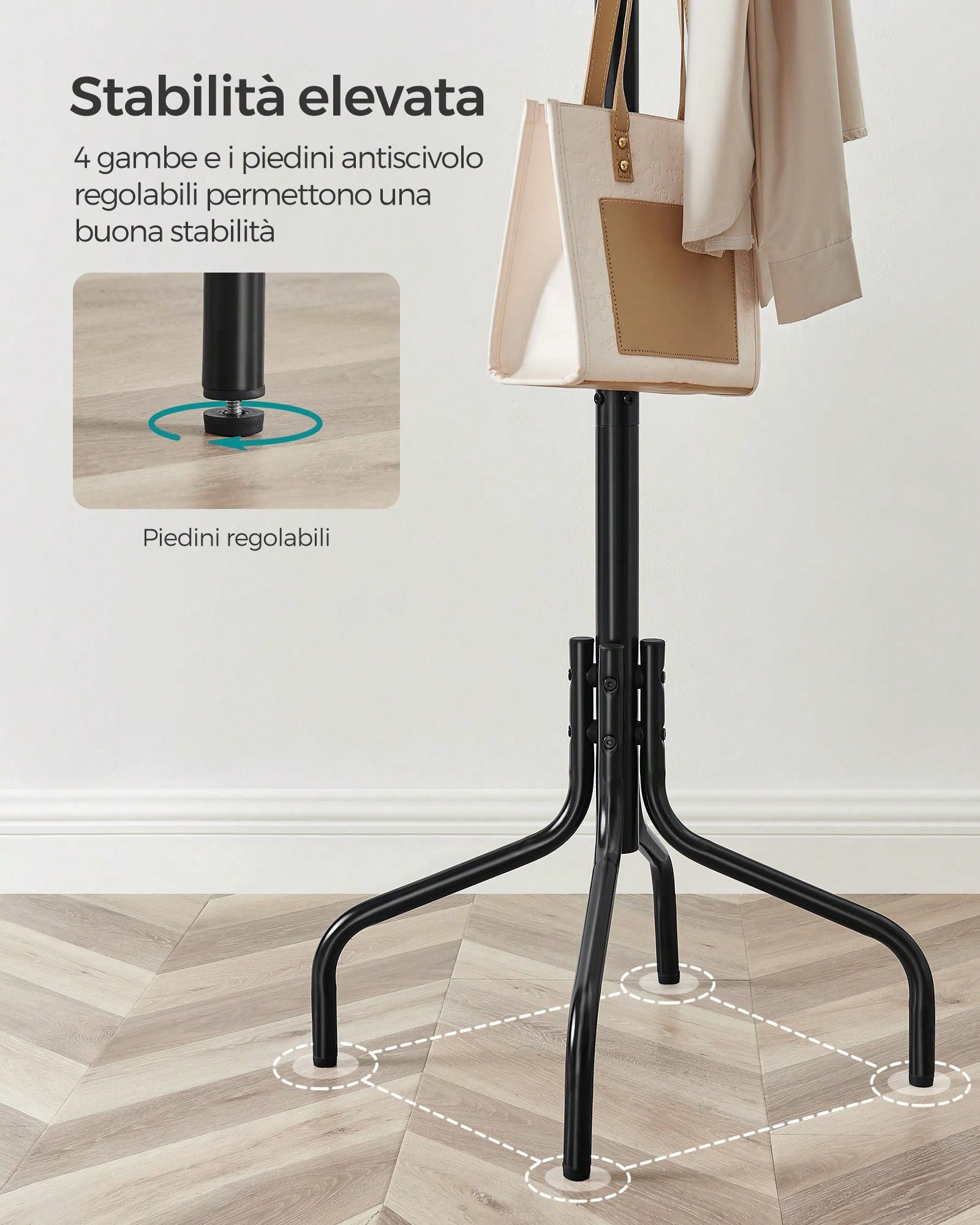 [Resistente e stabile] Questo appendiabiti è realizzato in acciaio con rivestimento antiruggine per una lunga durata e supportato da 4 gambe per una maggiore stabilità; i piedini regolabili e antiscivolo migliorano la stabilità e non graffiano il pavimento